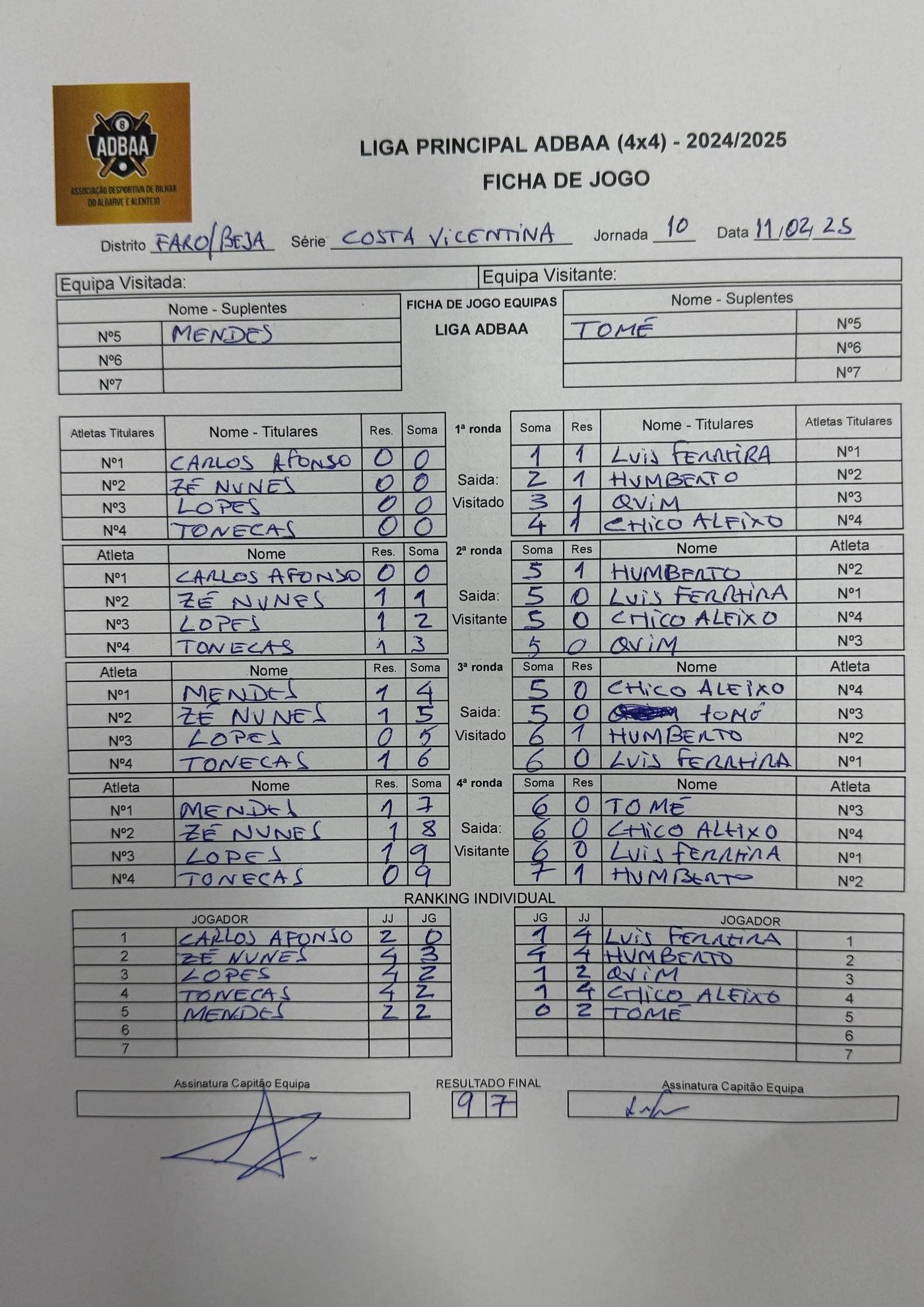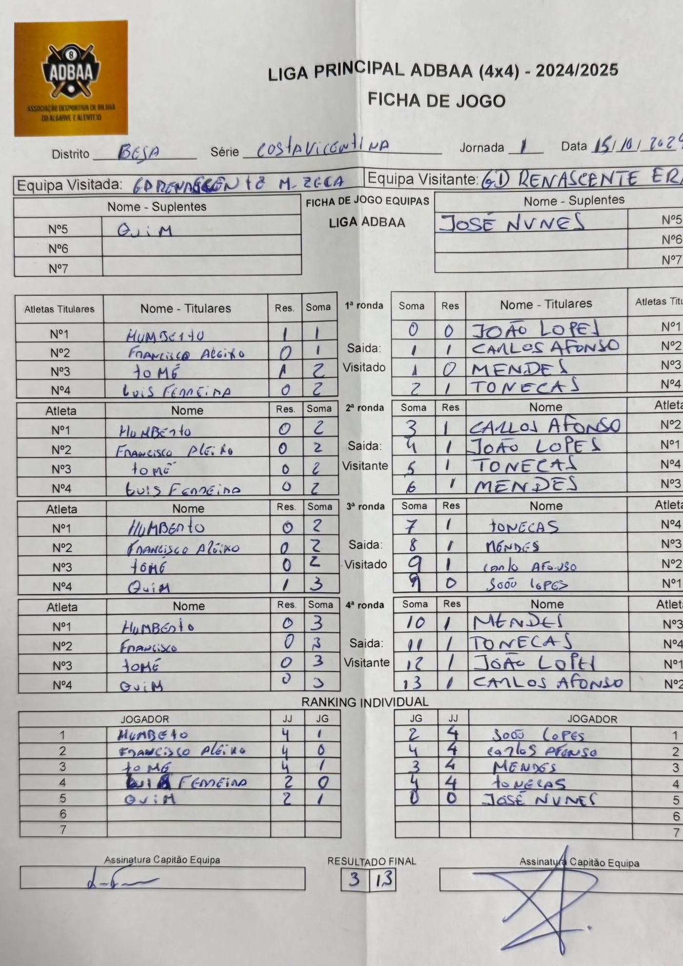 10 | 46 | G D RENASCENTE ERA SAO TEOTONIO | 9-7 | G D RENASCENTE MONTE ZECA | 11/02/2025 | <Sem observações>