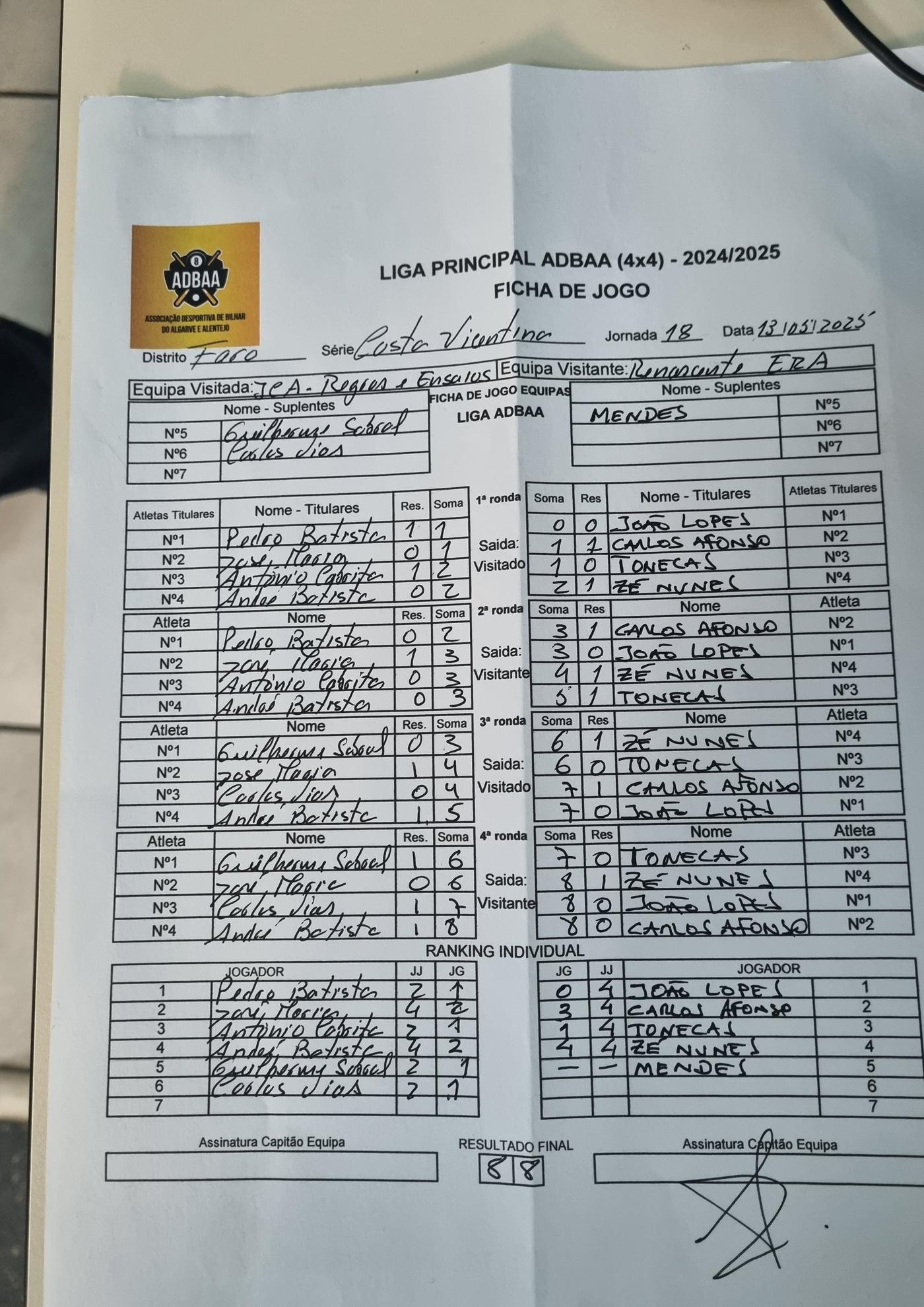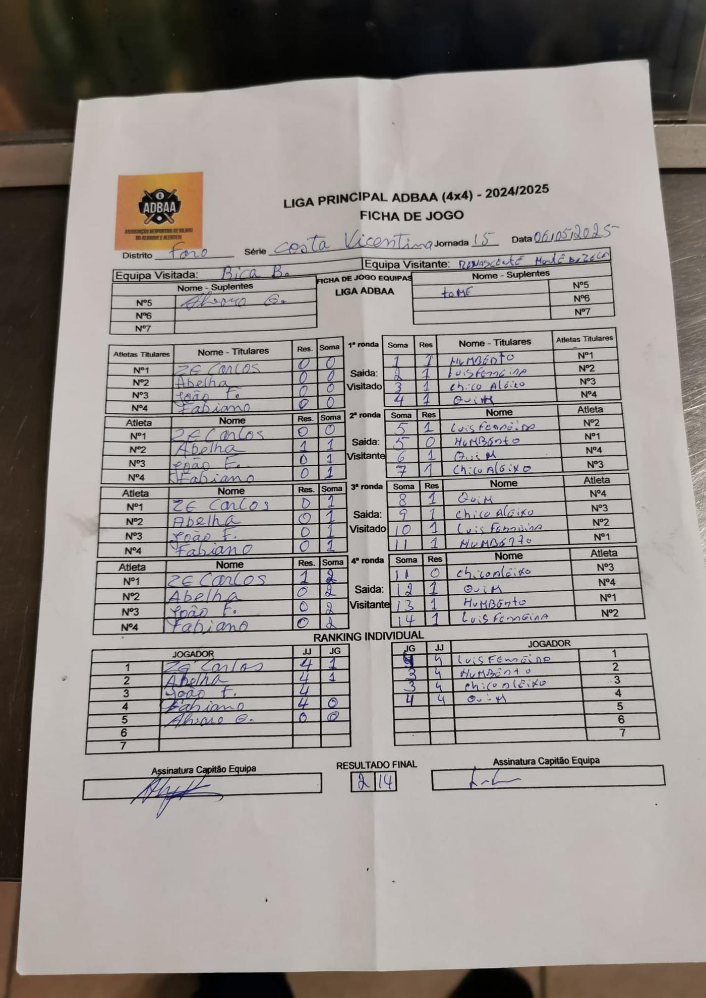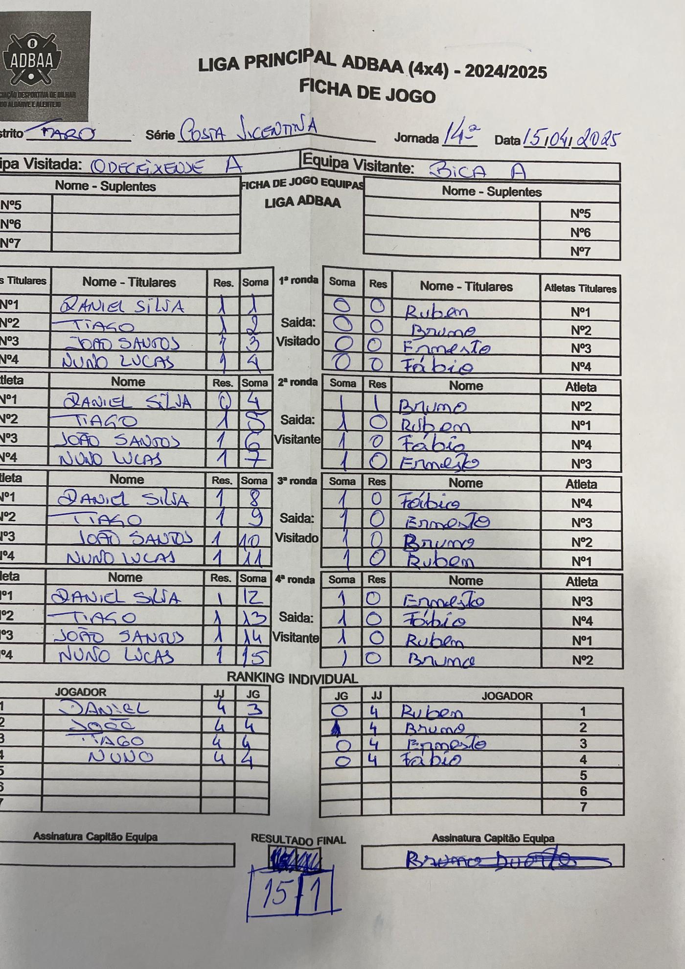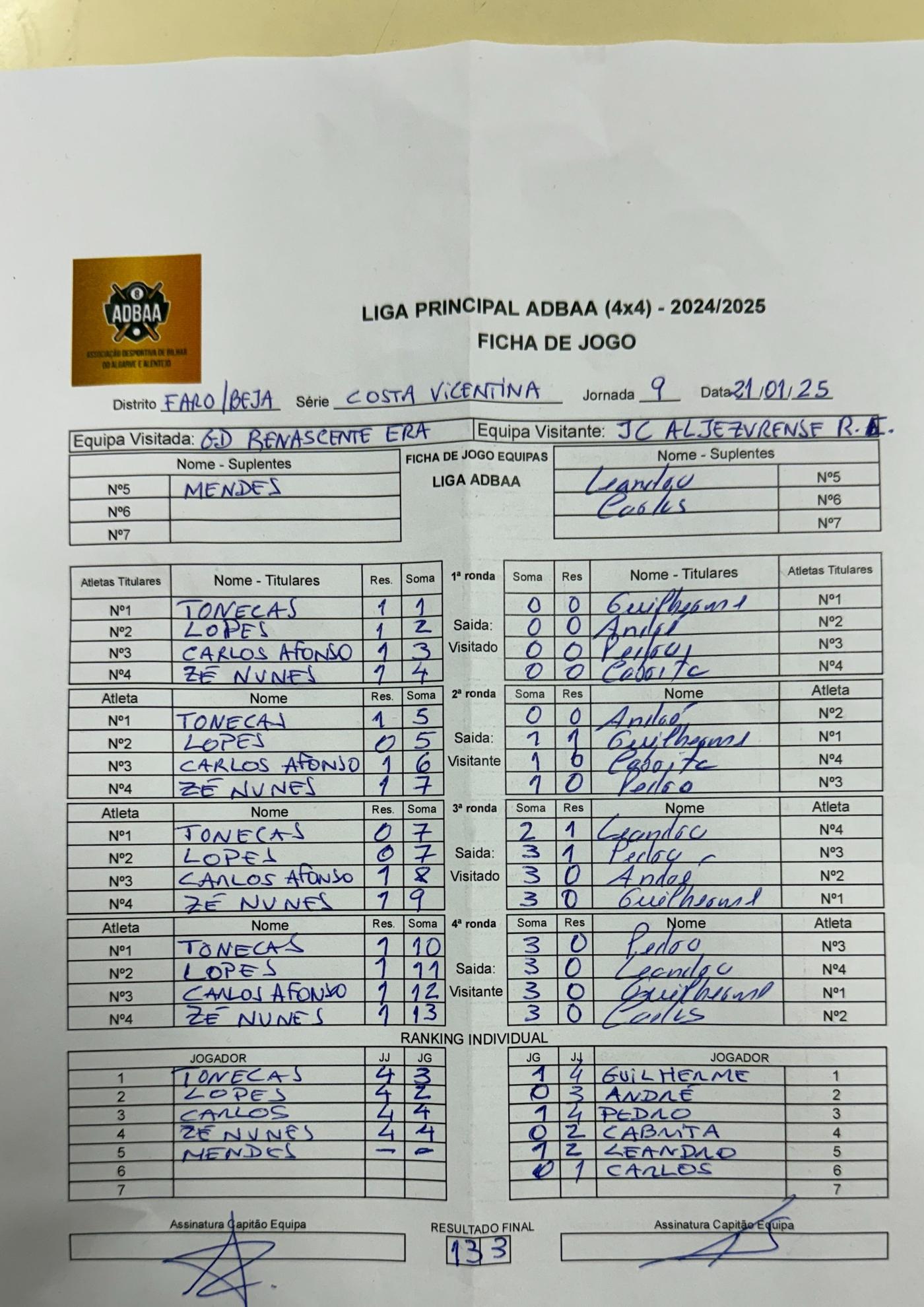 15 | 75 | BICA A | 7-9 | JC ALJEZURENSE REGRAS E ENSAIOS | 22/04/2025 | <Sem observações>