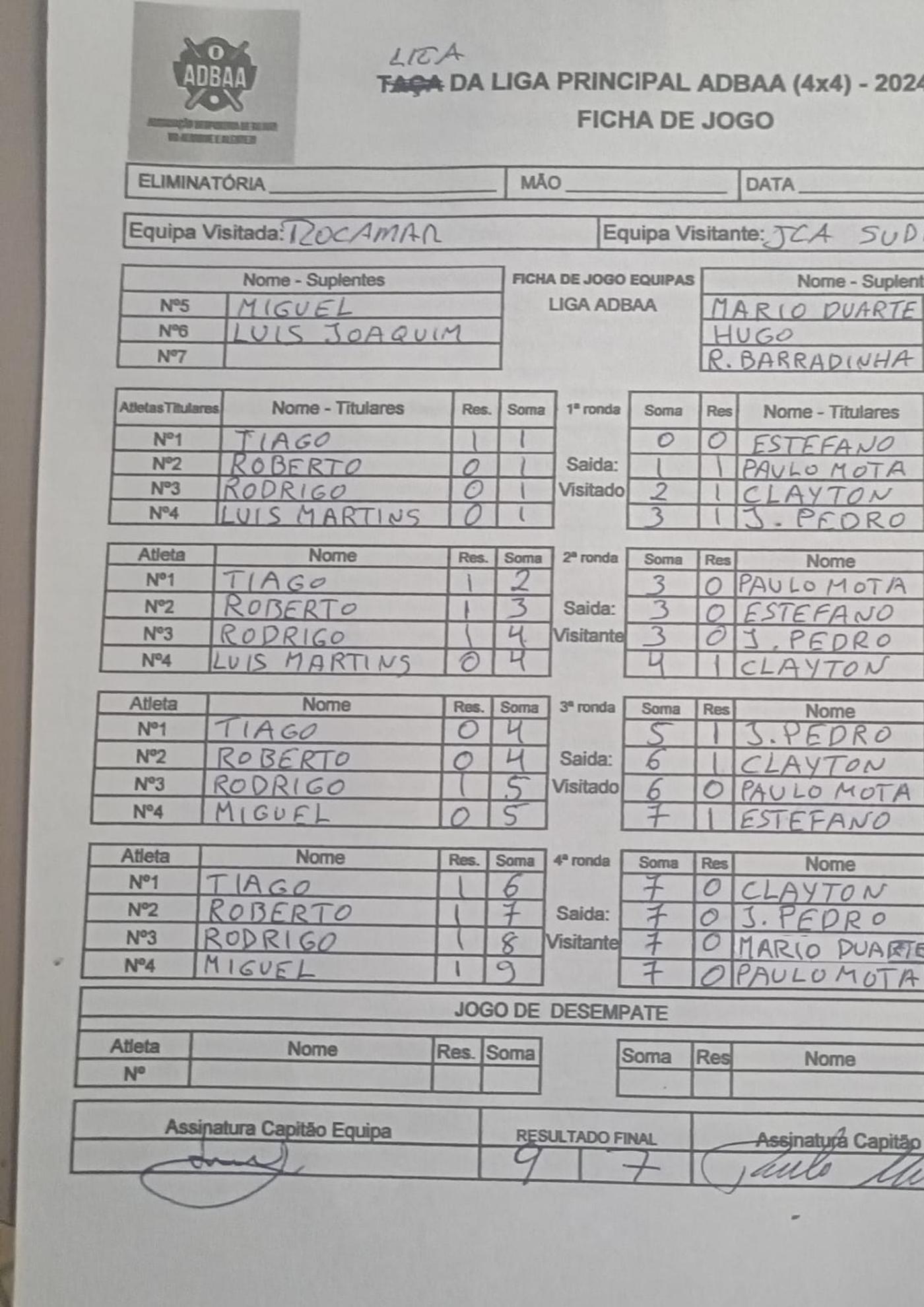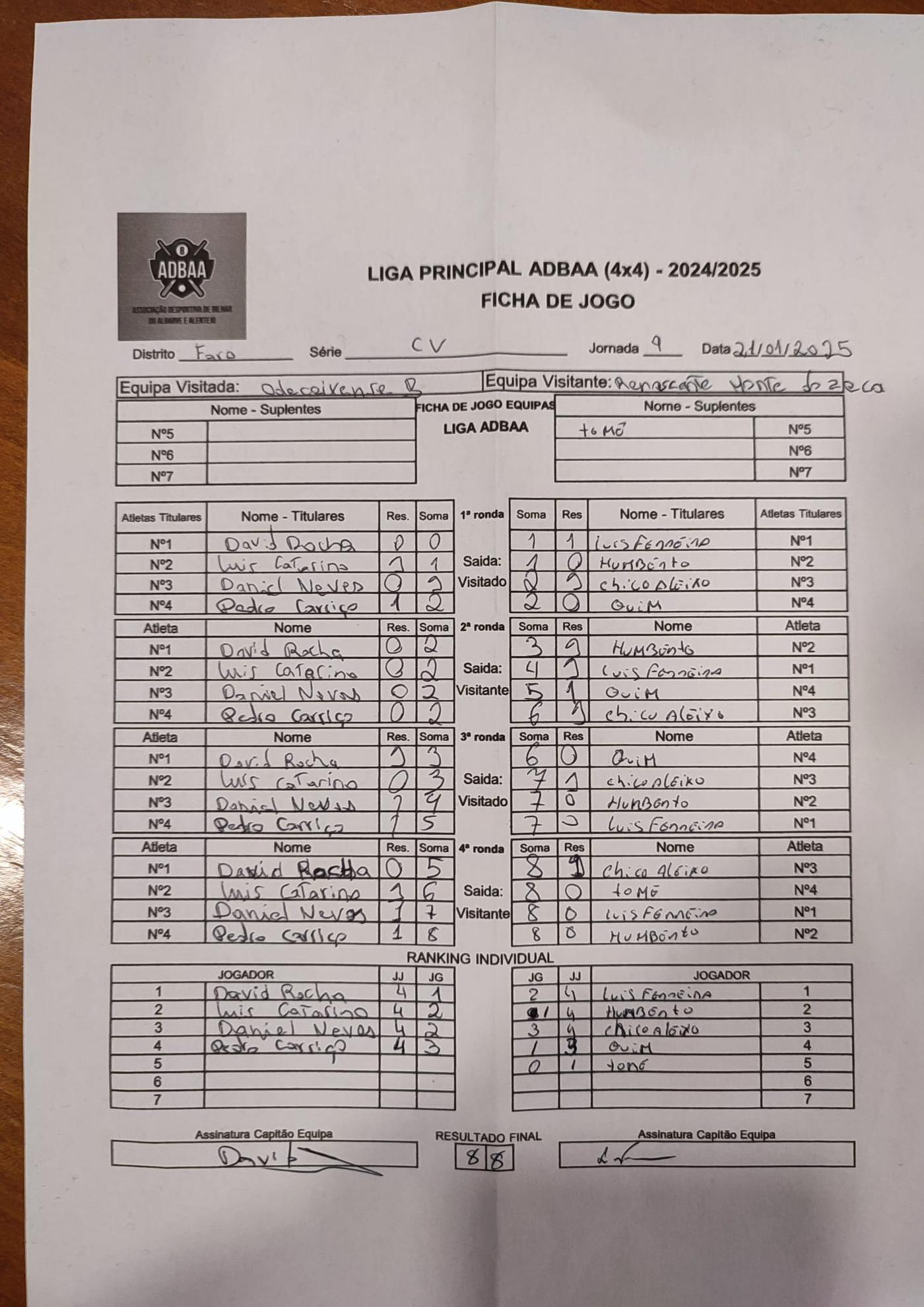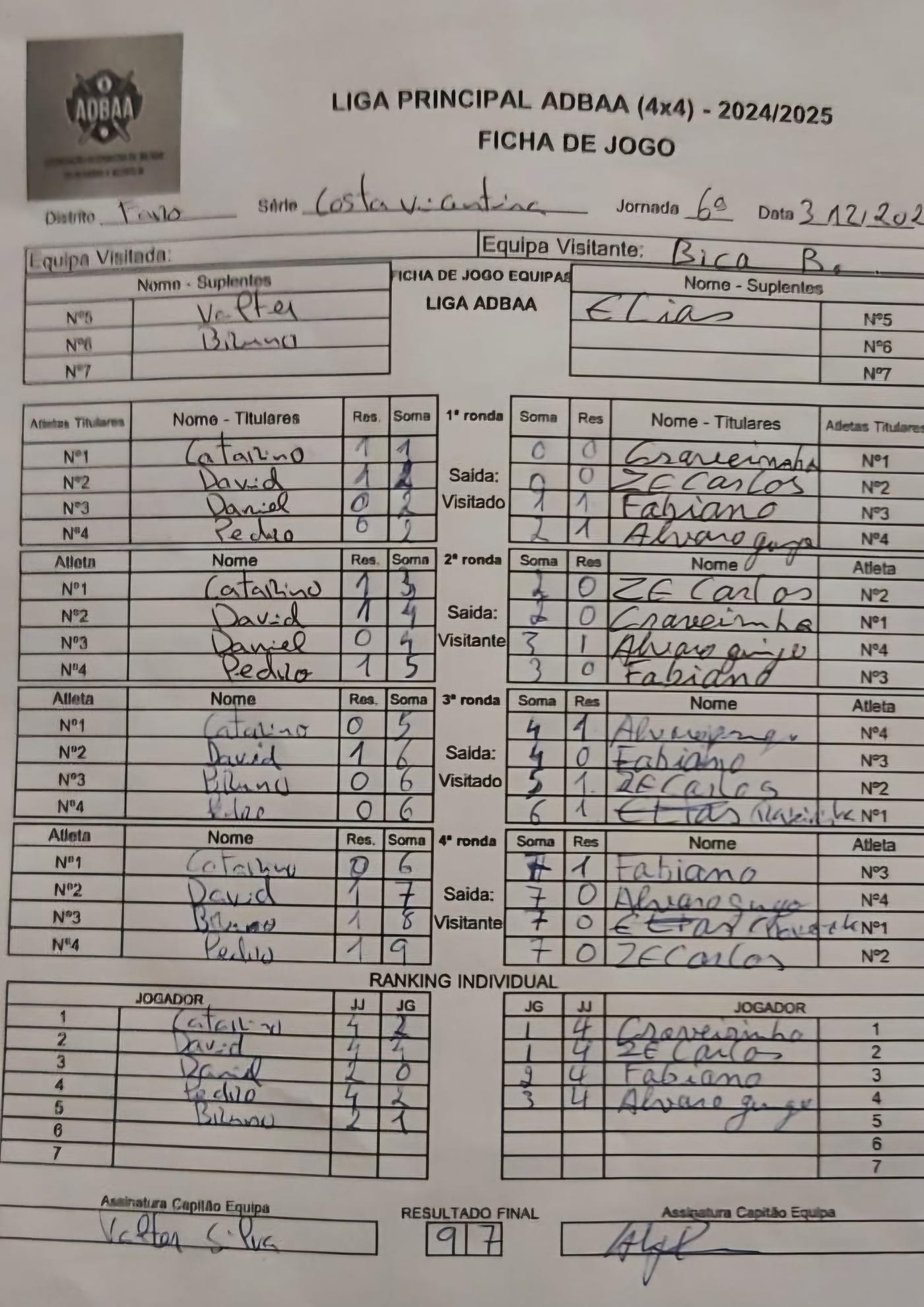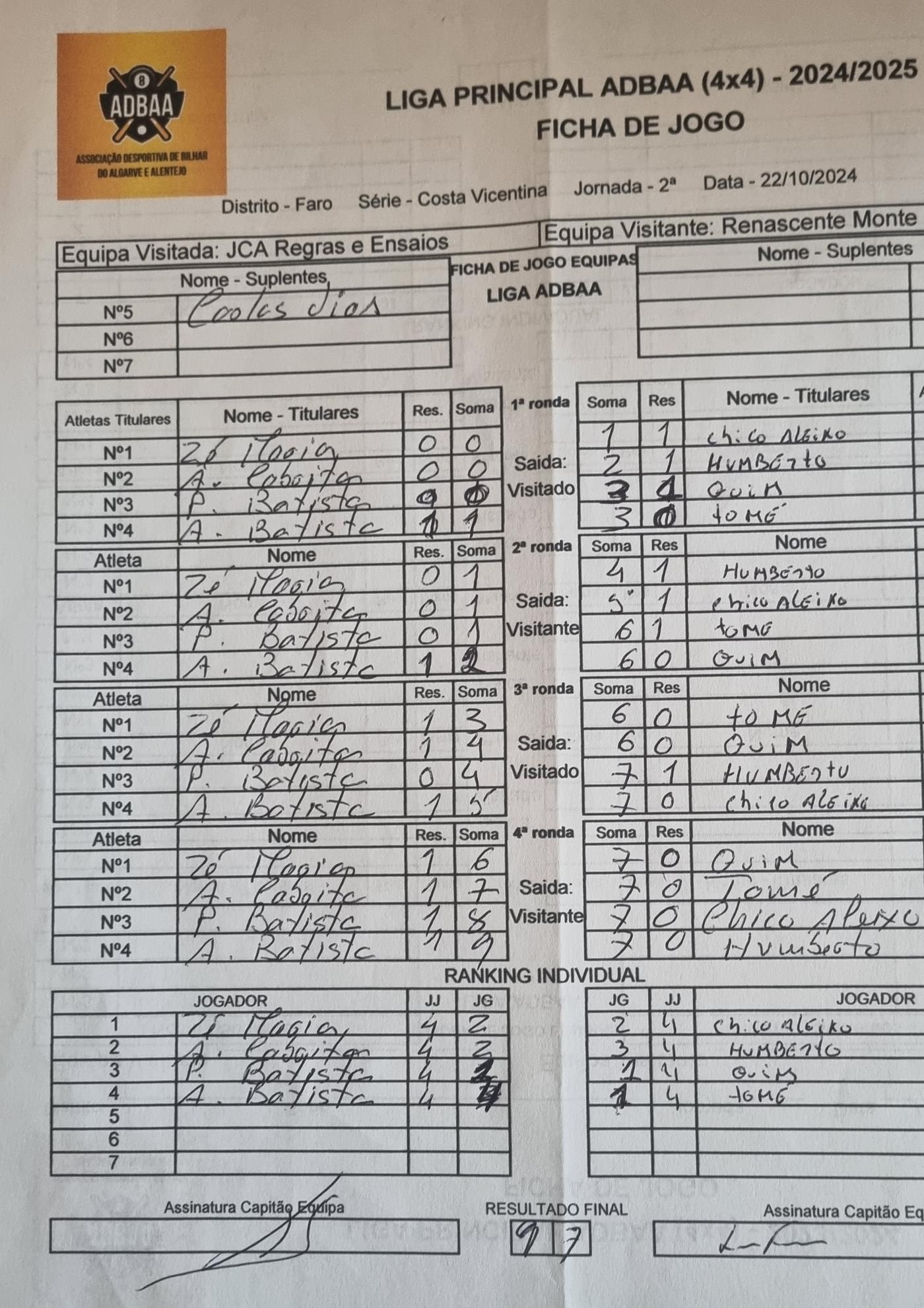 15 | 75 | BICA A | 7-9 | JC ALJEZURENSE REGRAS E ENSAIOS | 22/04/2025 | <Sem observações>