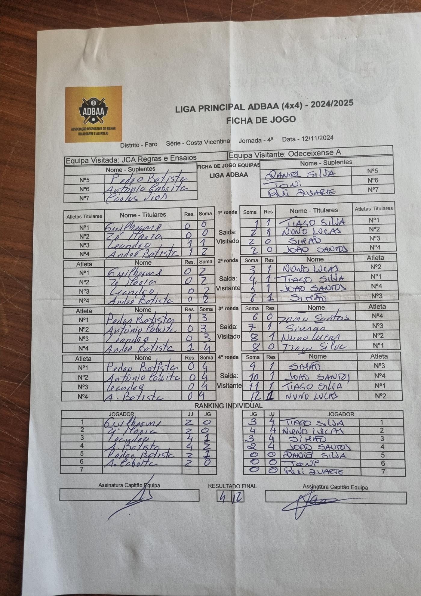4 | 20 | JC ALJEZURENSE REGRAS E ENSAIOS | 4-12 | G DESPORTIVO ODECEIXENSE A | 12/11/2024 | <Sem observações>