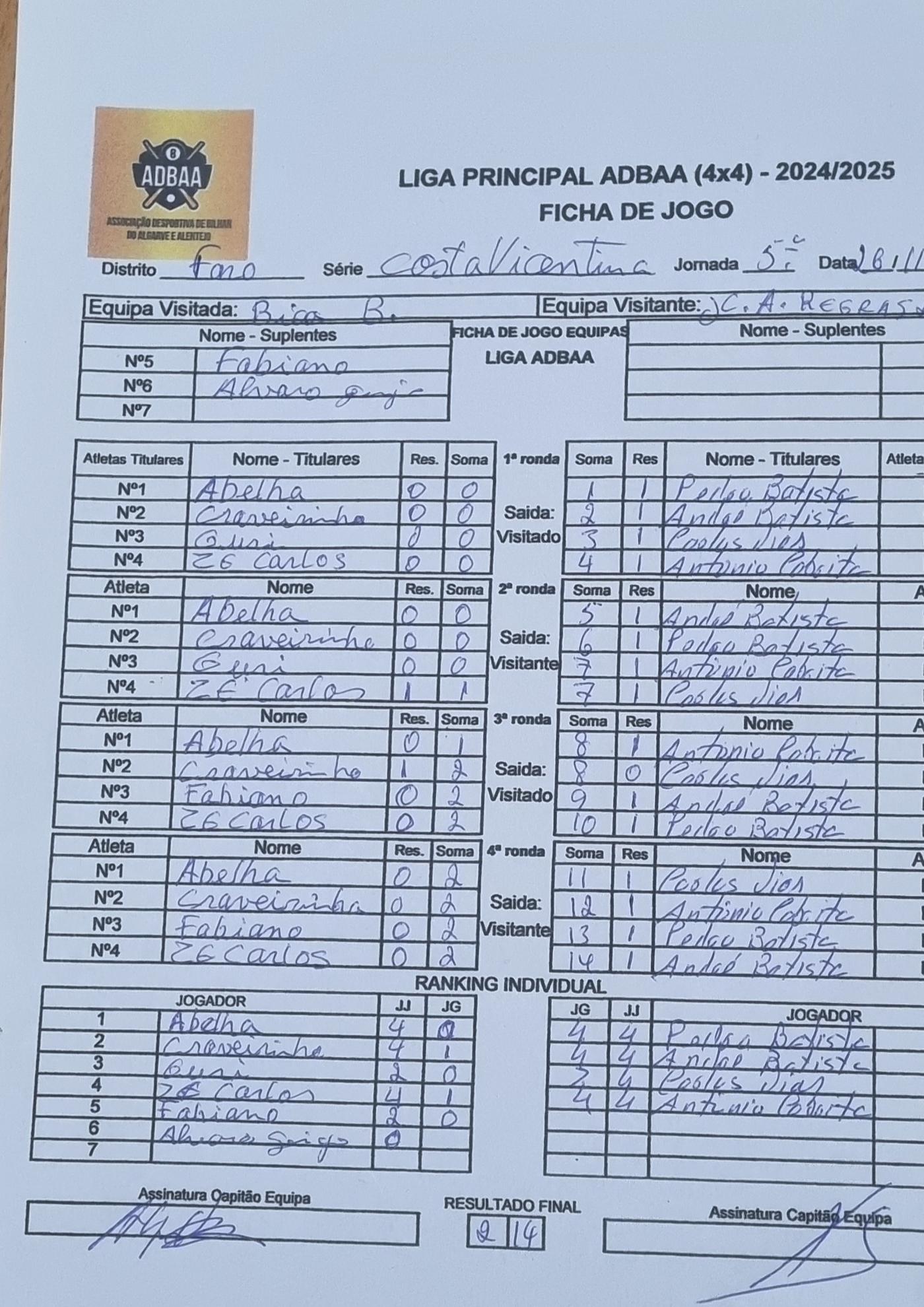 3 | 11 | BICA A | 5-11 | G D RENASCENTE ERA SAO TEOTONIO | 29/10/2024 | <Sem observações>