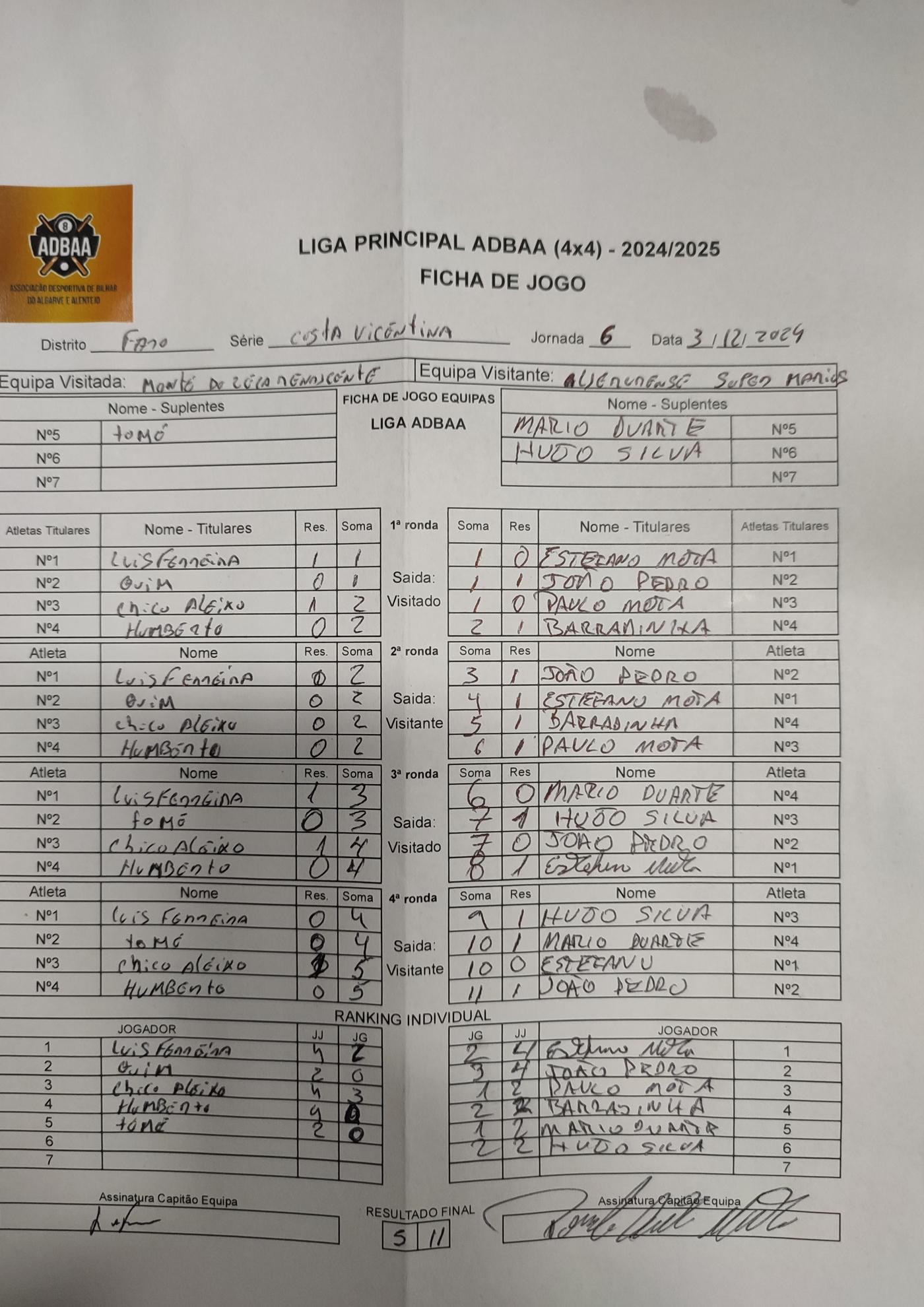 6 | 30 | JC ALJEZURENSE REGRAS E ENSAIOS | 10-6 | BICA A | 03/12/2024 | <Sem observações>