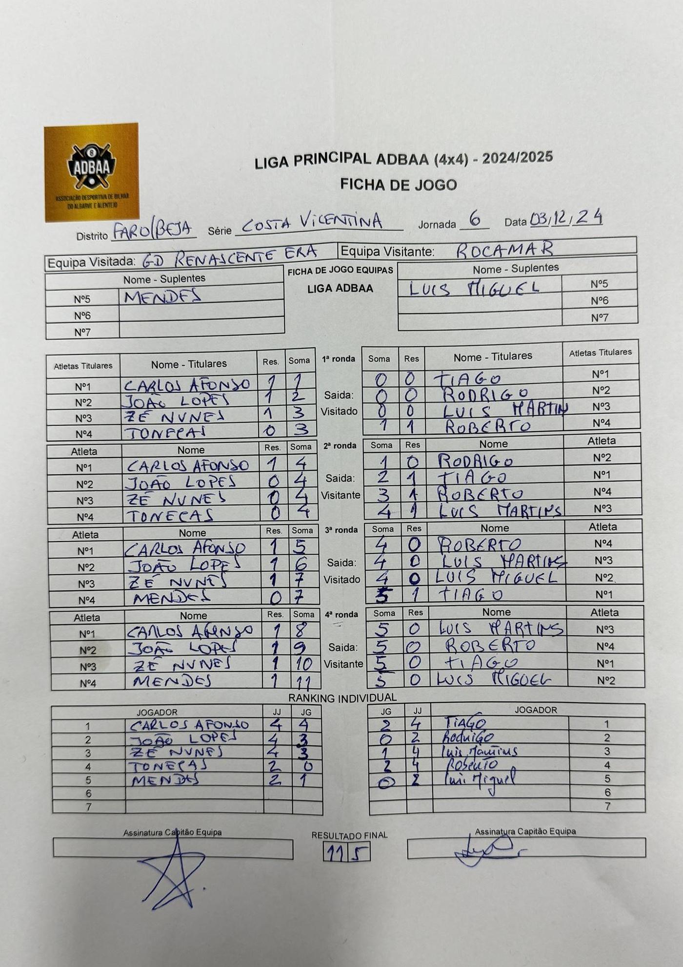 6 | 26 | G D RENASCENTE ERA SAO TEOTONIO | 11-5 | RESTAURANTE ROCAMAR | 03/12/2024 | <Sem observações>