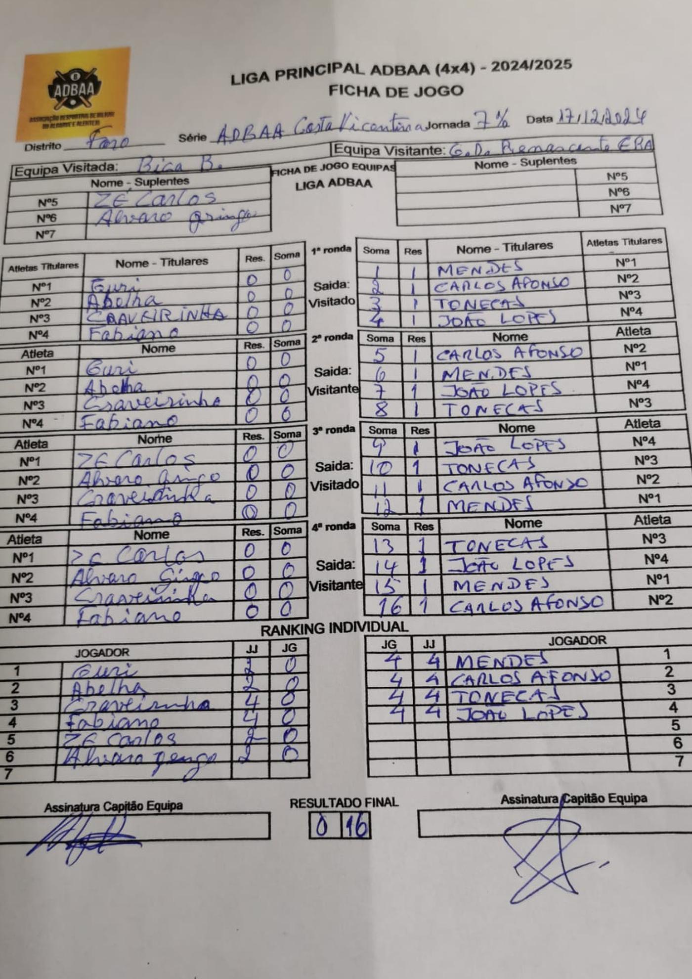 7 | 31 | BICA B | 0-16 | G D RENASCENTE ERA SAO TEOTONIO | 17/12/2024 | <Sem observações>
