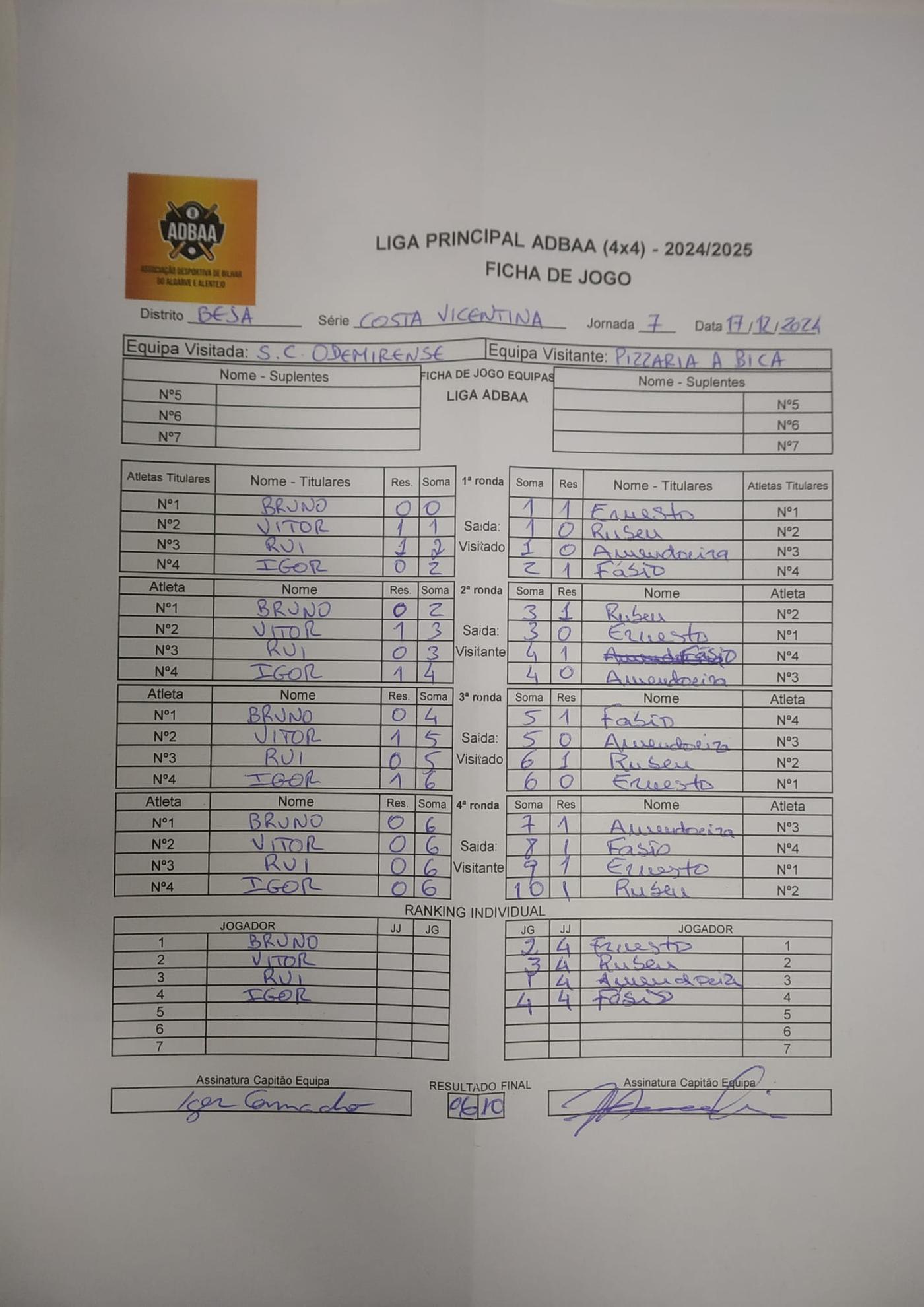 7 | 34 | S C ODEMIRENSE | 6-10 | BICA A | 17/12/2024 | <Sem observações>