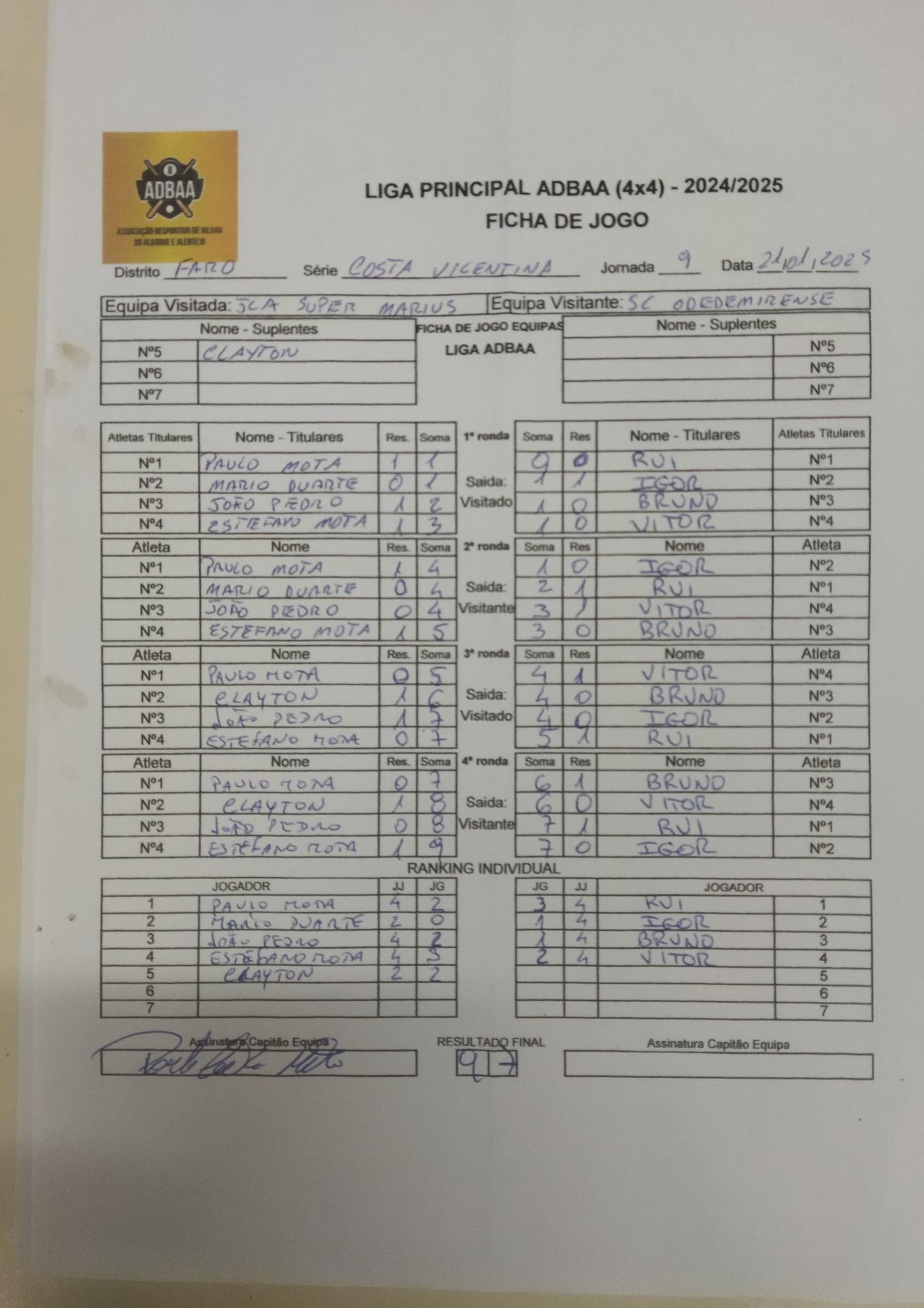 9 | 44 | JC ALJEZURENSE SUPER MARIUS | 9-7 | S C ODEMIRENSE | 21/01/2025 | <Sem observações>