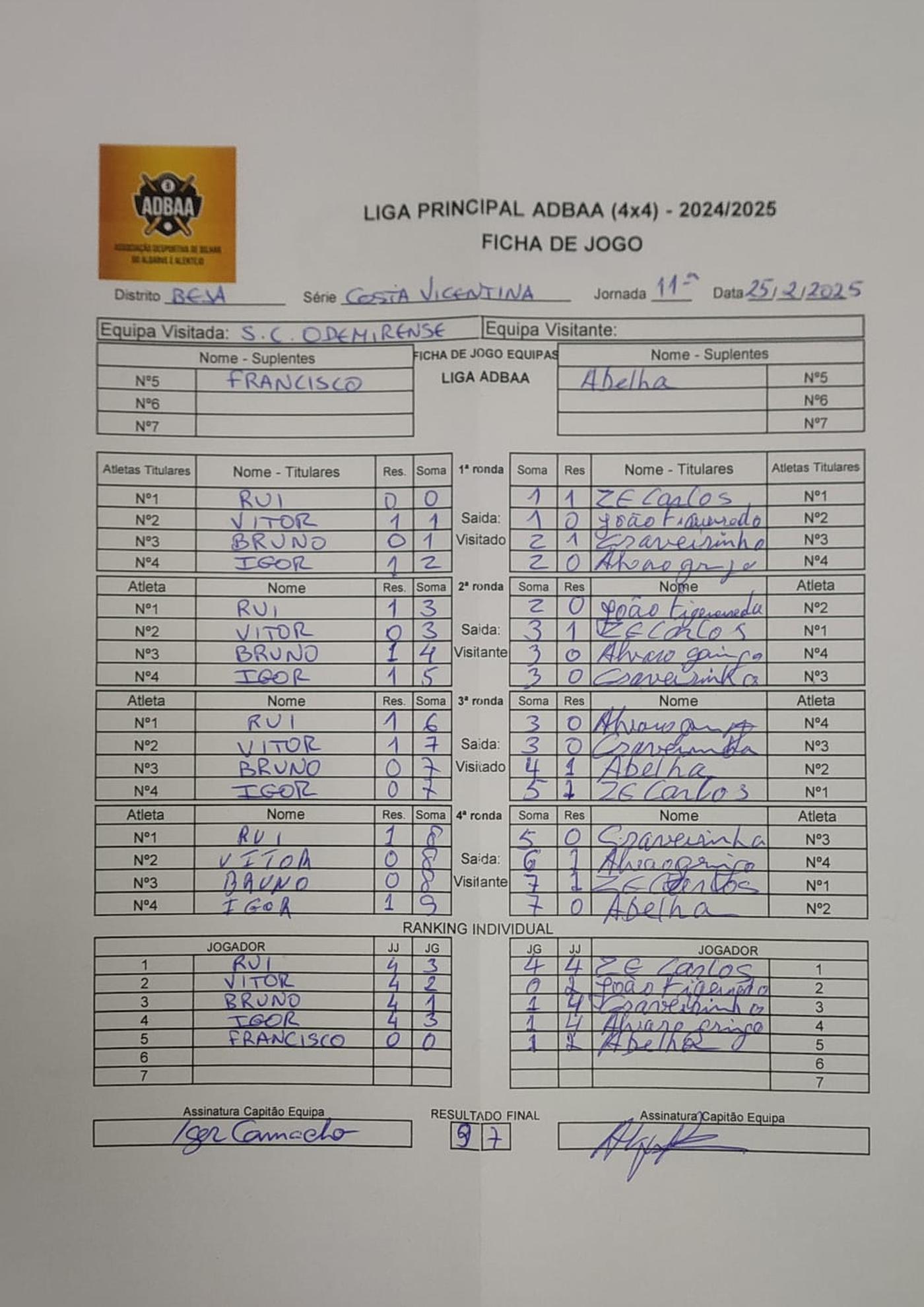 11 | 53 | S C ODEMIRENSE | 9-7 | BICA B | 25/02/2025 | <Sem observações>