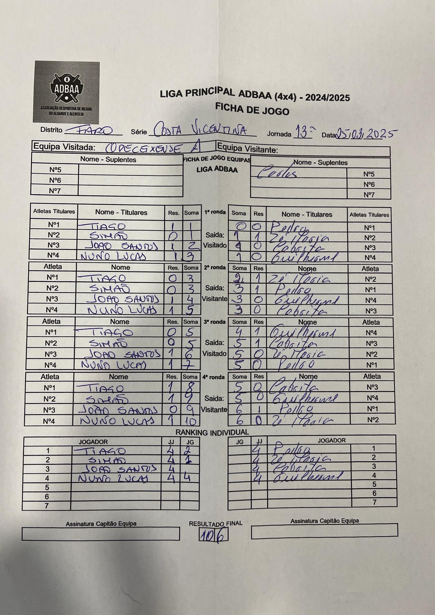 13 | 62 | BICA A | 10-6 | G D RENASCENTE MONTE ZECA | 25/03/2025 | <Sem observações>