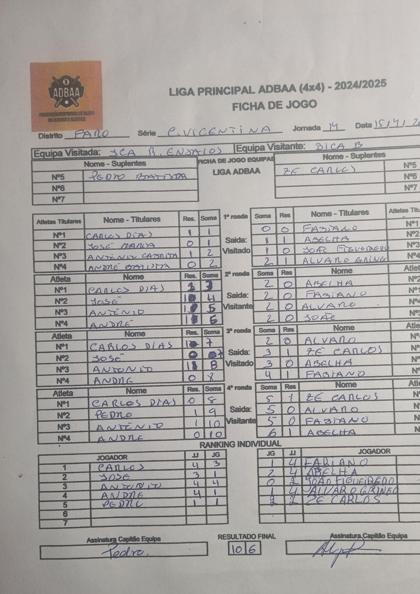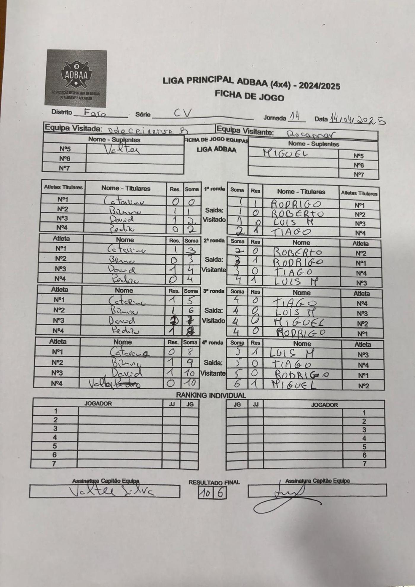 14 | 70 | JC ALJEZURENSE REGRAS E ENSAIOS | 10-6 | BICA B | 15/04/2025 | <Sem observações>