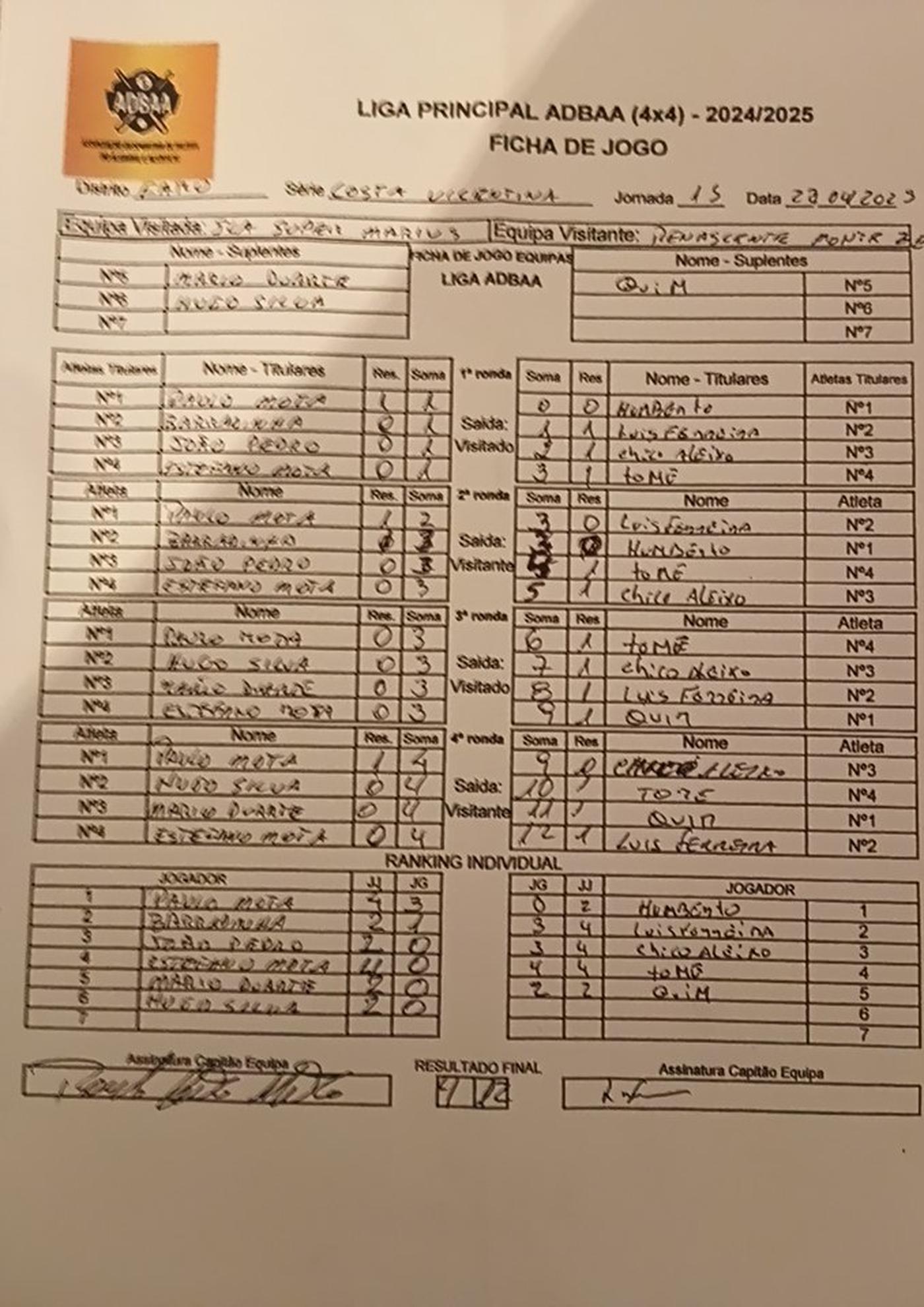4 | 17 | G D RENASCENTE MONTE ZECA | 7-9 | BICA A | 12/11/2024 | <Sem observações>