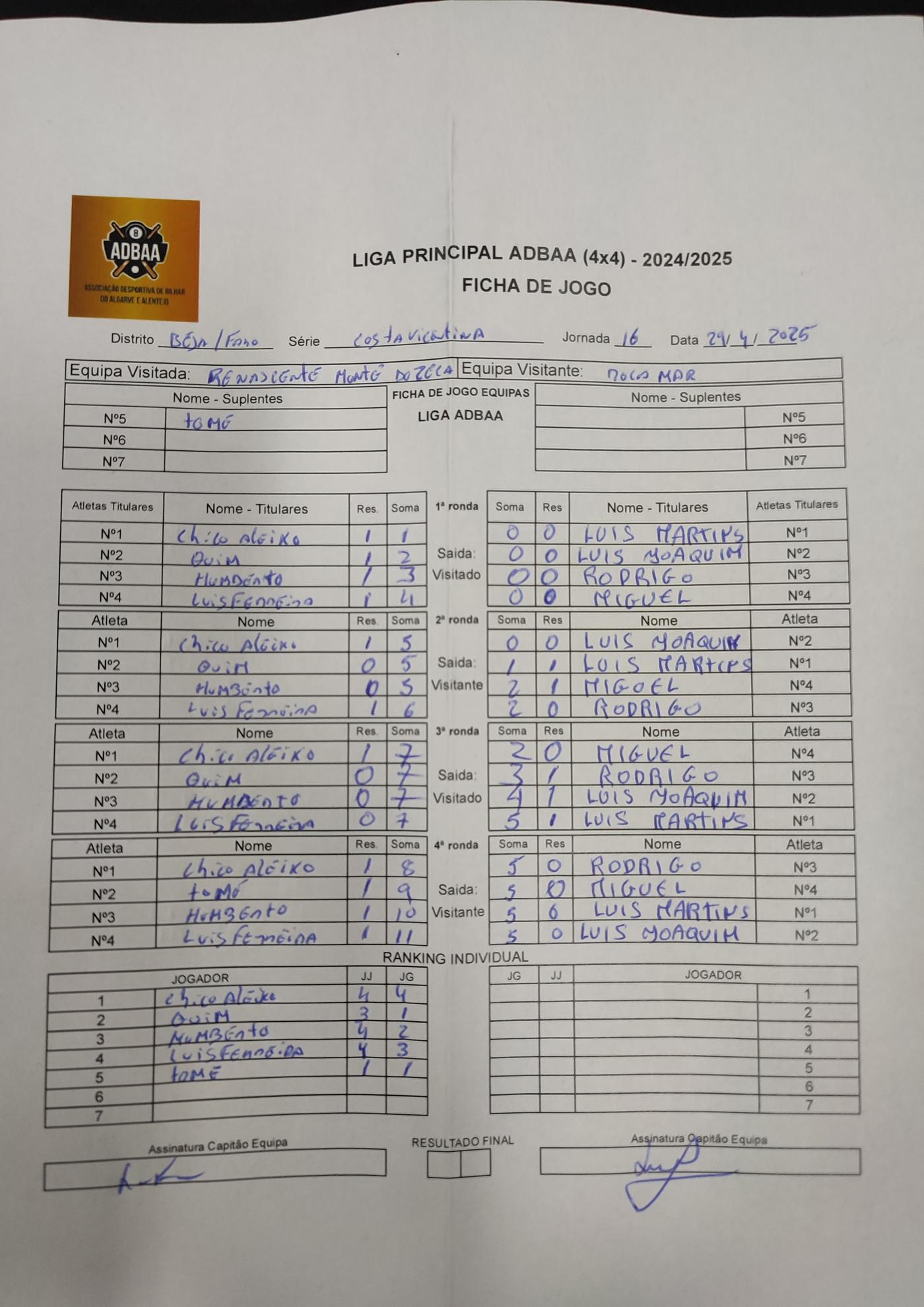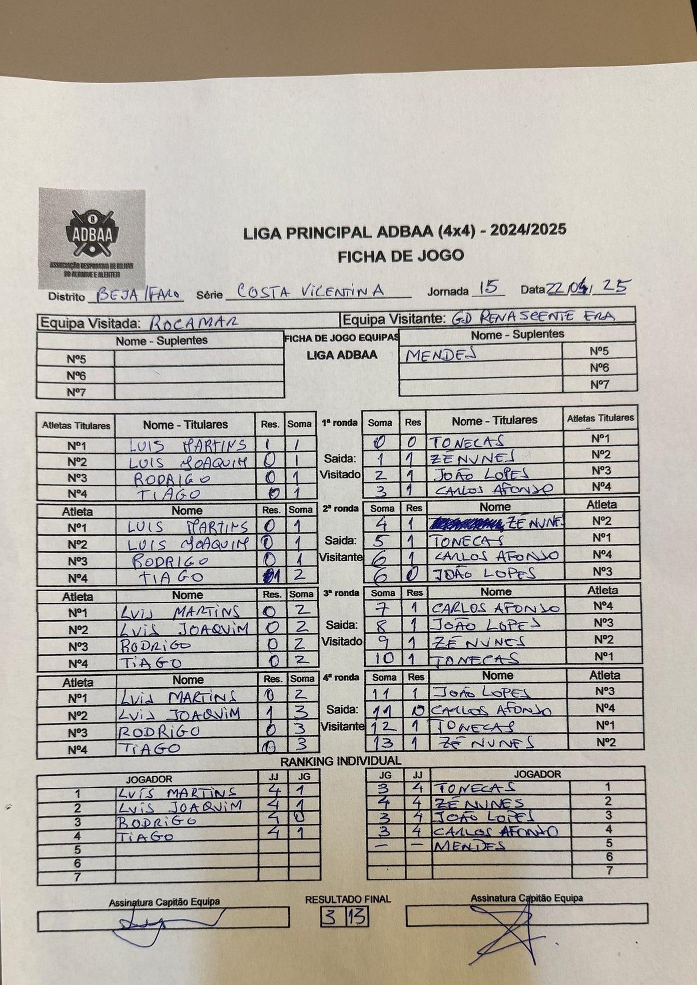 15 | 72 | JC ALJEZURENSE SUPER MARIUS | 4-12 | G D RENASCENTE MONTE ZECA | 22/04/2025 | <Sem observações>
