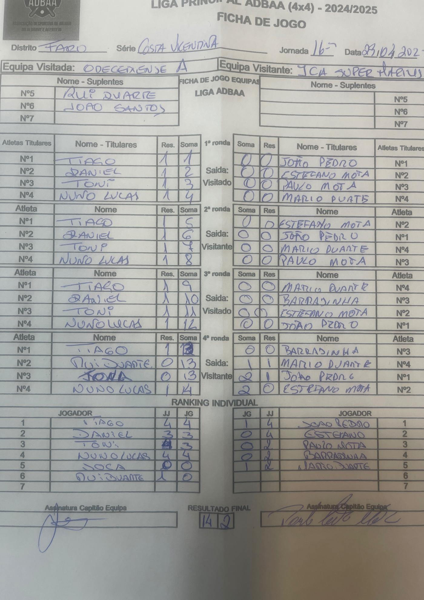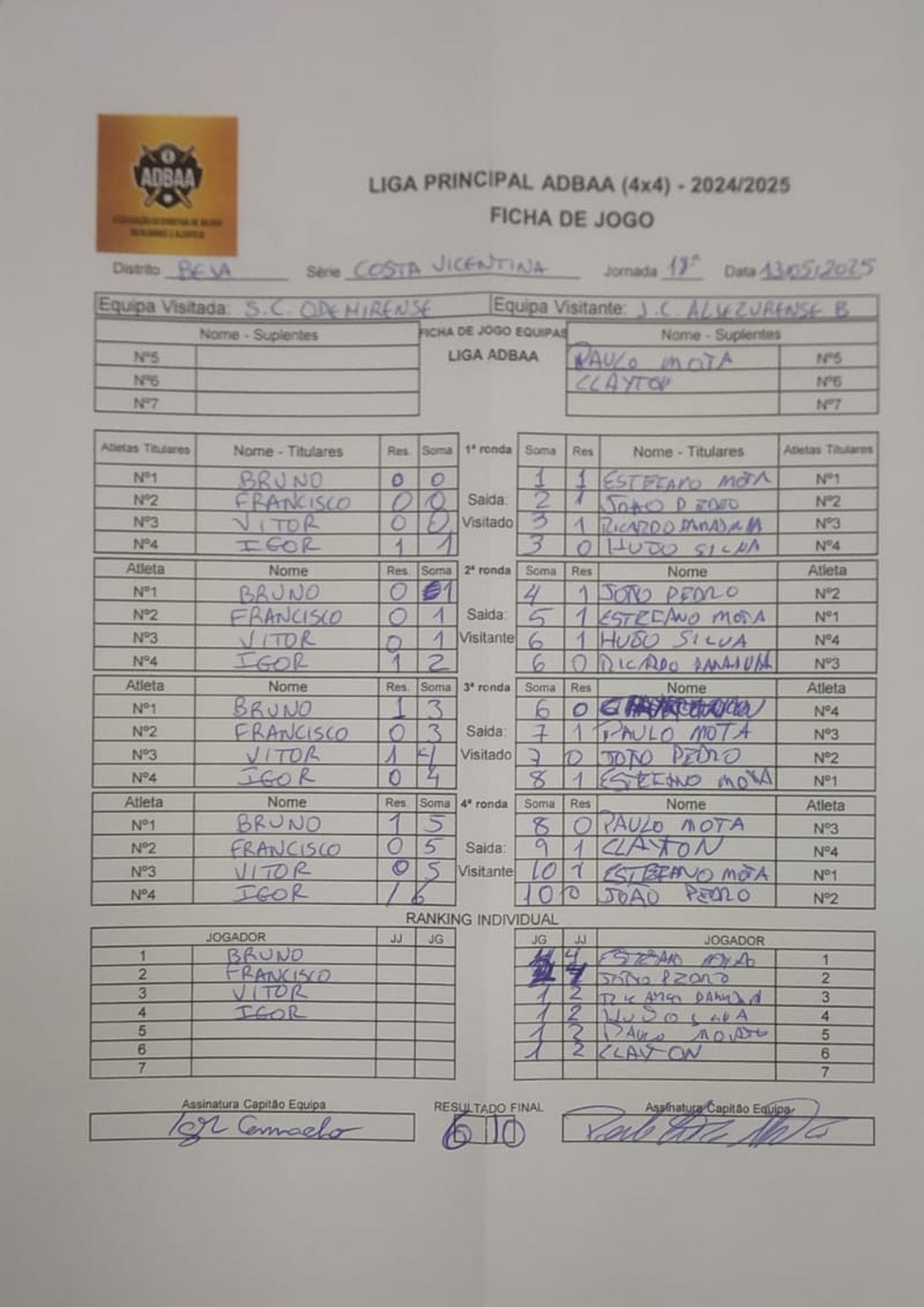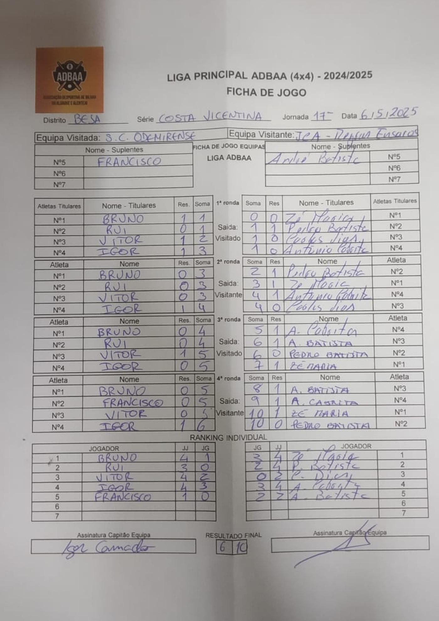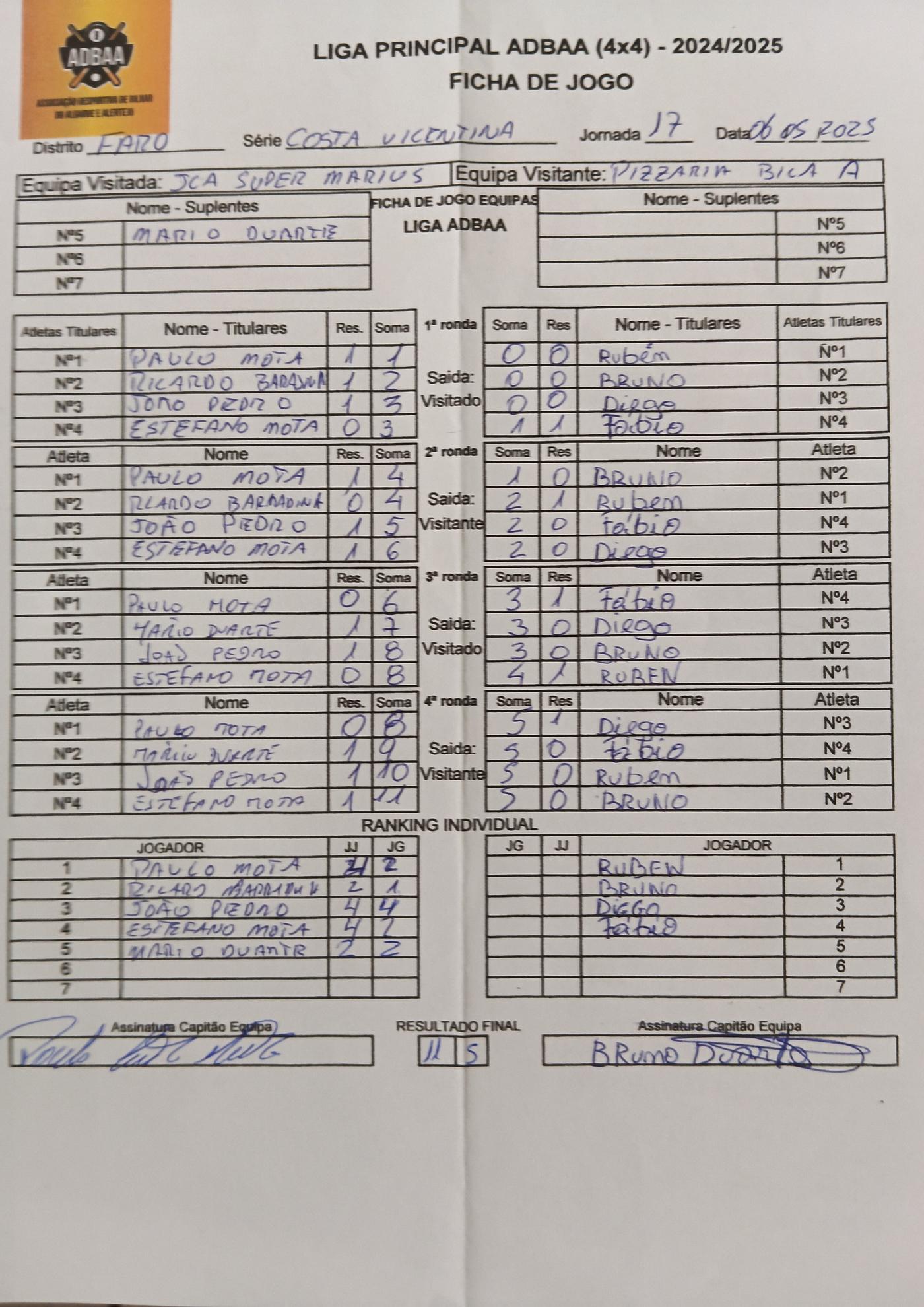 17 | 84 | JC ALJEZURENSE SUPER MARIUS | 11-5 | BICA A | 06/05/2025 | <Sem observações>