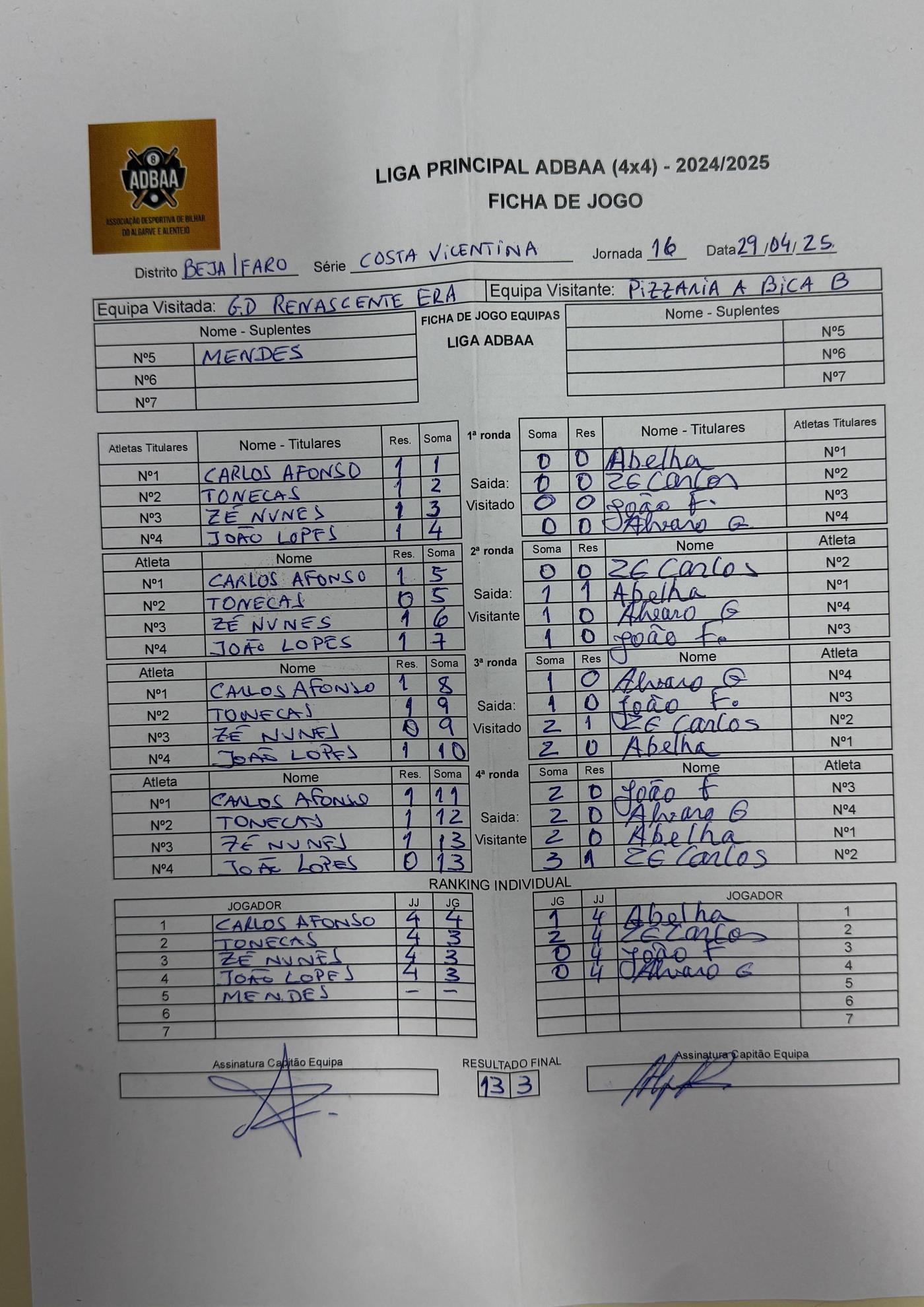 16 | 76 | G D RENASCENTE ERA SAO TEOTONIO | 13-3 | BICA B | 29/04/2025 | <Sem observações>