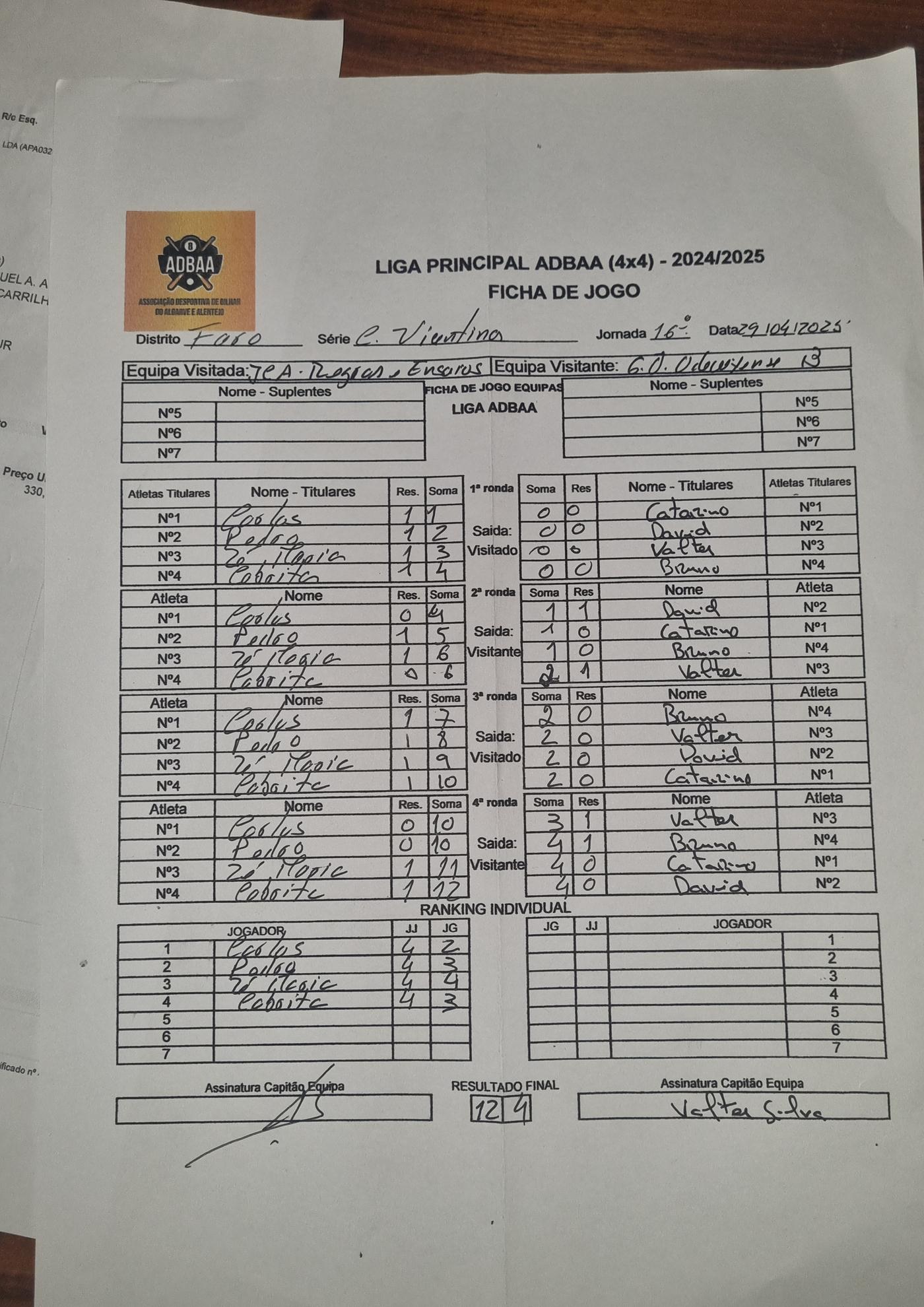4 | 18 | G DESPORTIVO ODECEIXENSE B | 7-9 | JC ALJEZURENSE SUPER MARIUS | 12/11/2024 | <Sem observações>