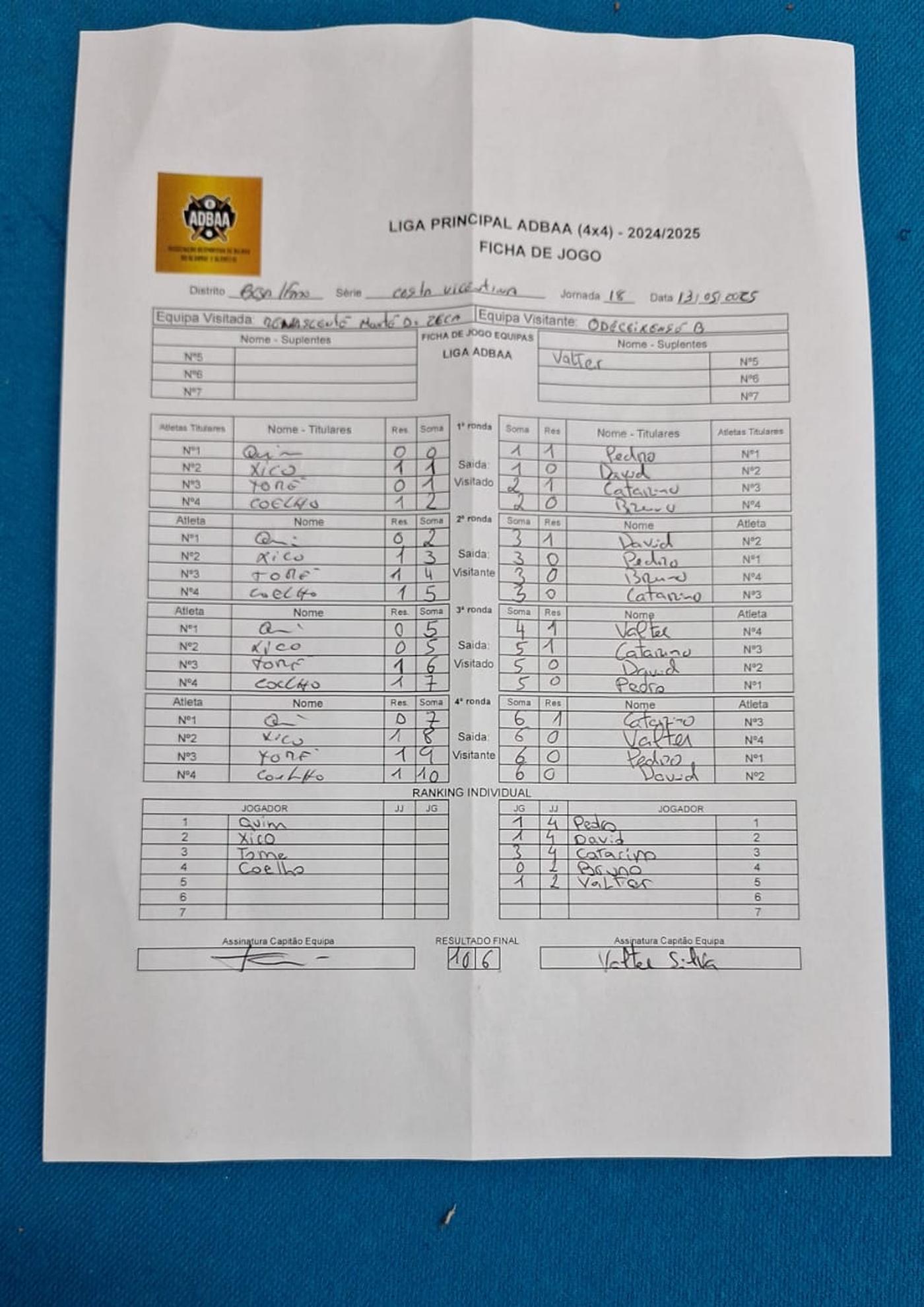18 | 87 | G DESPORTIVO ODECEIXENSE A | 15-1 | BICA B | 13/05/2025 | <Sem observações>