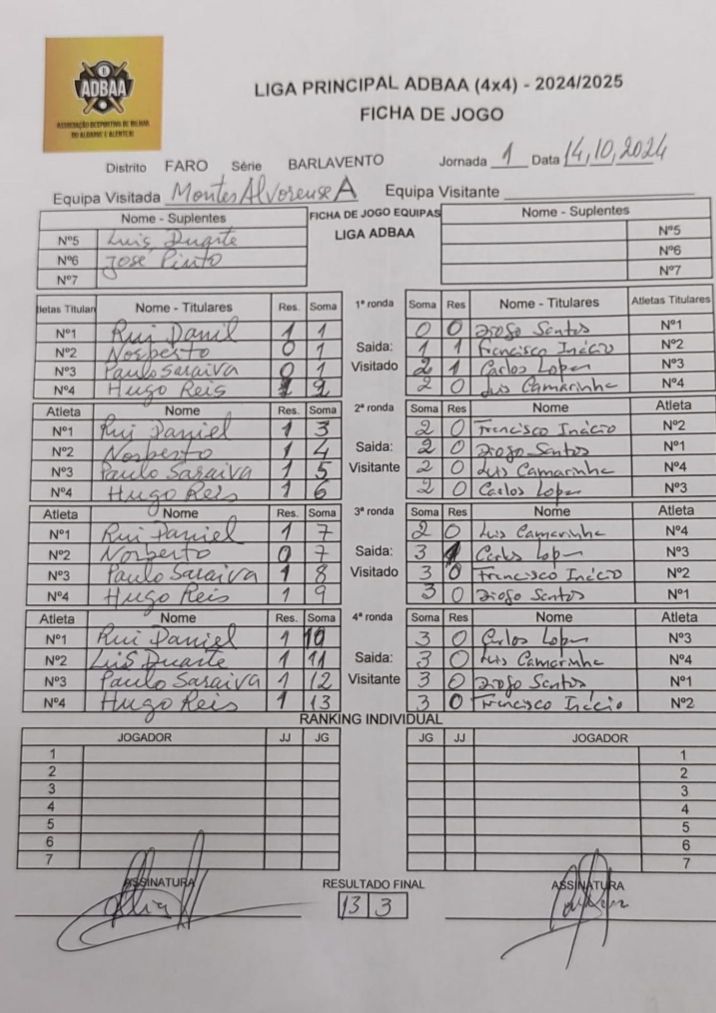 1 | 5 | C.F.MONTES ALVORENSE A | 13-3 | C.F.MONTES ALVORENSE B | 14/10/2024 | <Sem observações> |
