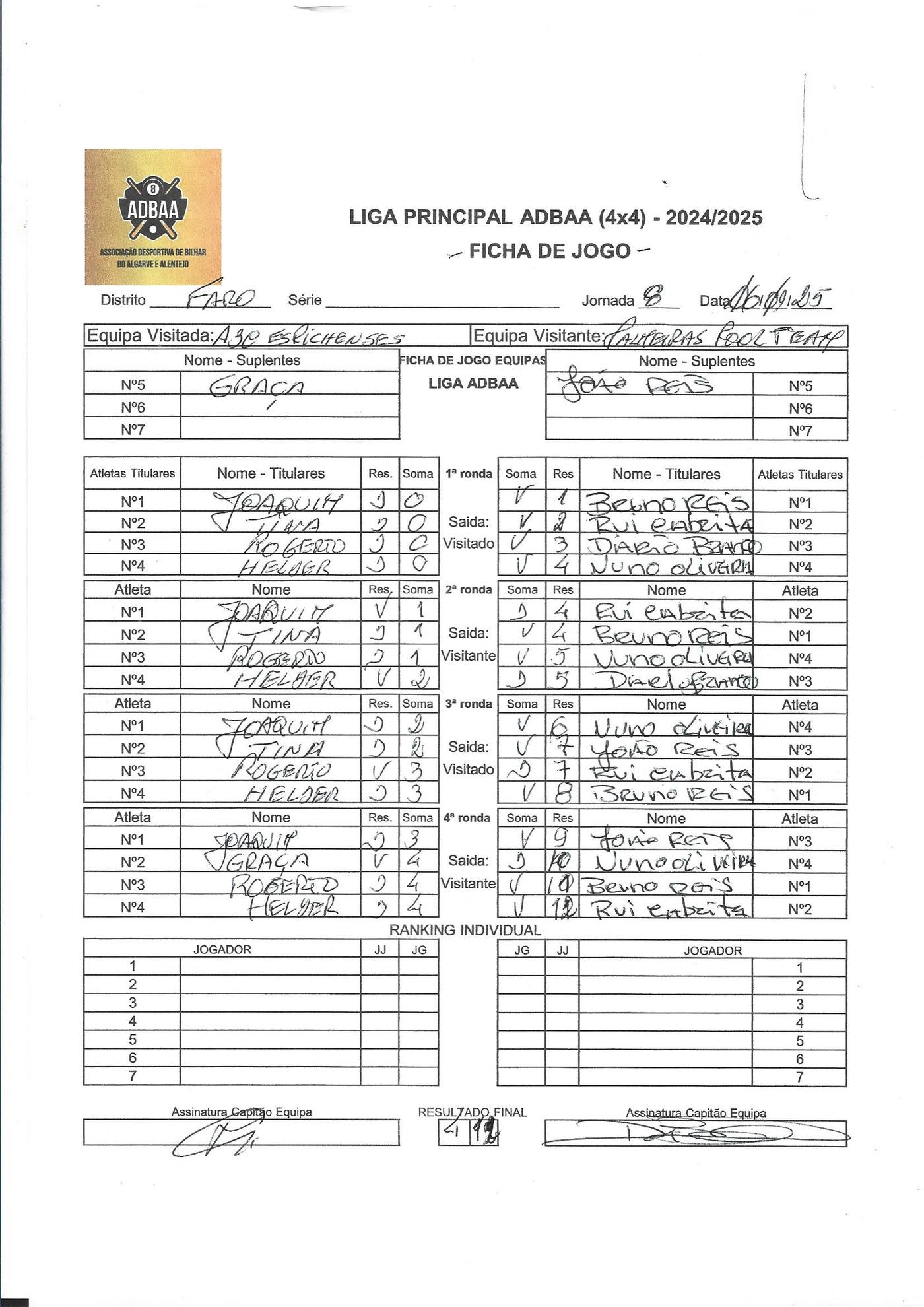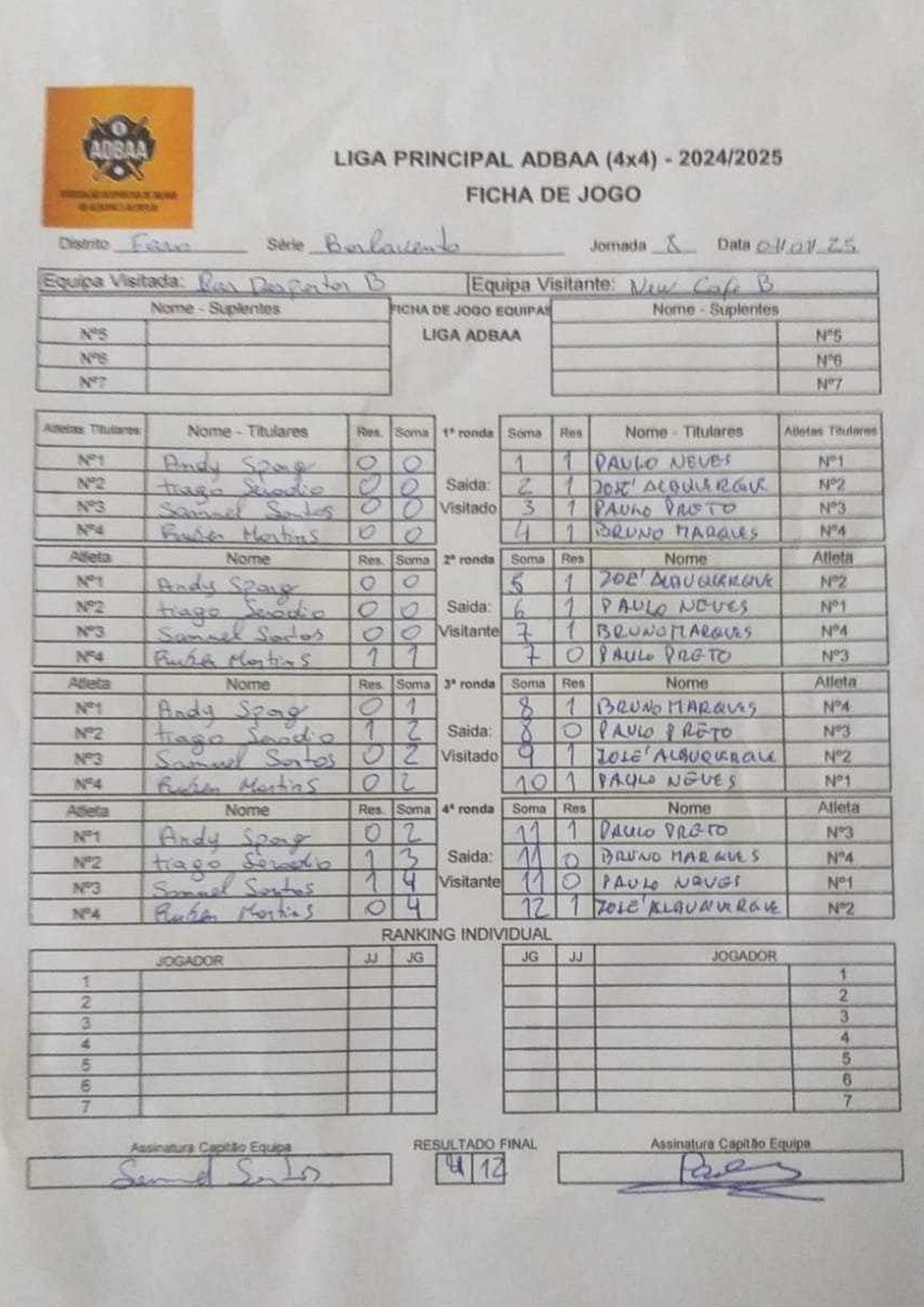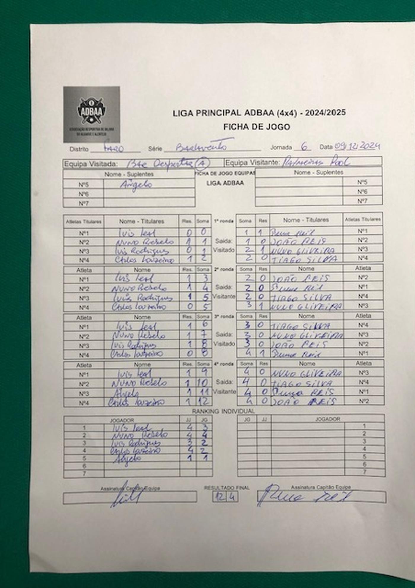 8 | 39 | ABC ESPICHENSE B | 4-12 | PALMEIRAS POOL TEAM | 06/01/2025 | <Sem observações> |