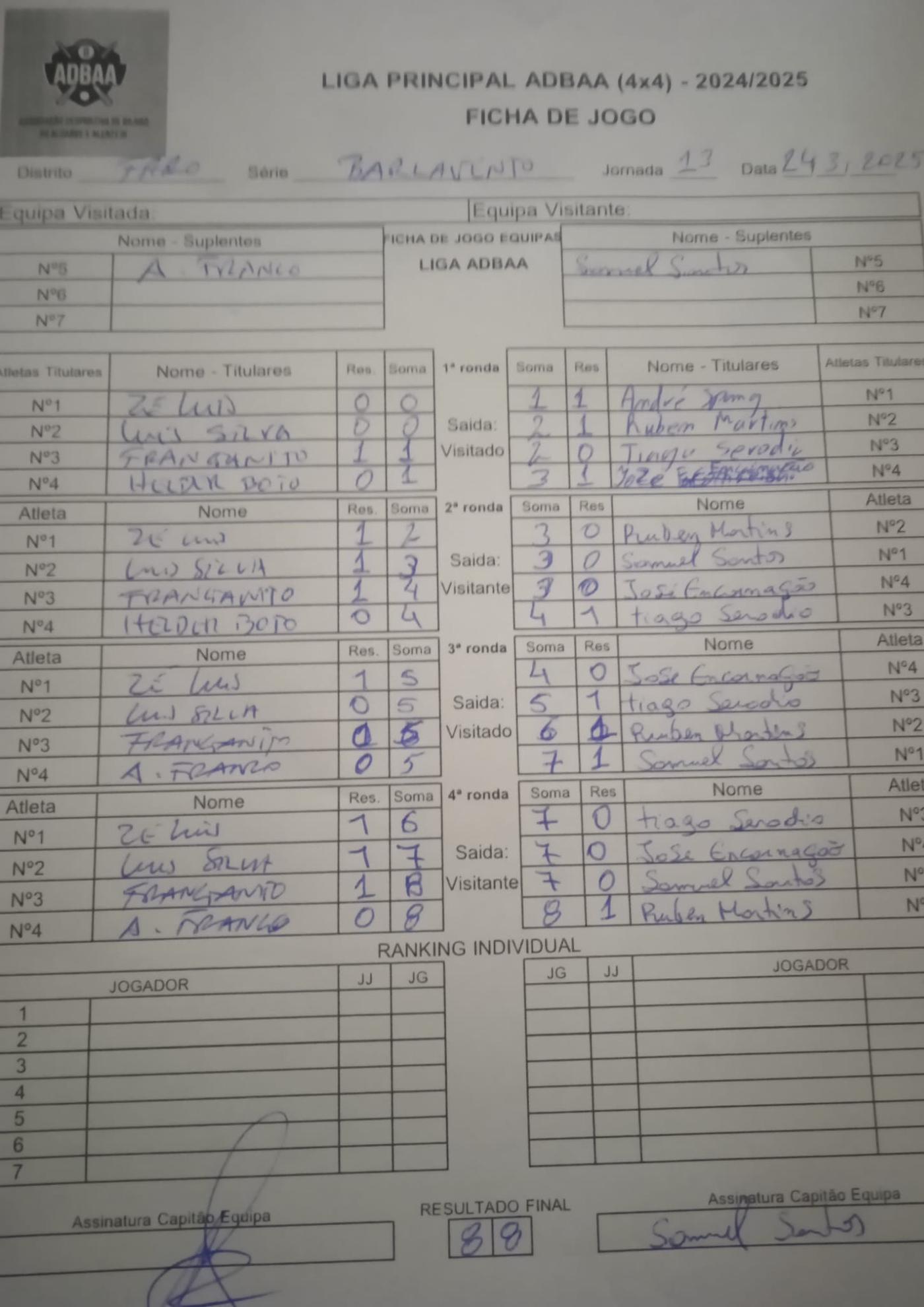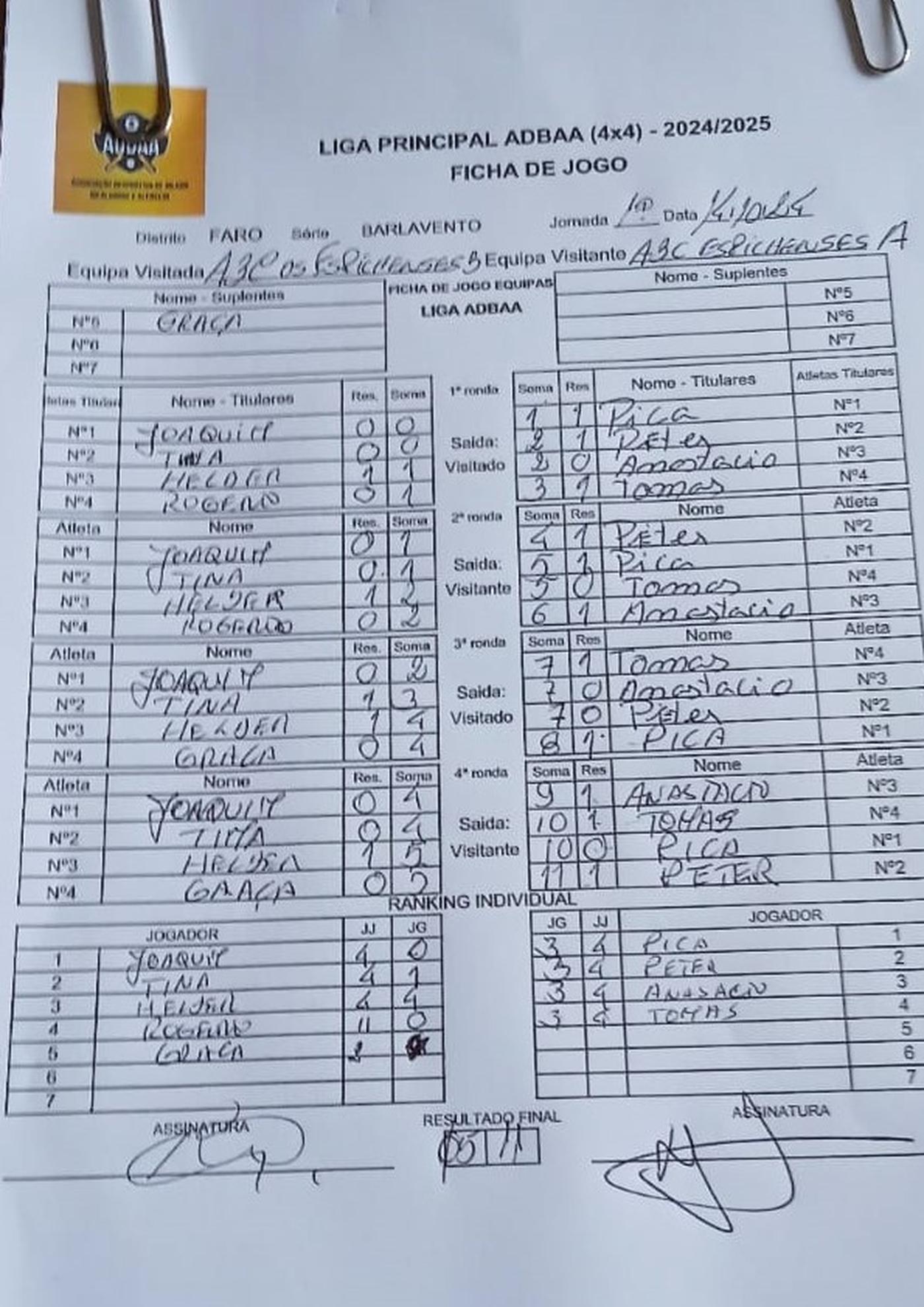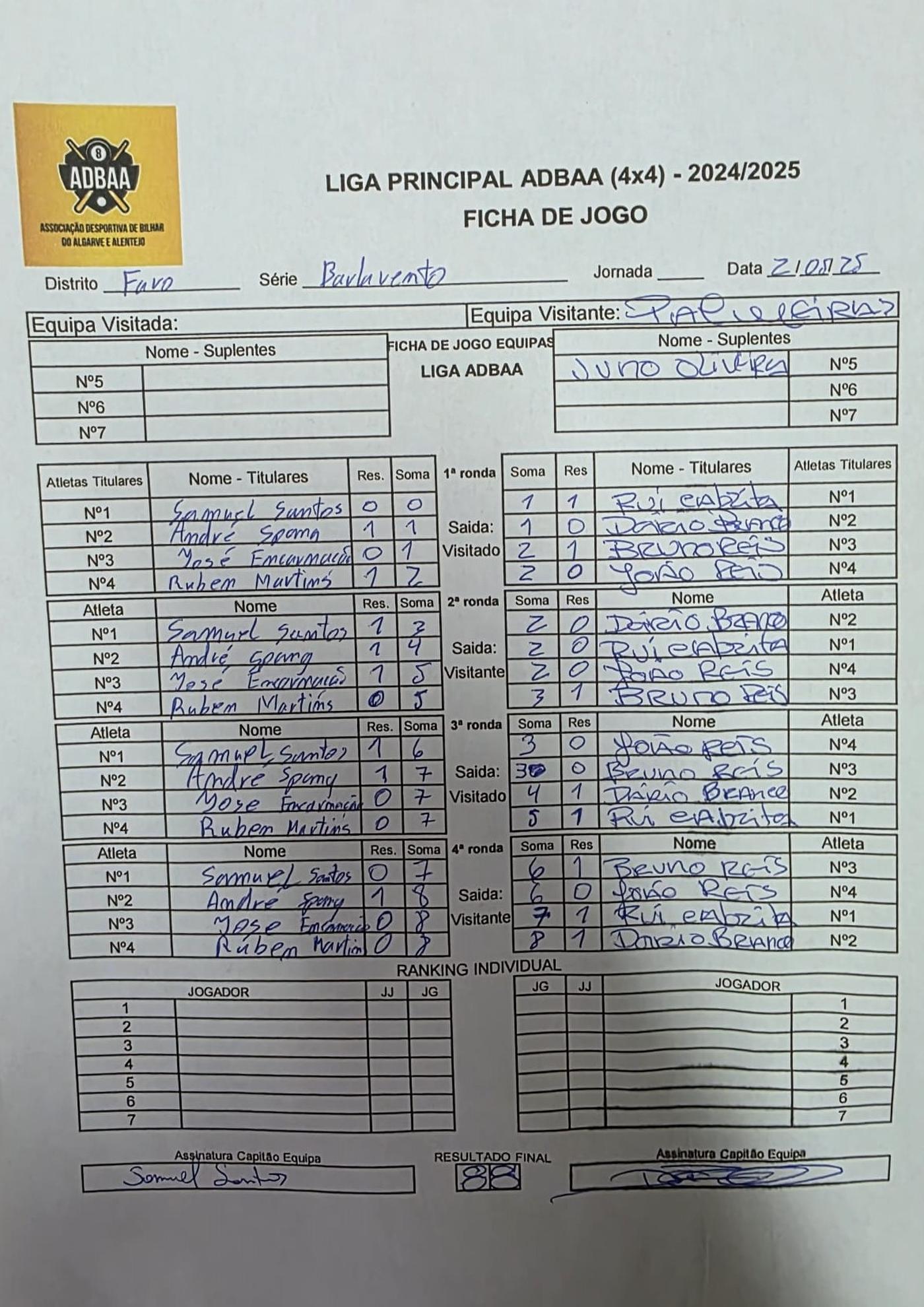 8 | 39 | ABC ESPICHENSE B | 4-12 | PALMEIRAS POOL TEAM | 06/01/2025 | <Sem observações> |
