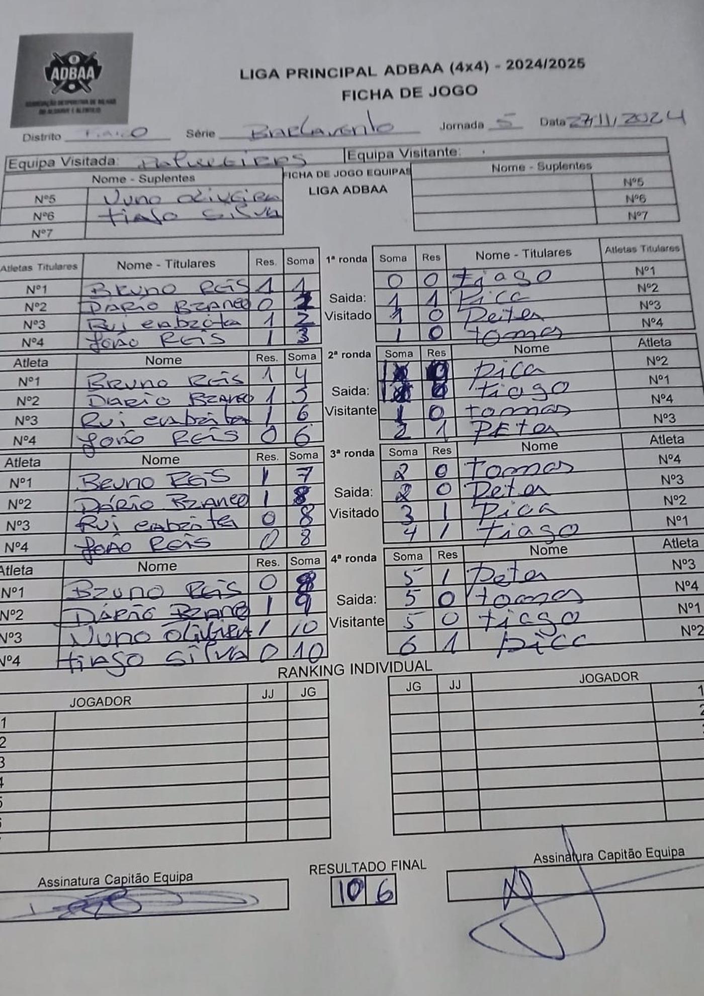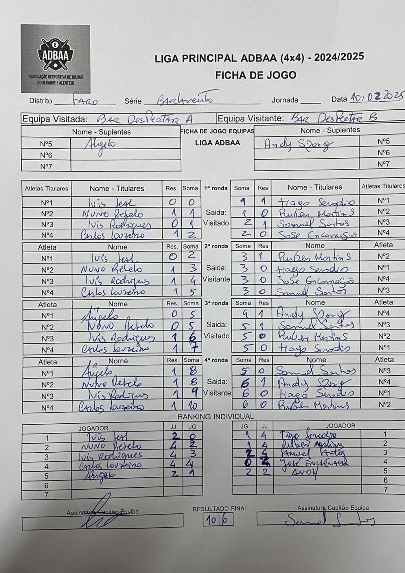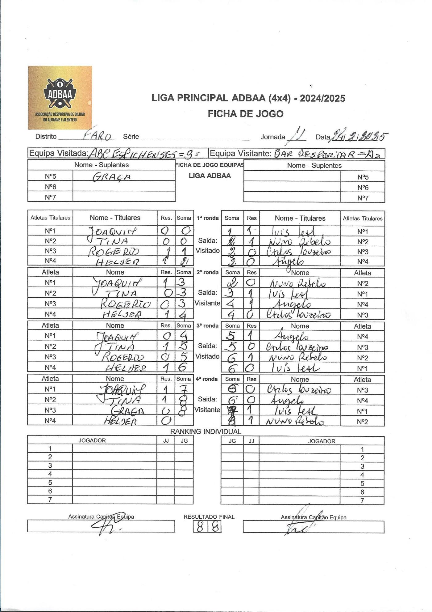 1 | 1 | BAR DESPERTAR B | 4-12 | BAR DESPERTAR A | 14/10/2024 | <Sem observações> |