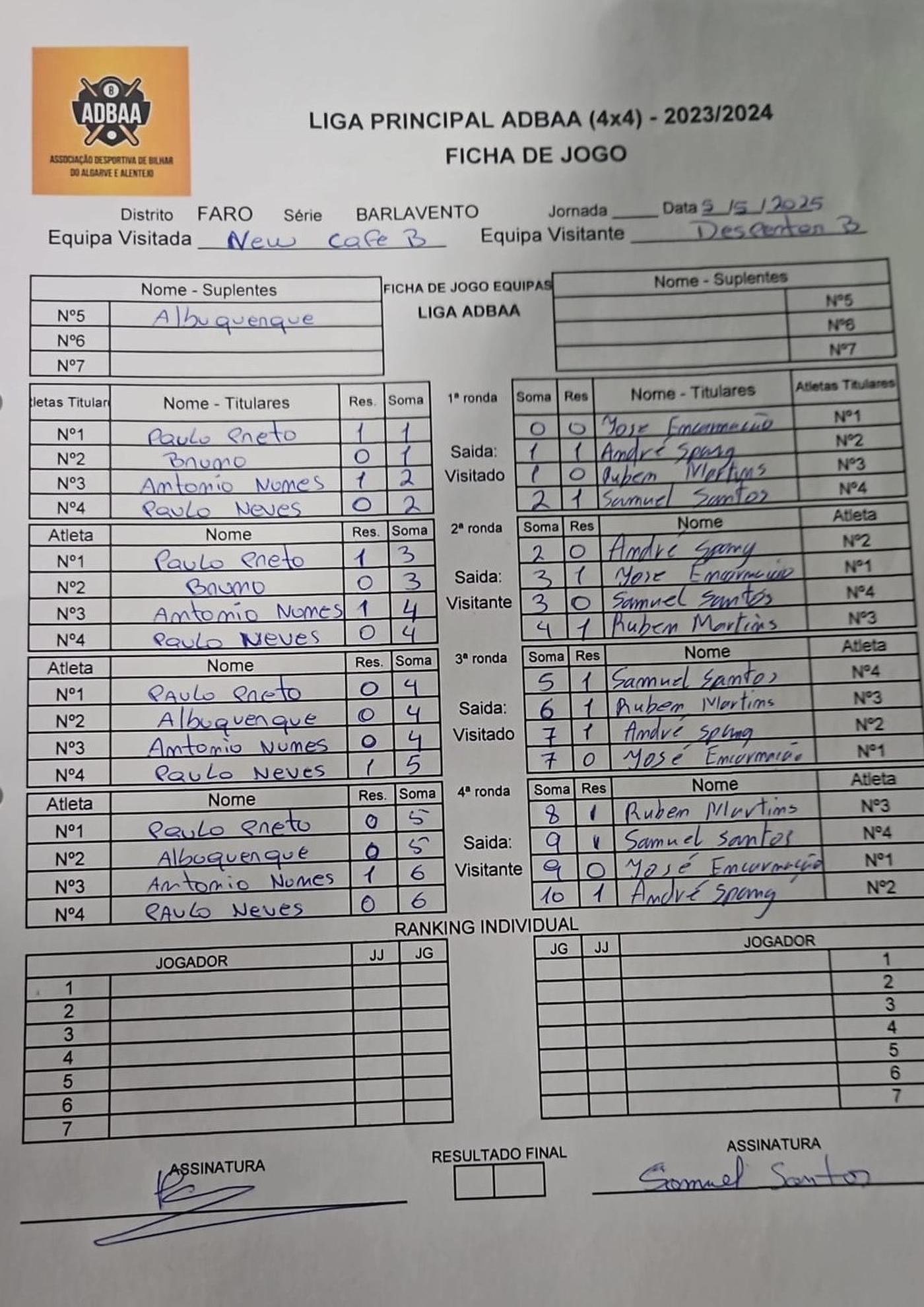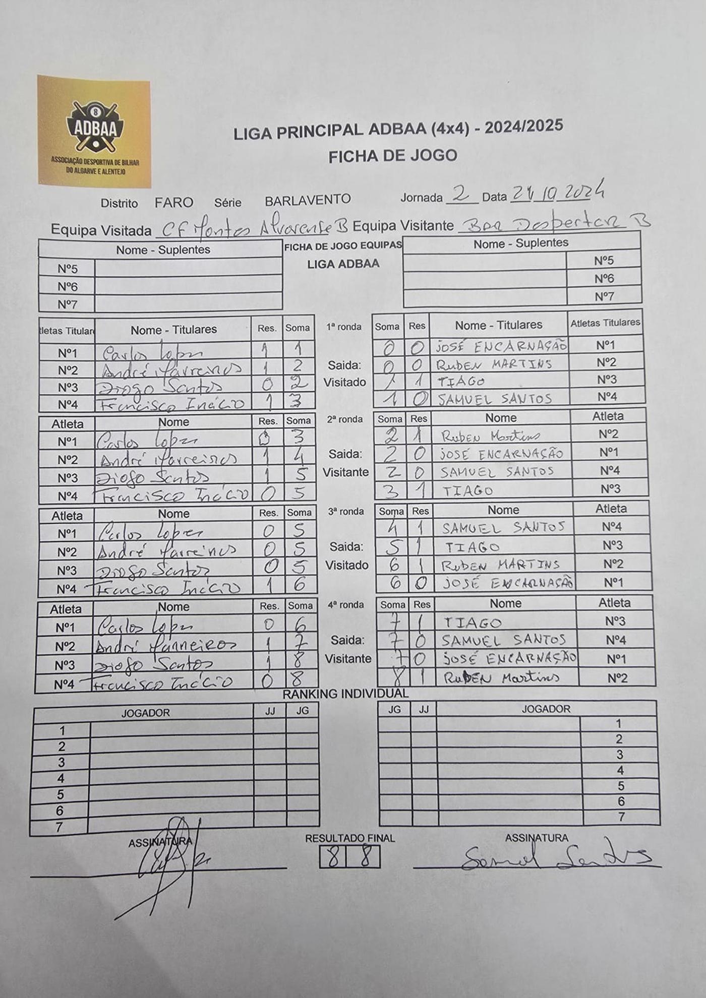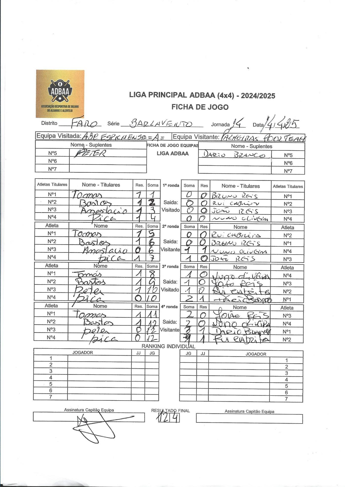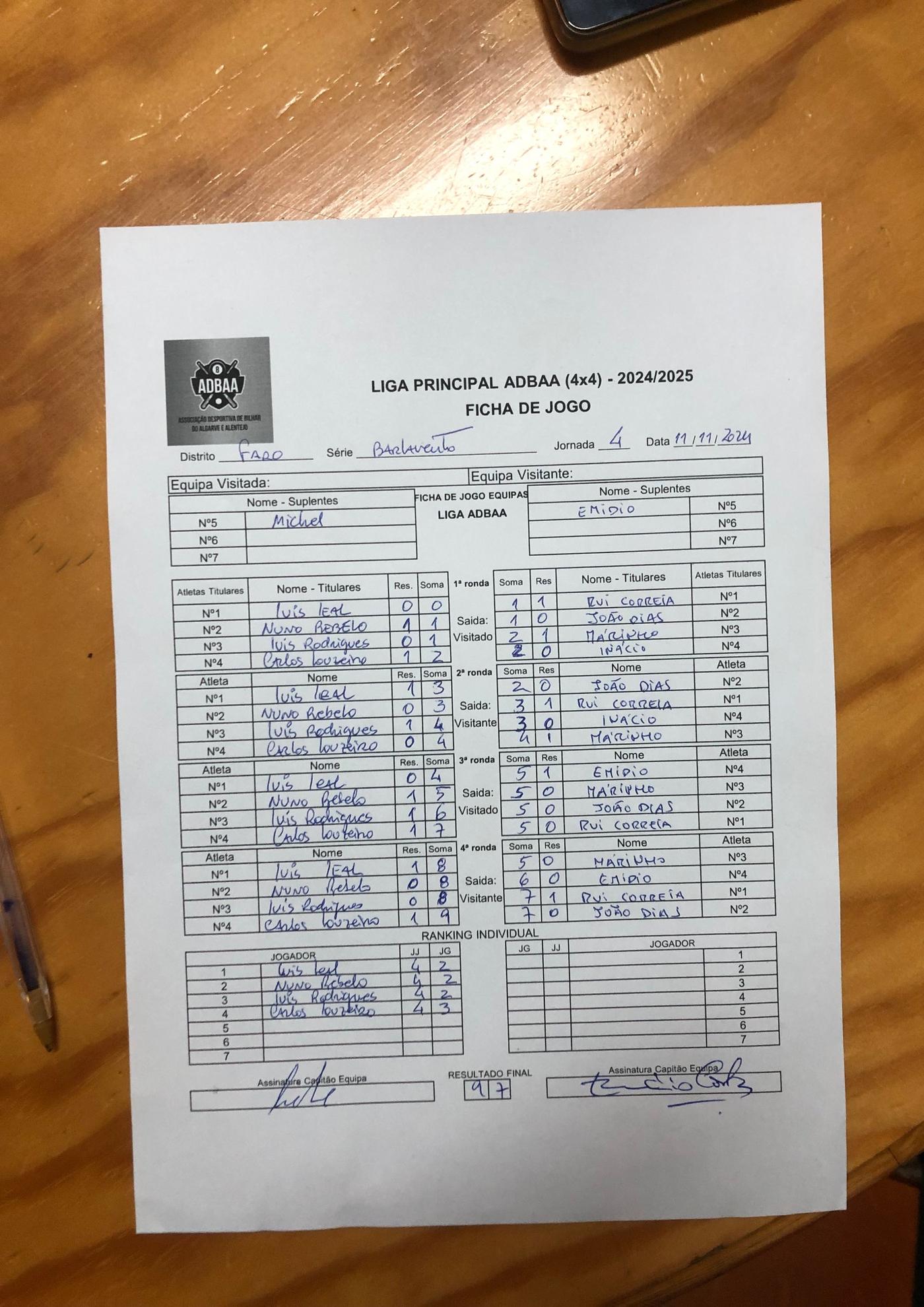 1 | 1 | BAR DESPERTAR B | 4-12 | BAR DESPERTAR A | 14/10/2024 | <Sem observações> |
