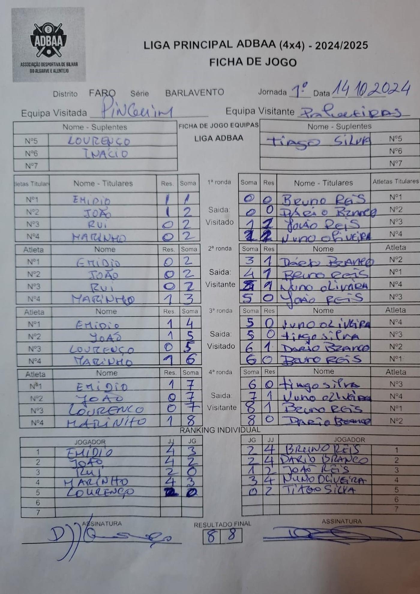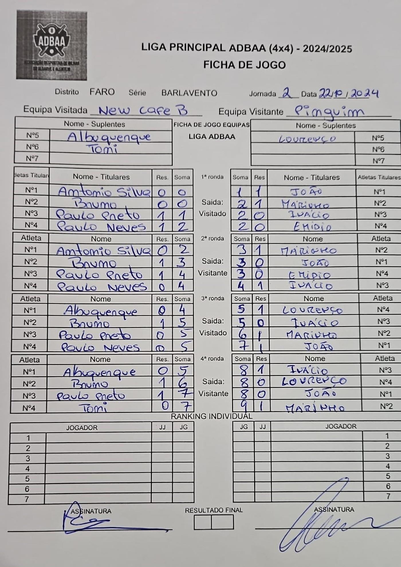 2 | 8 | NEW CAFE B | 7-9 | PINGUIM | 22/10/2024 | <Sem observações> |