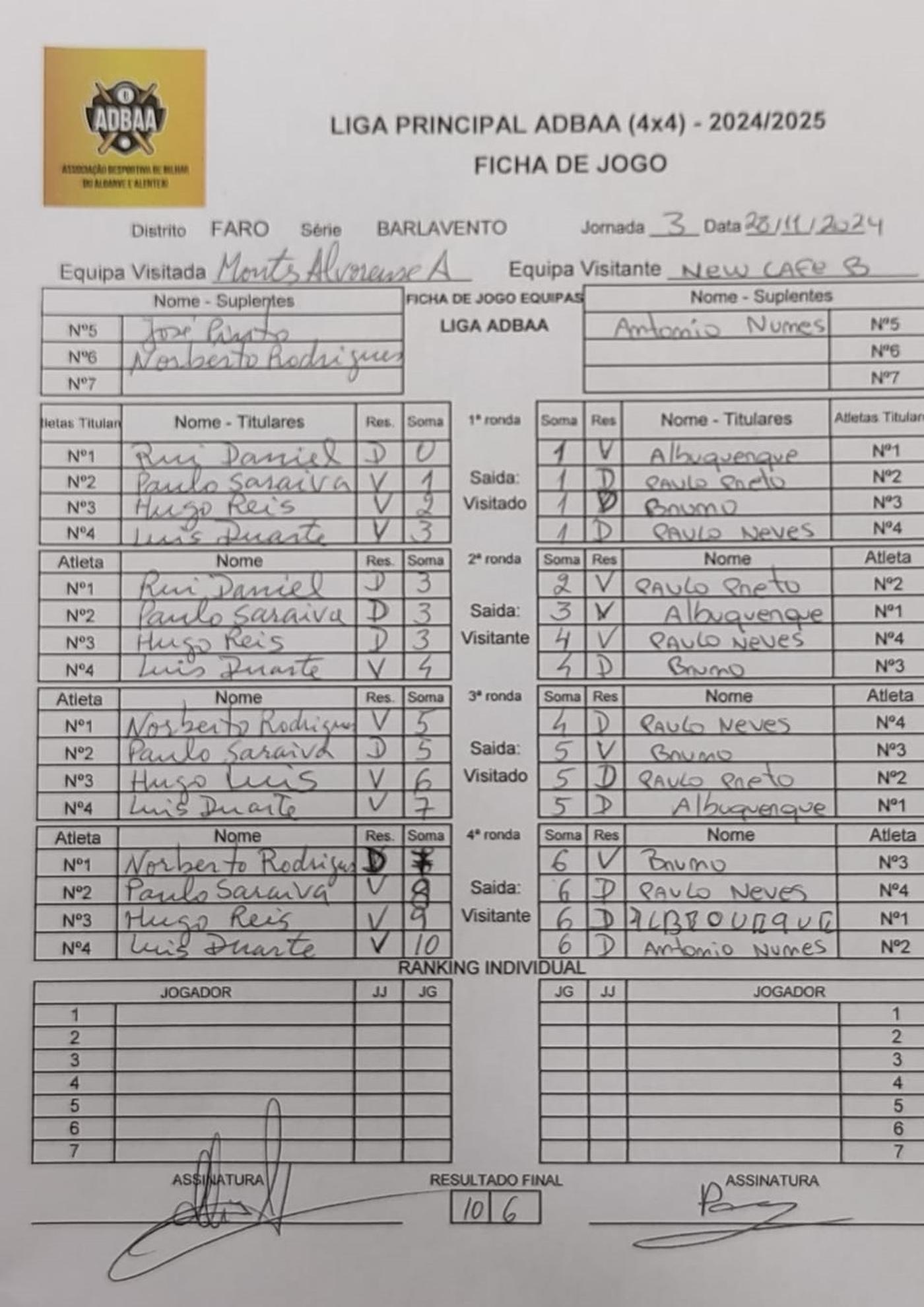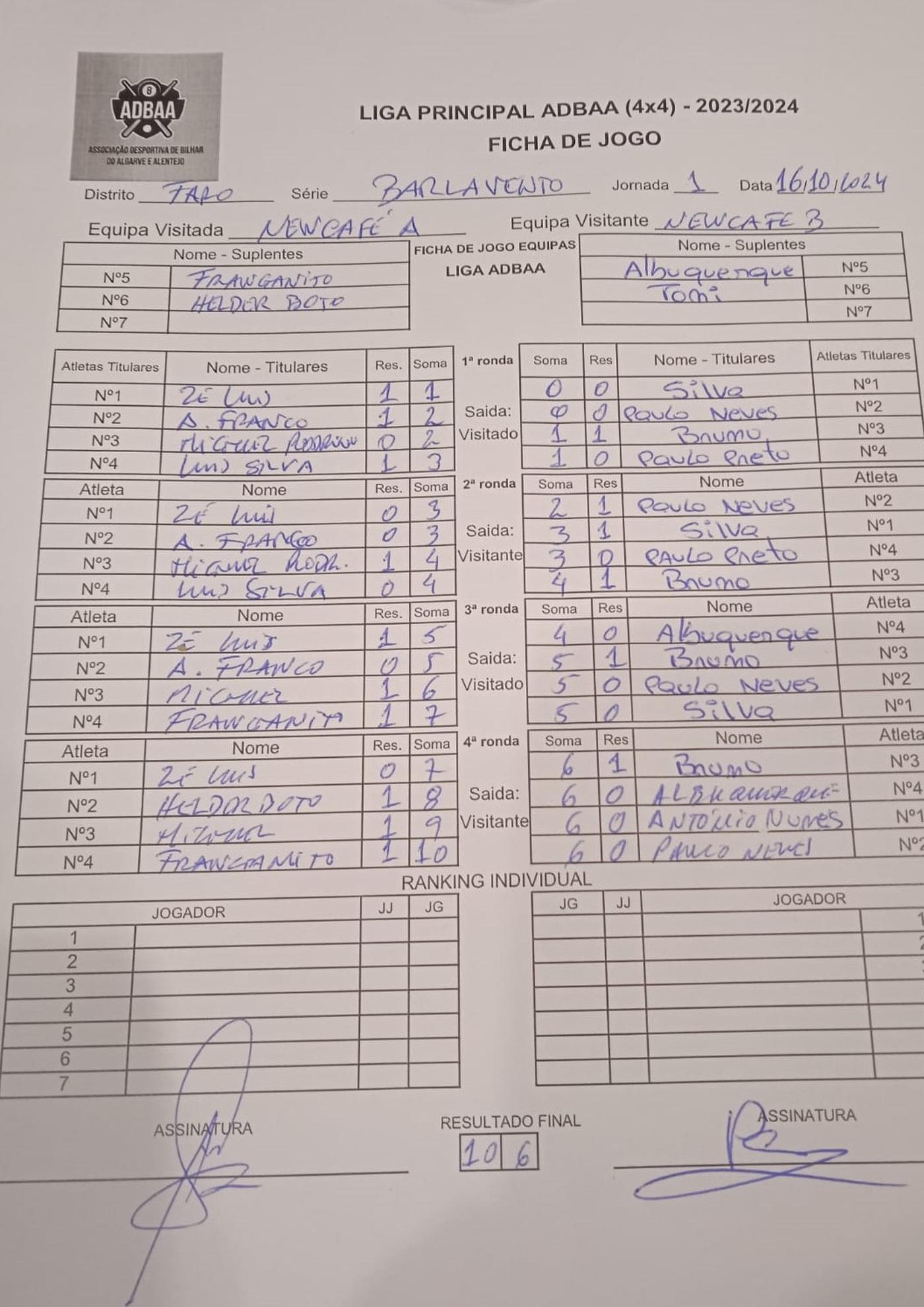 3 | 14 | C.F.MONTES ALVORENSE A | 10-6 | NEW CAFE B | 28/10/2024 | <Sem observações> |