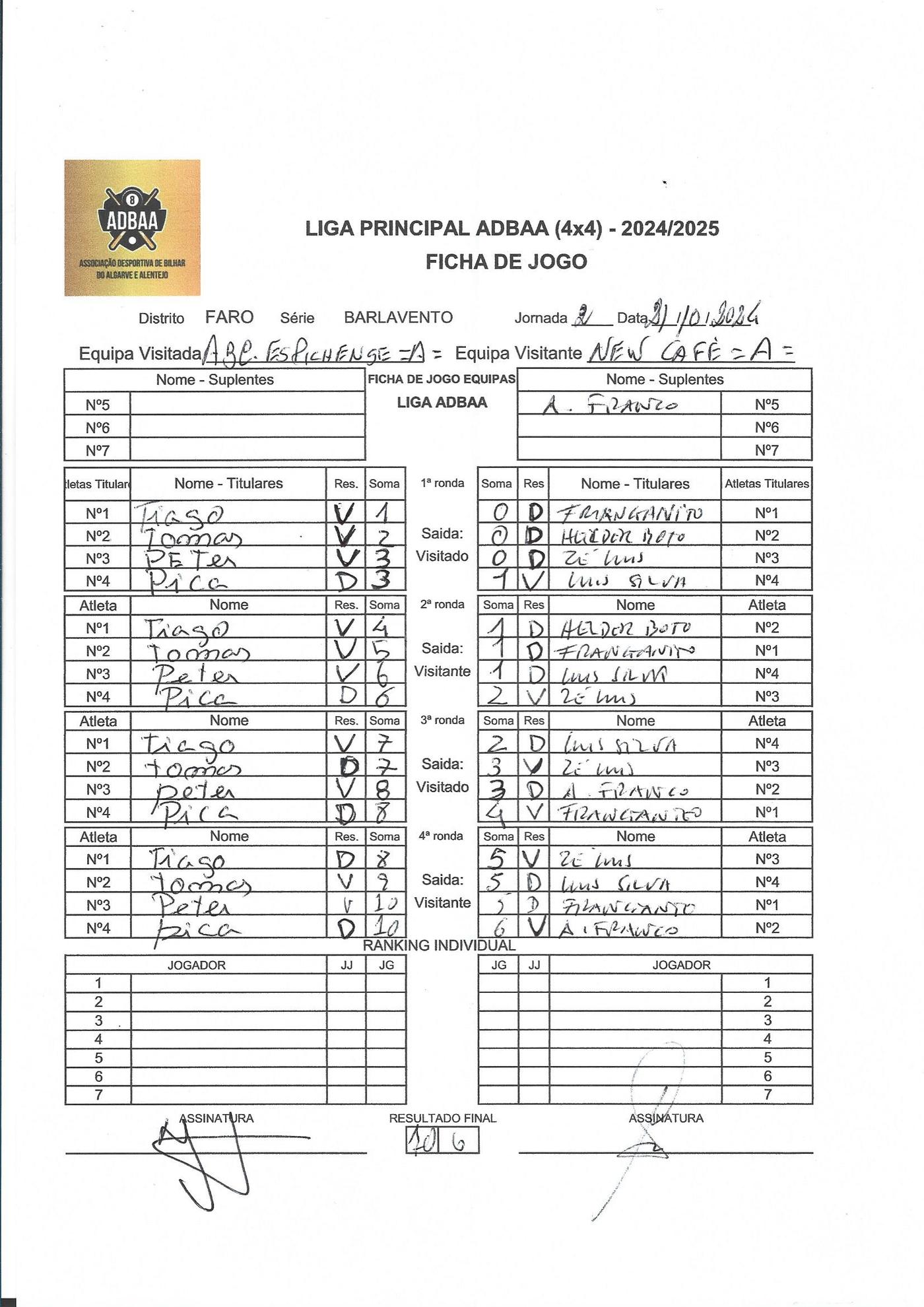 9 | 43 | NEW CAFE B | 12-4 | ABC ESPICHENSE B | 21/01/2025 | <Sem observações> |