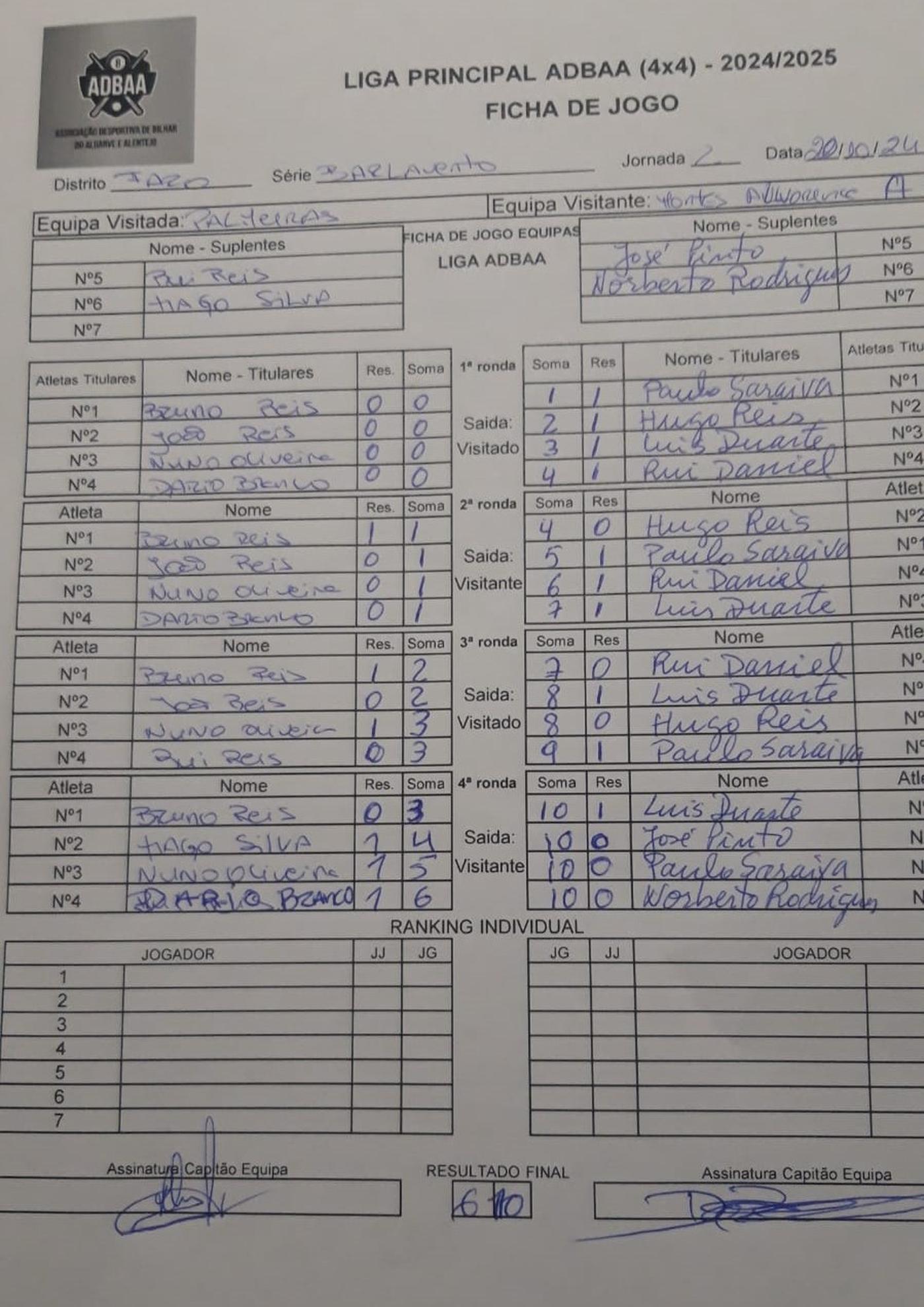 2 | 9 | PALMEIRAS POOL TEAM | 6-10 | C.F.MONTES ALVORENSE A | 22/10/2024 | <Sem observações> |