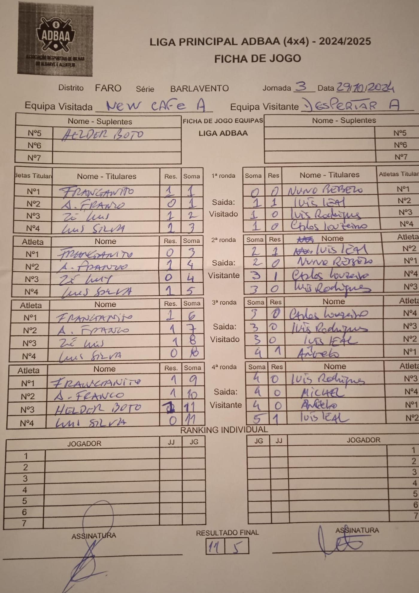 3 | 11 | NEW CAFE A | 11-5 | BAR DESPERTAR A | 29/10/2024 | <Sem observações> |
