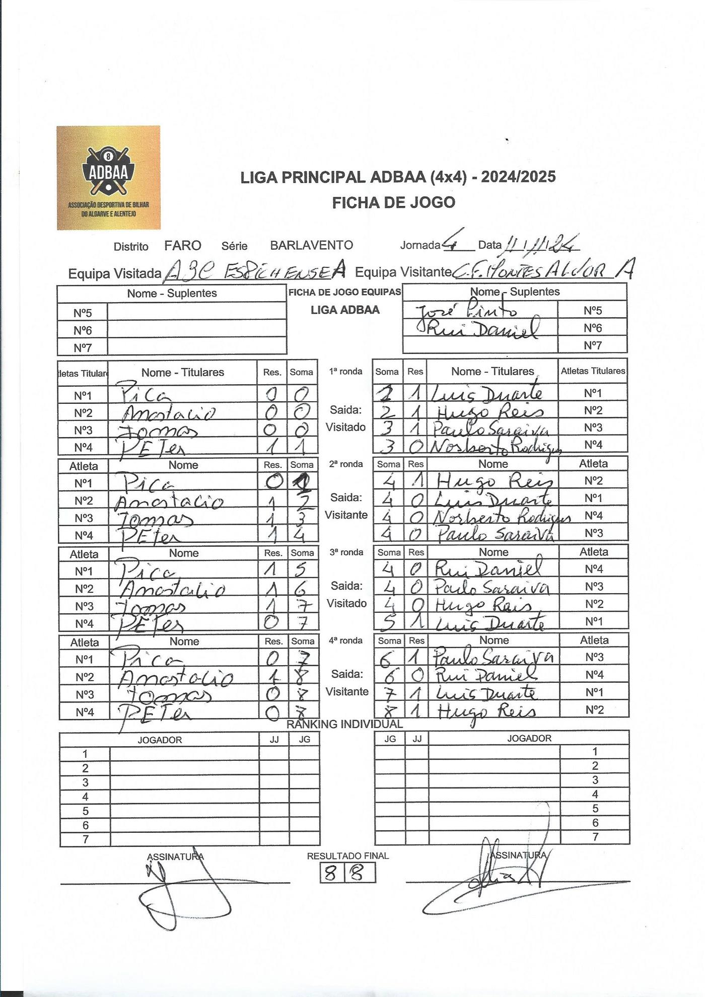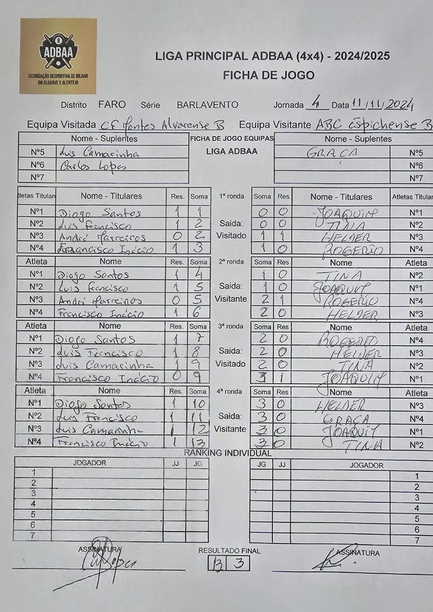 4 | 18 | ABC ESPICHENSE A | 8-8 | C.F.MONTES ALVORENSE A | 11/11/2024 | <Sem observações> |