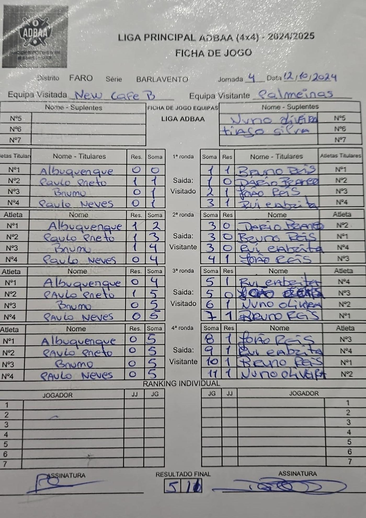 4 | 19 | NEW CAFE B | 5-11 | PALMEIRAS POOL TEAM | 12/11/2024 | <Sem observações> |