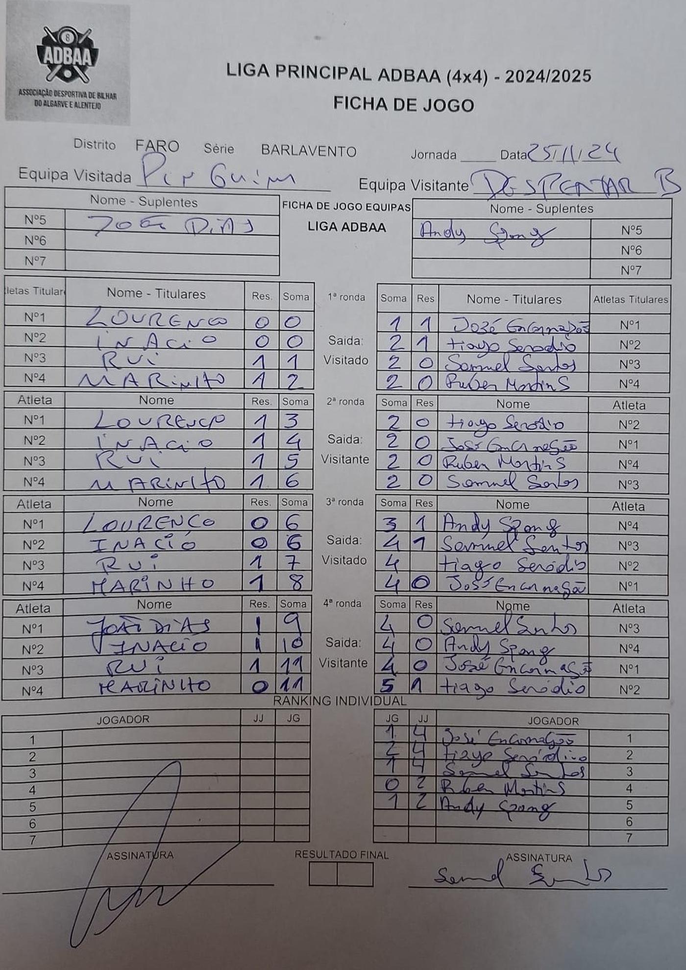 3 | 15 | PALMEIRAS POOL TEAM | 12-4 | C.F.MONTES ALVORENSE B | 29/10/2024 | <Sem observações> |