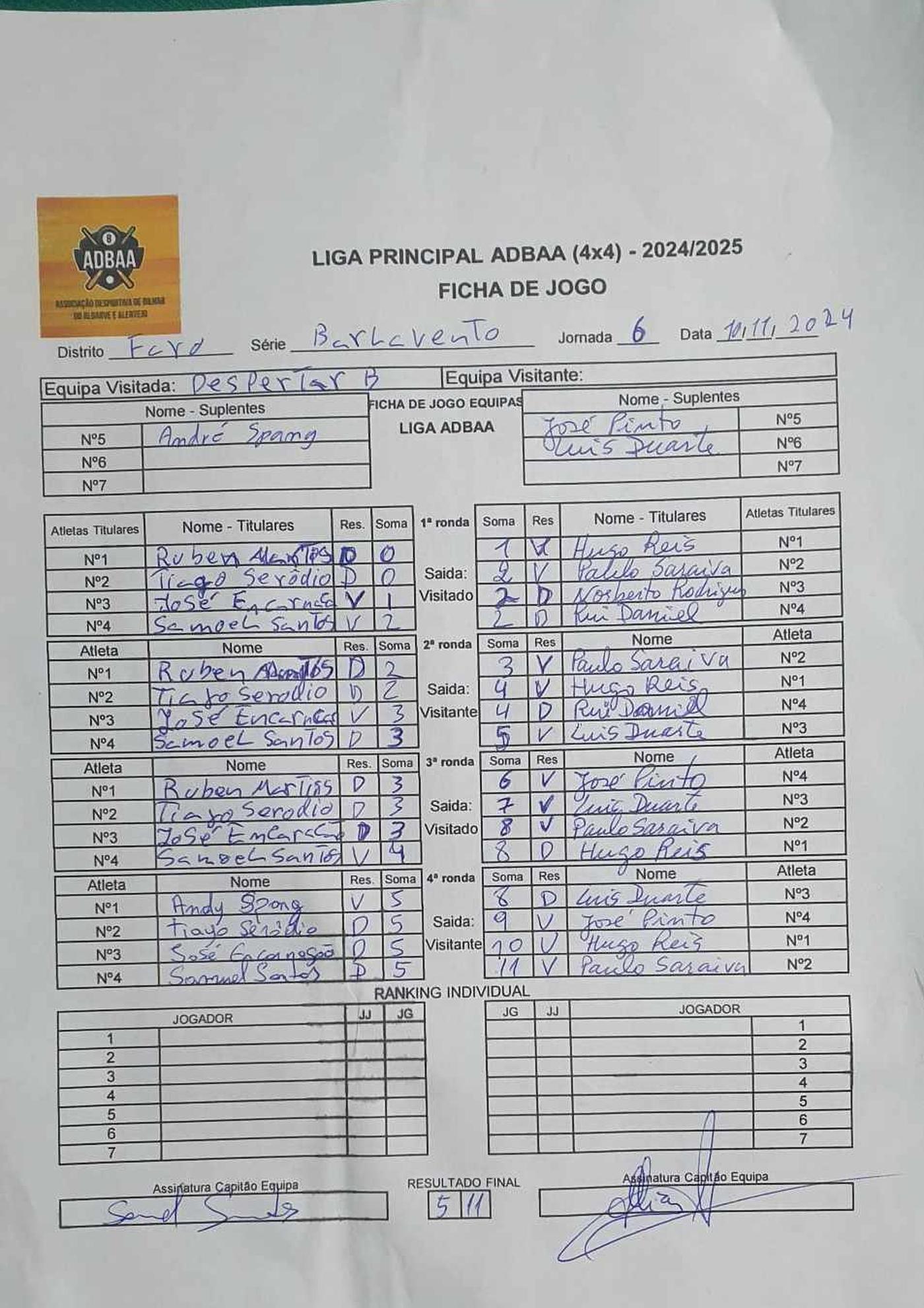 6 | 28 | BAR DESPERTAR B | 5-11 | C.F.MONTES ALVORENSE A | 10/12/2024 | <Sem observações> |