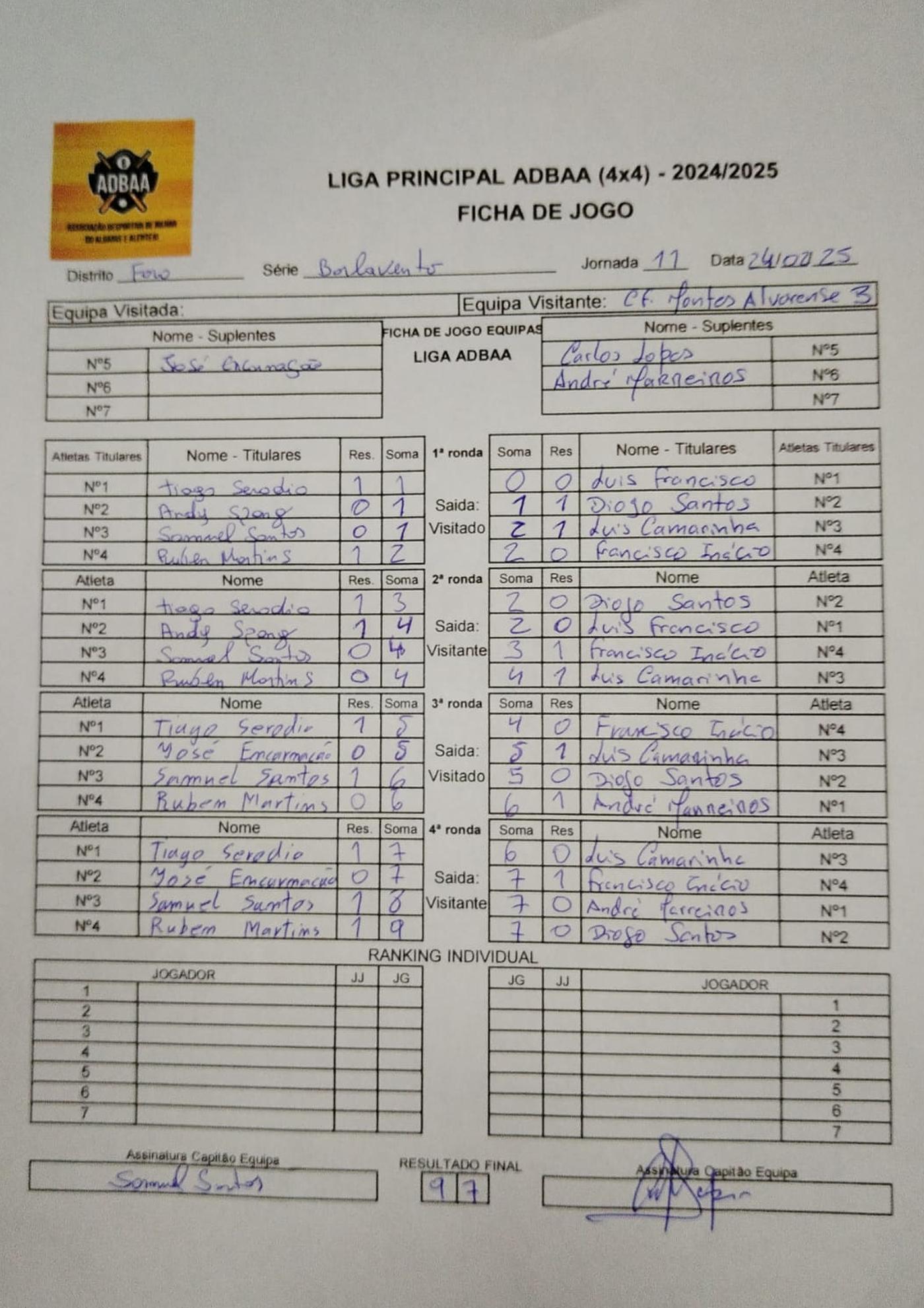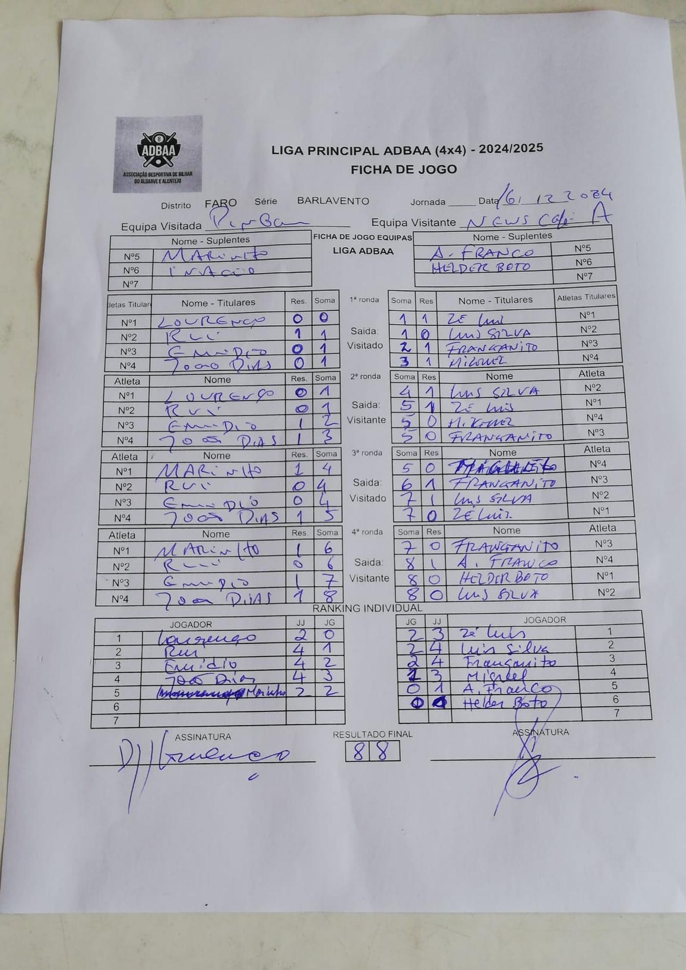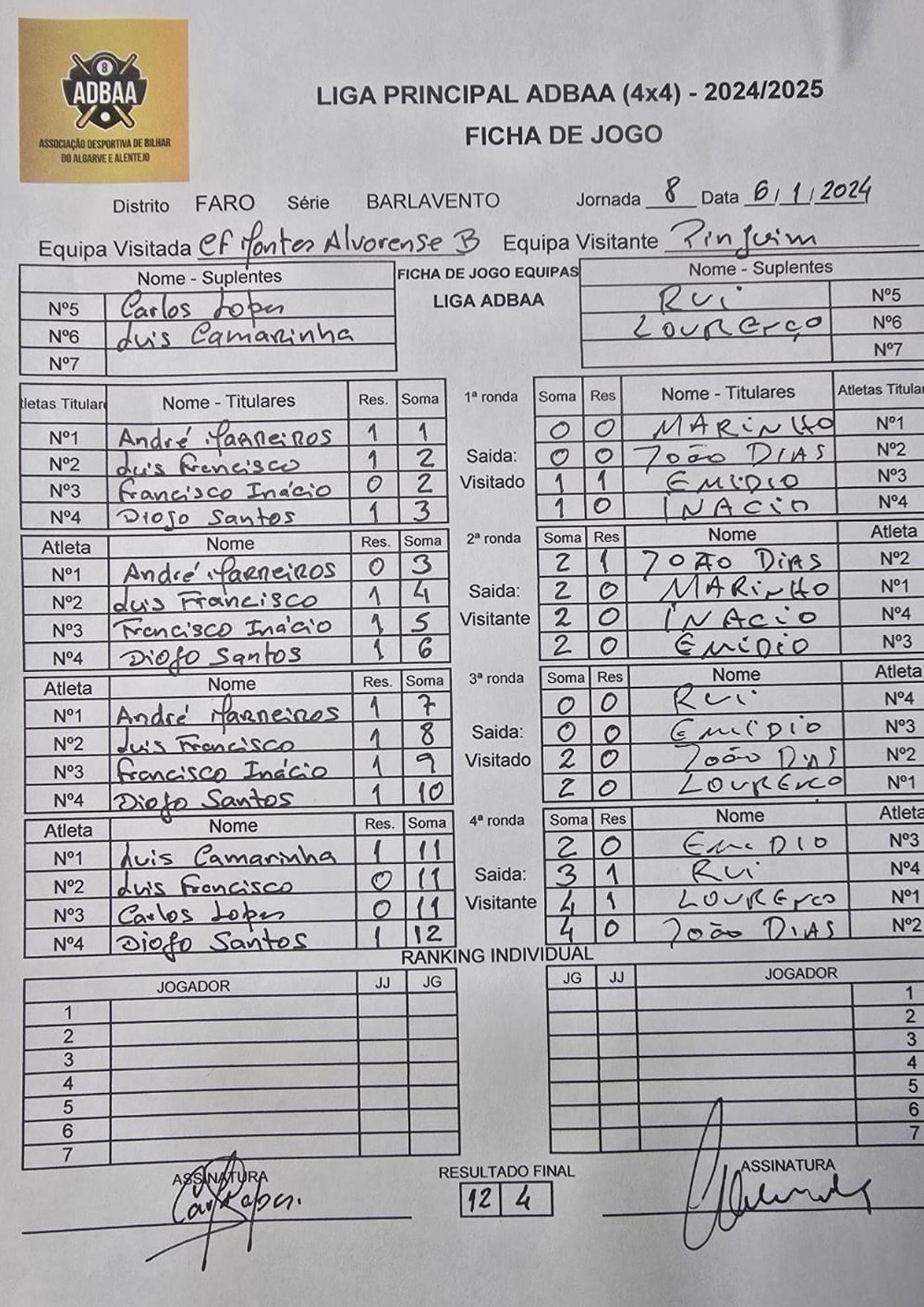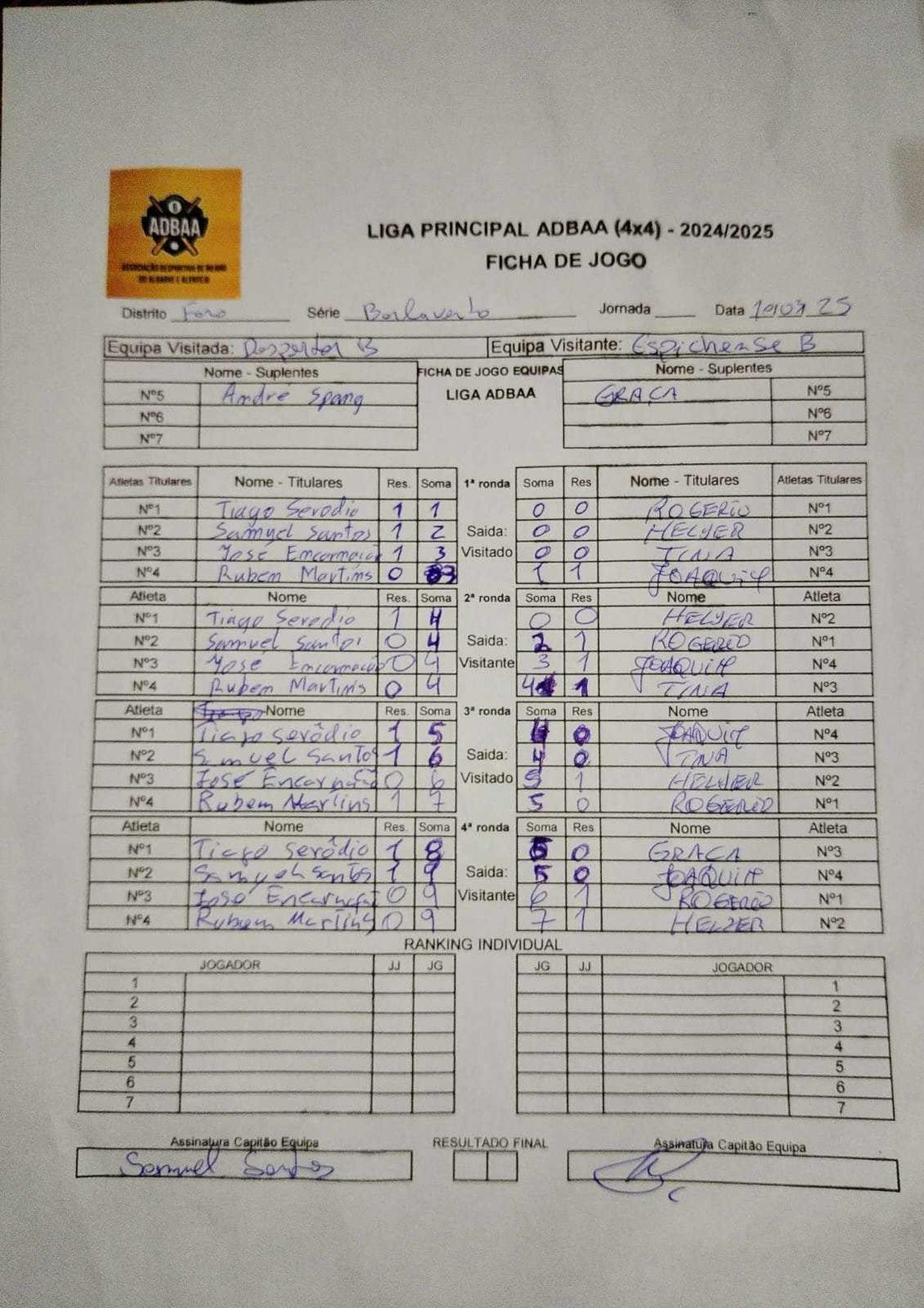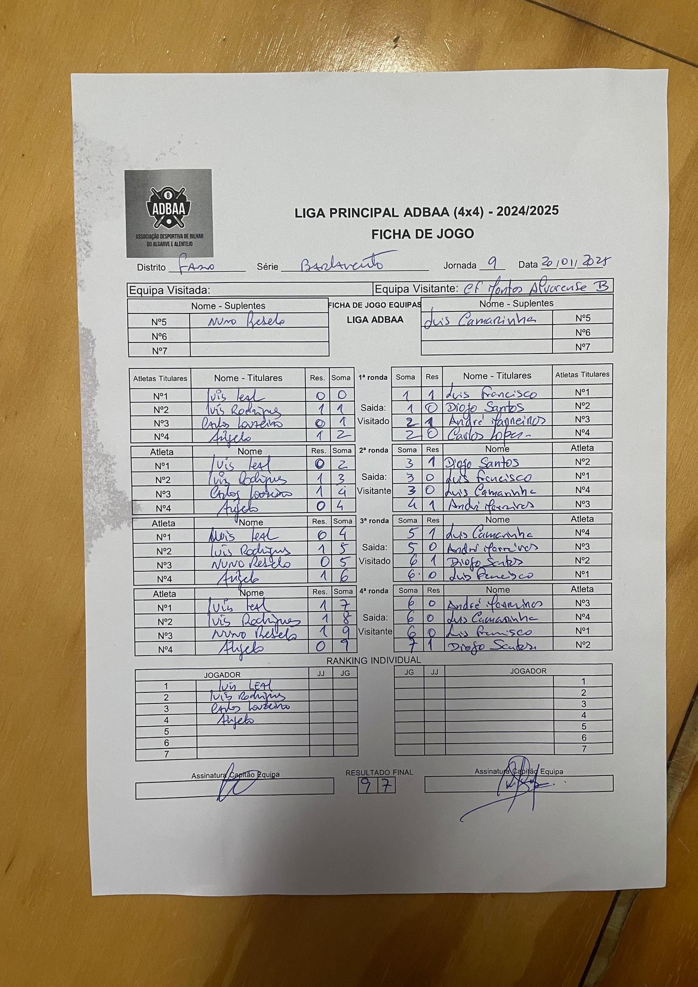 8 | 41 | C.F.MONTES ALVORENSE B | 12-4 | PINGUIM | 06/01/2025 | <Sem observações> |