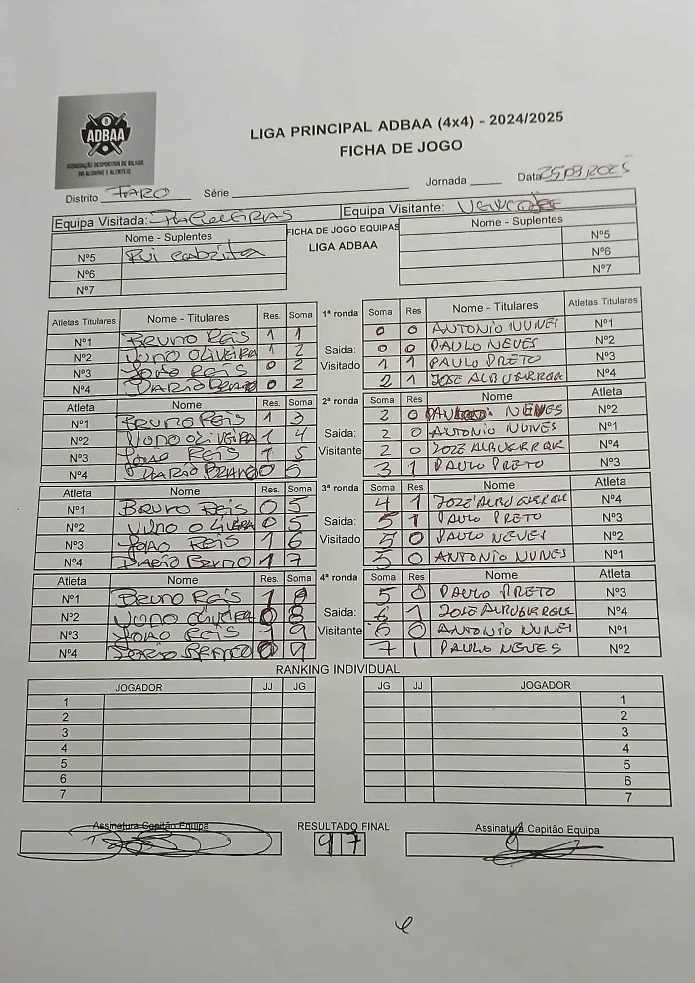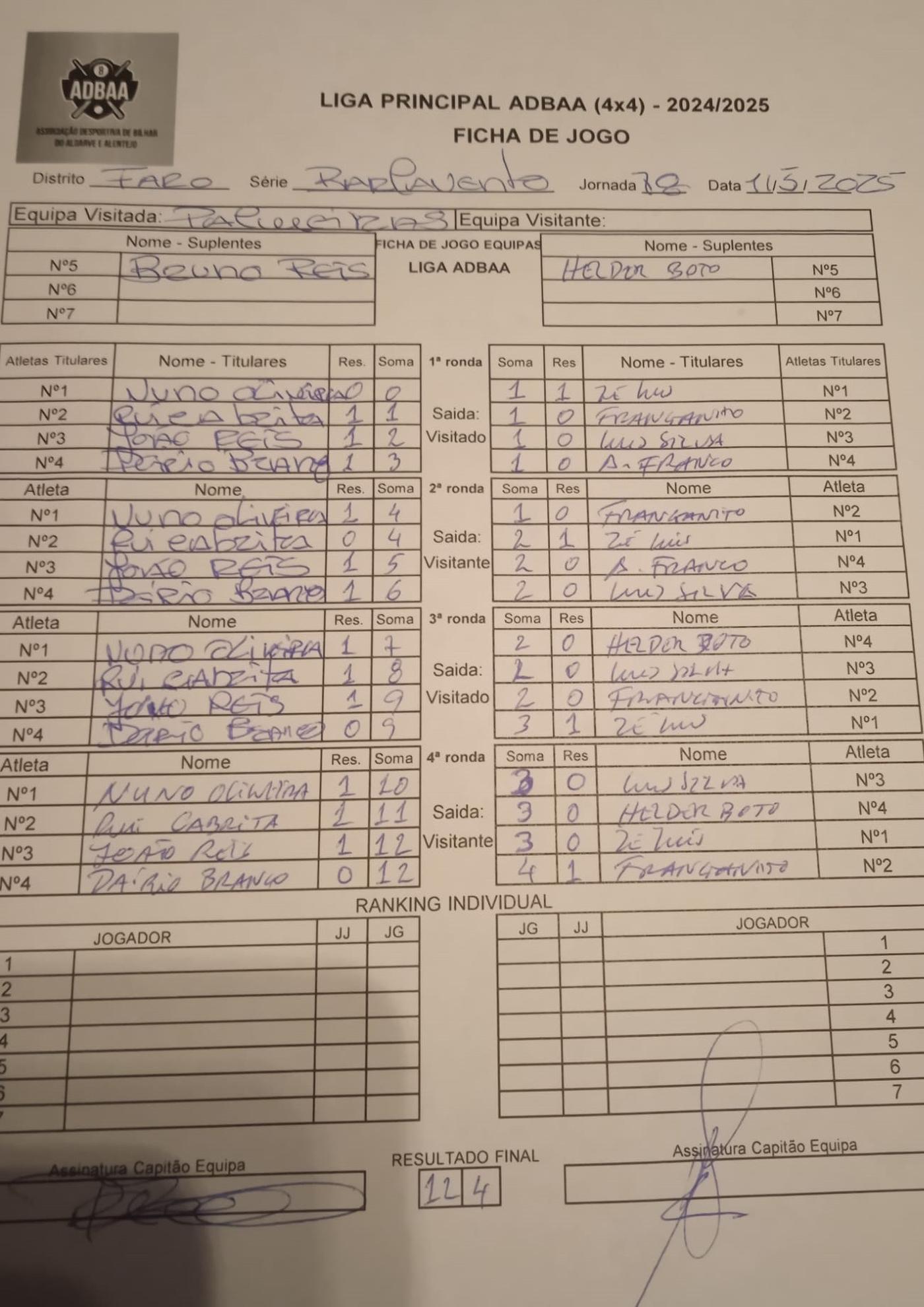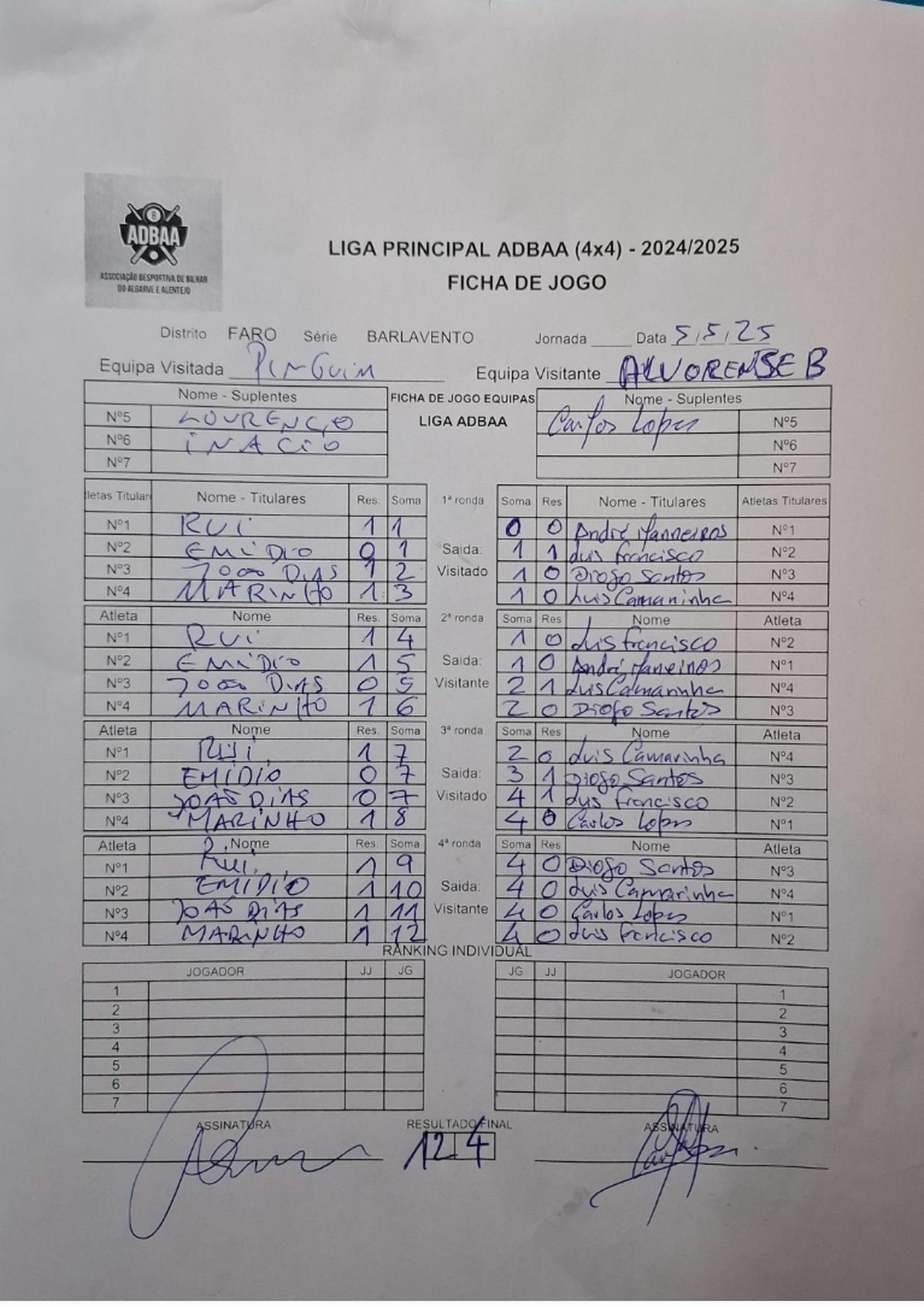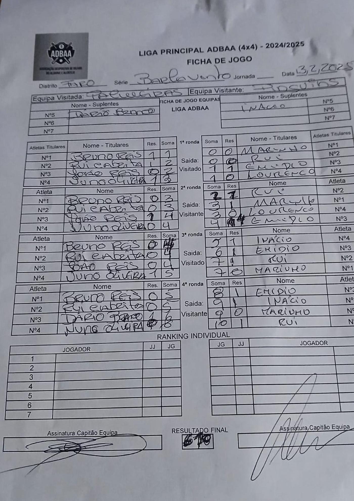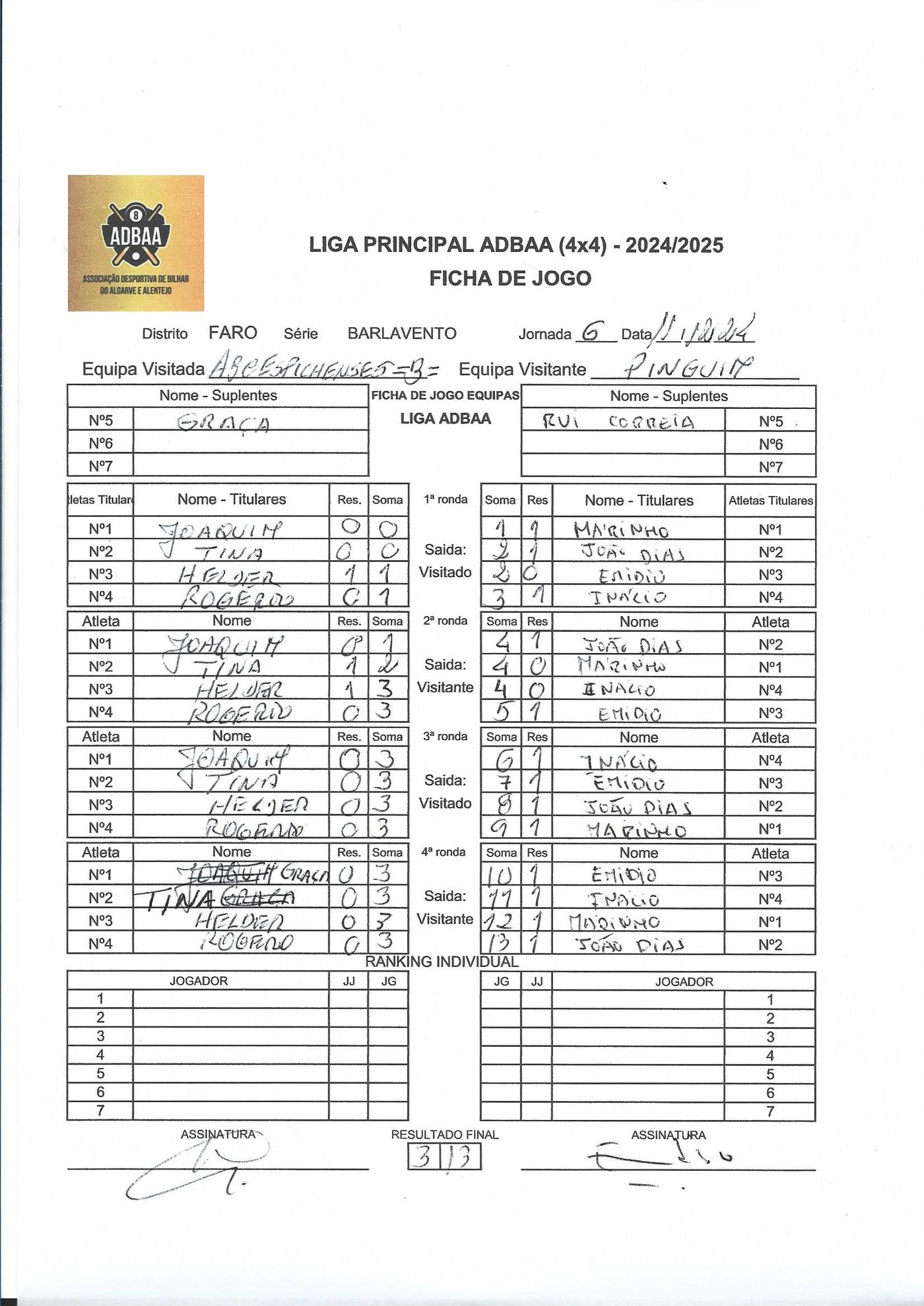 8 | 41 | C.F.MONTES ALVORENSE B | 12-4 | PINGUIM | 06/01/2025 | <Sem observações> |