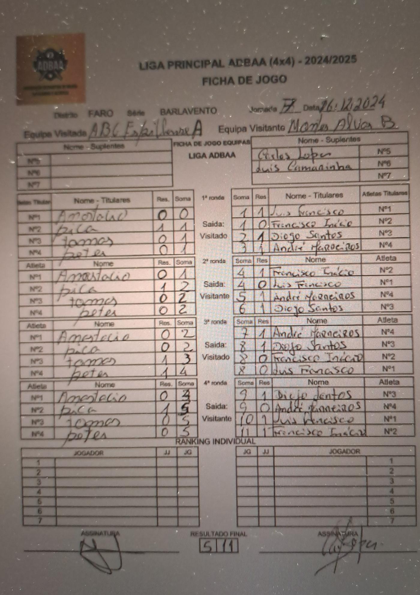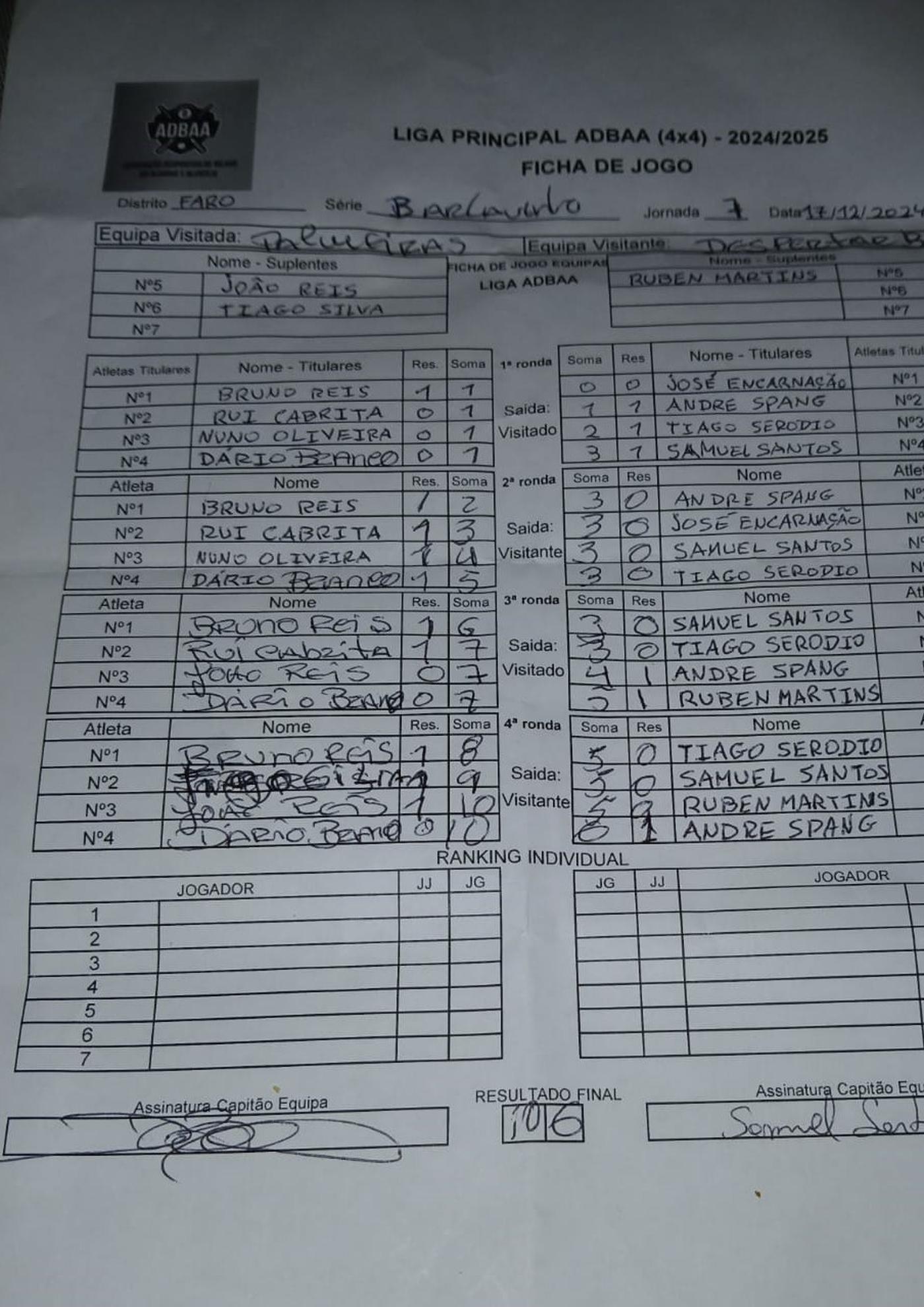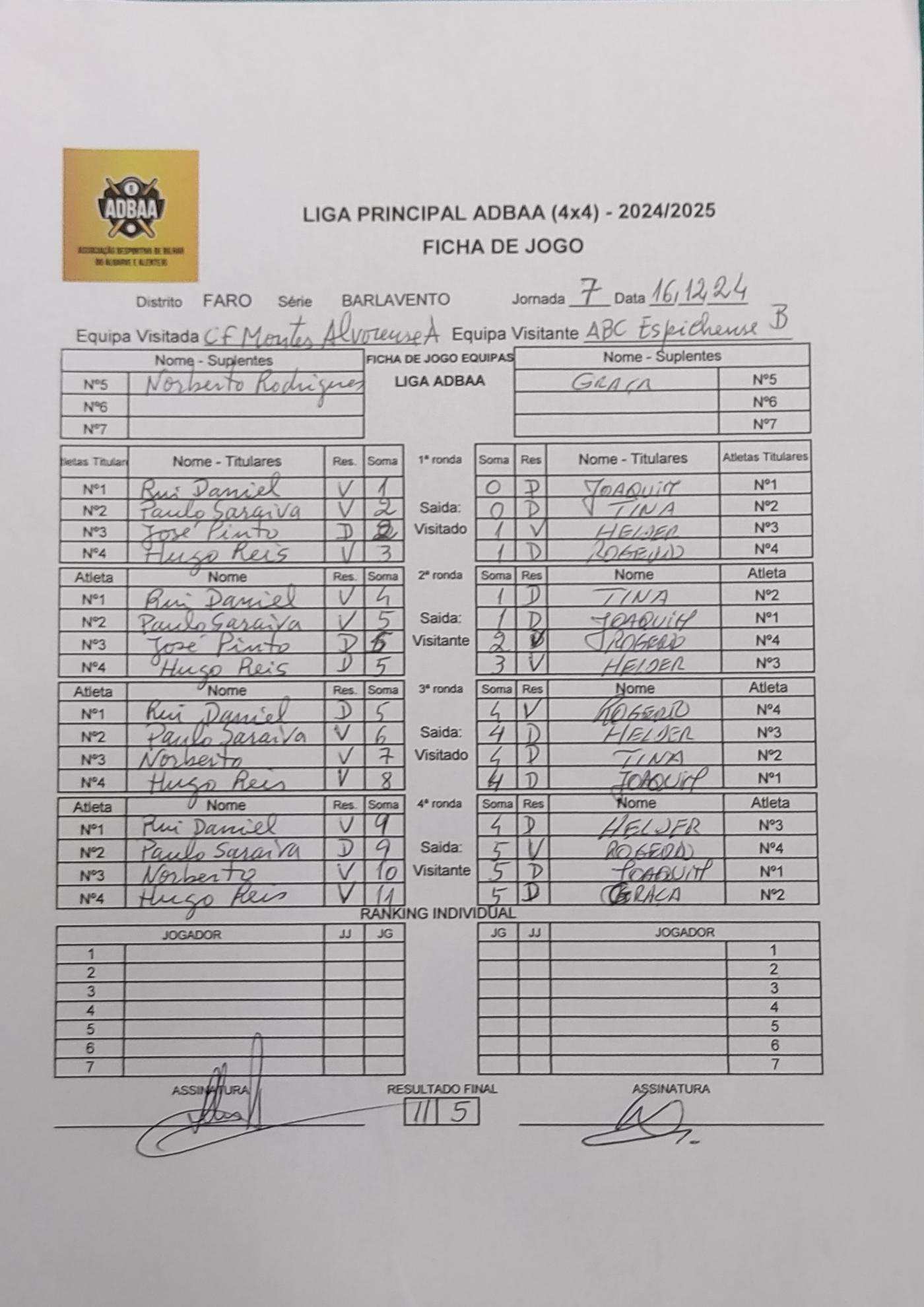 7 | 34 | C.F.MONTES ALVORENSE A | 11-5 | ABC ESPICHENSE B | 16/12/2024 | <Sem observações> |