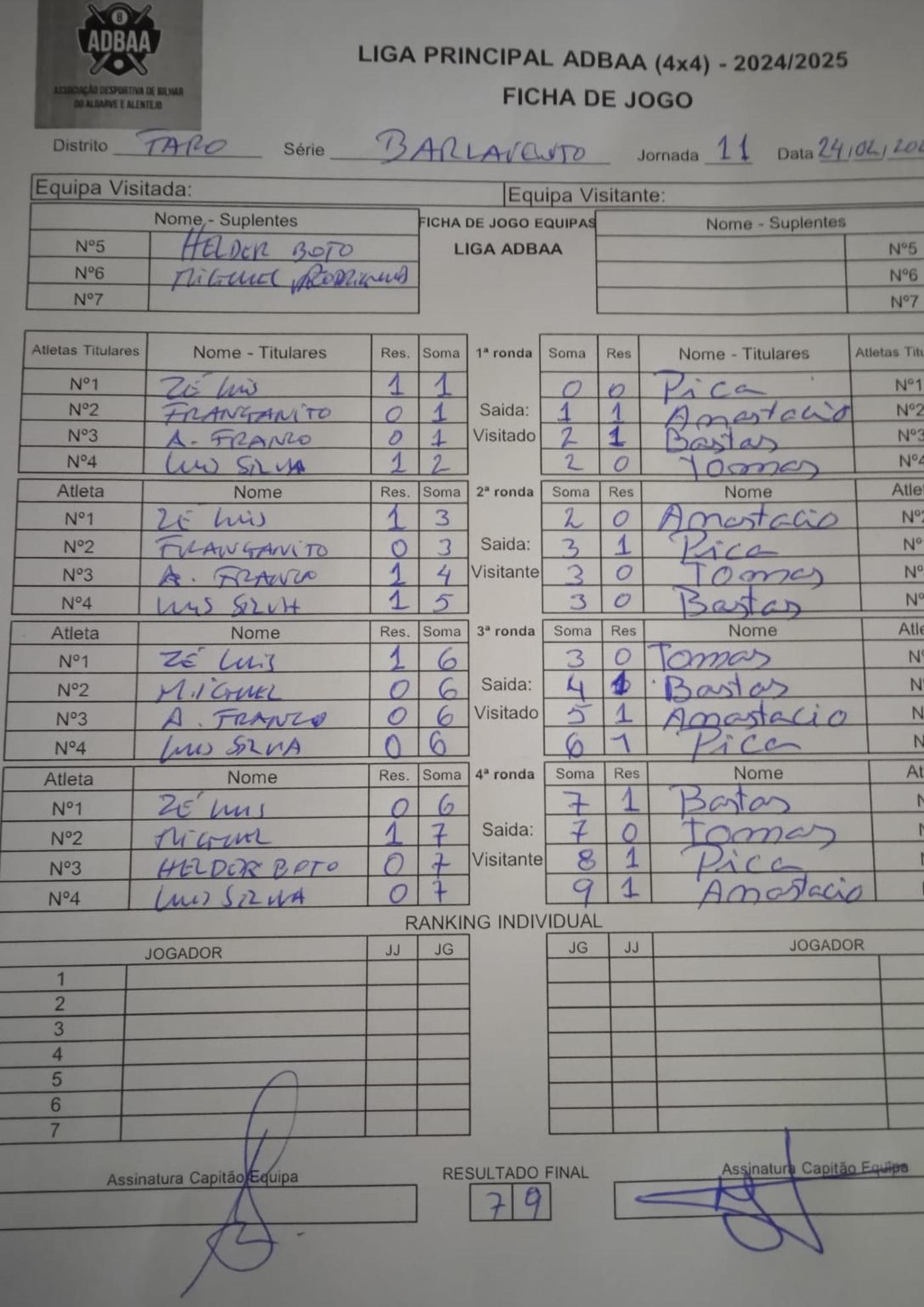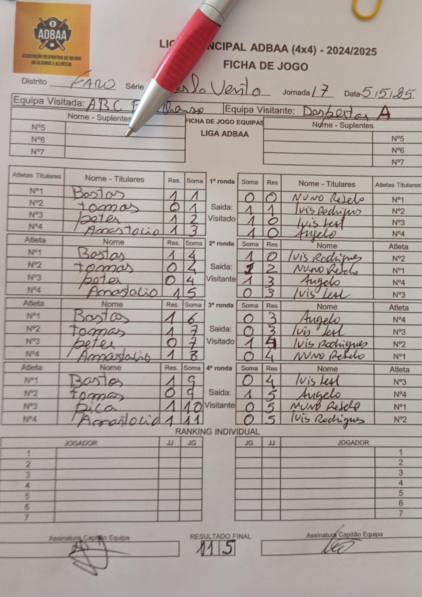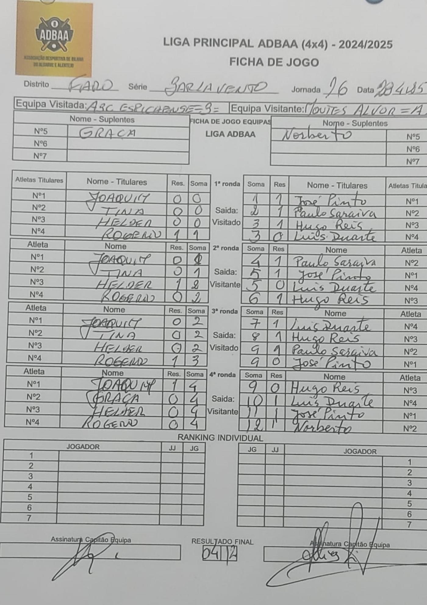 7 | 34 | C.F.MONTES ALVORENSE A | 11-5 | ABC ESPICHENSE B | 16/12/2024 | <Sem observações> |