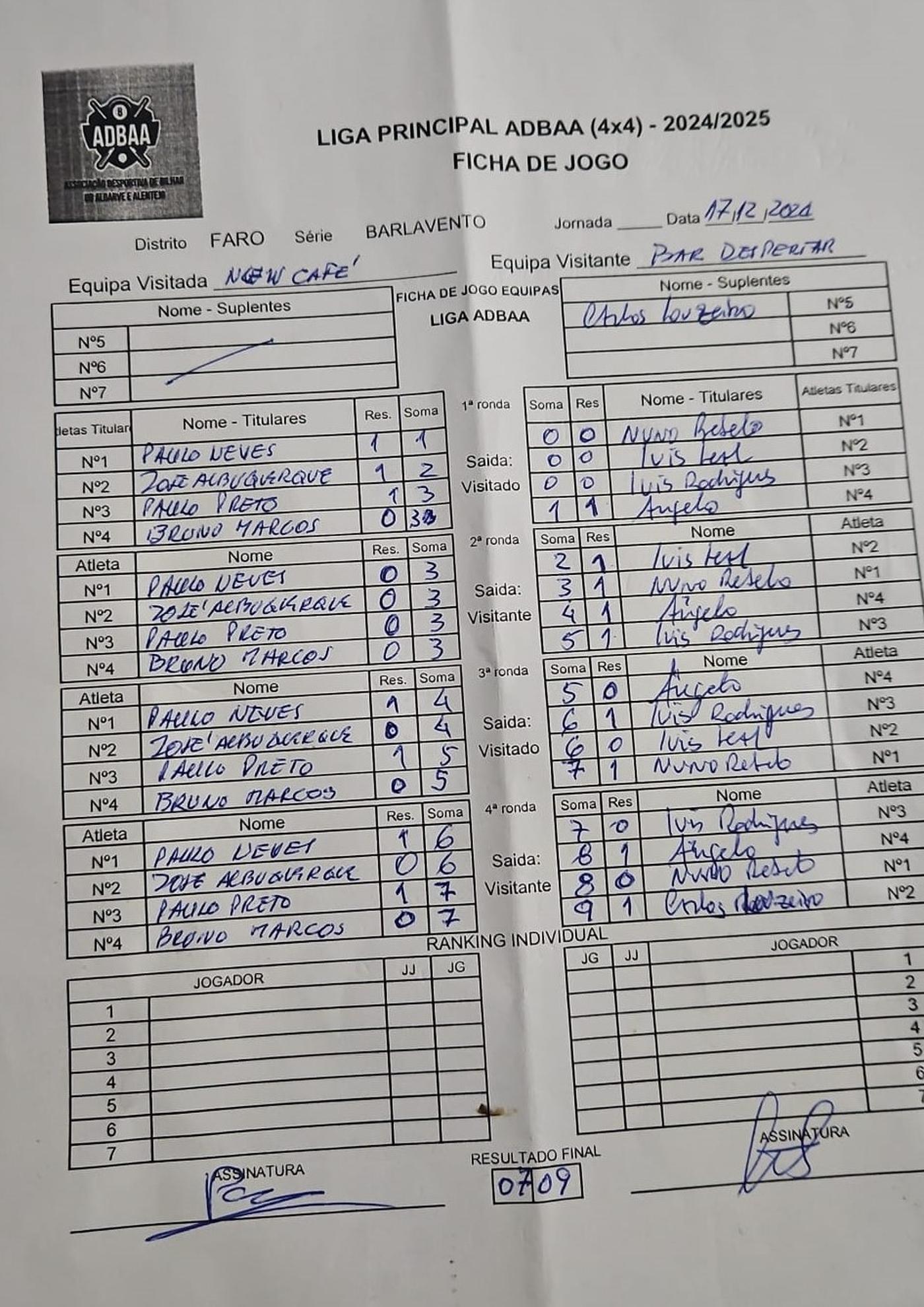 7 | 32 | NEW CAFE B | 7-9 | BAR DESPERTAR A | 17/12/2024 | <Sem observações> |