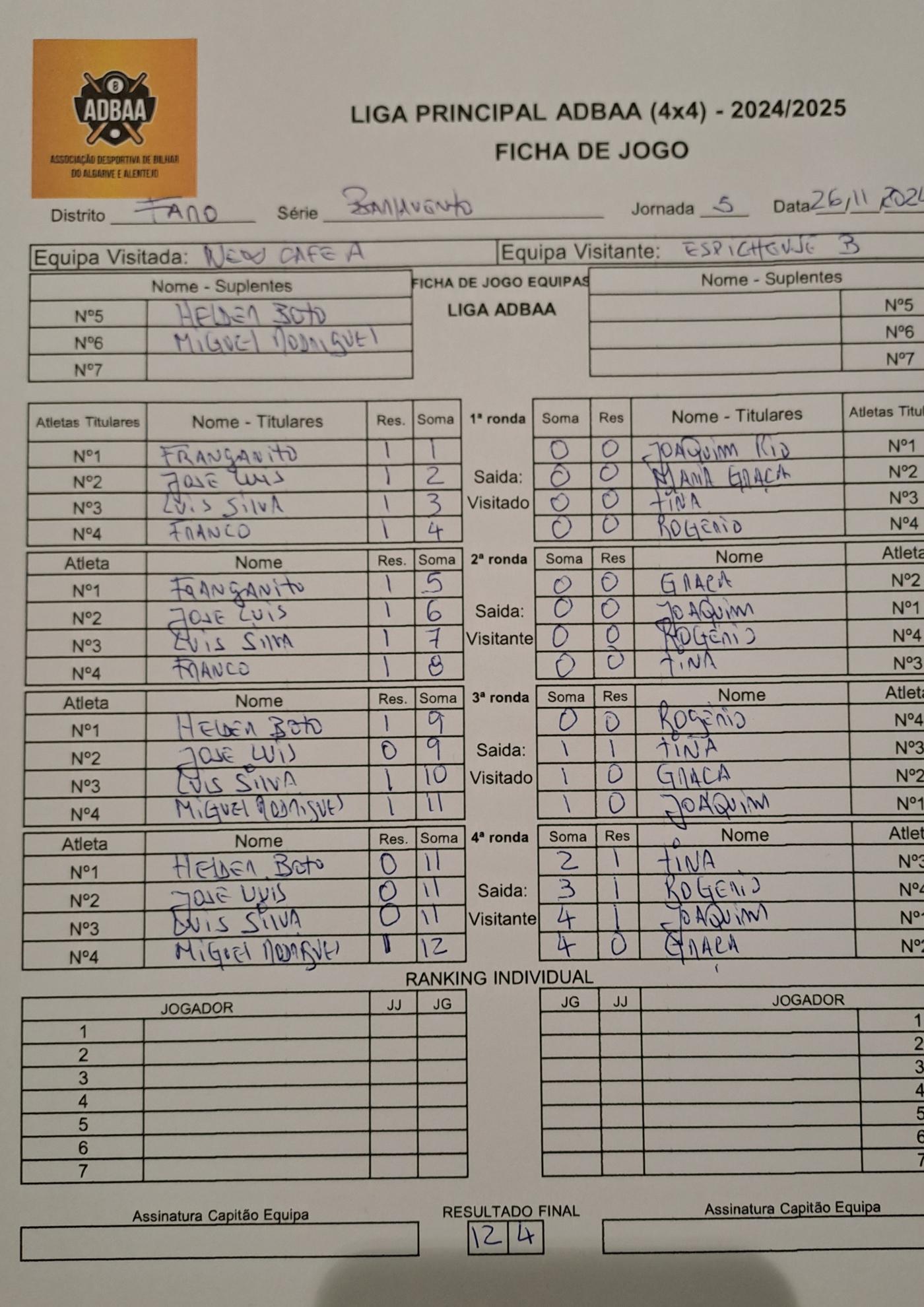 5 | 24 | NEW CAFE A | 12-4 | ABC ESPICHENSE B | 26/11/2024 | <Sem observações> |