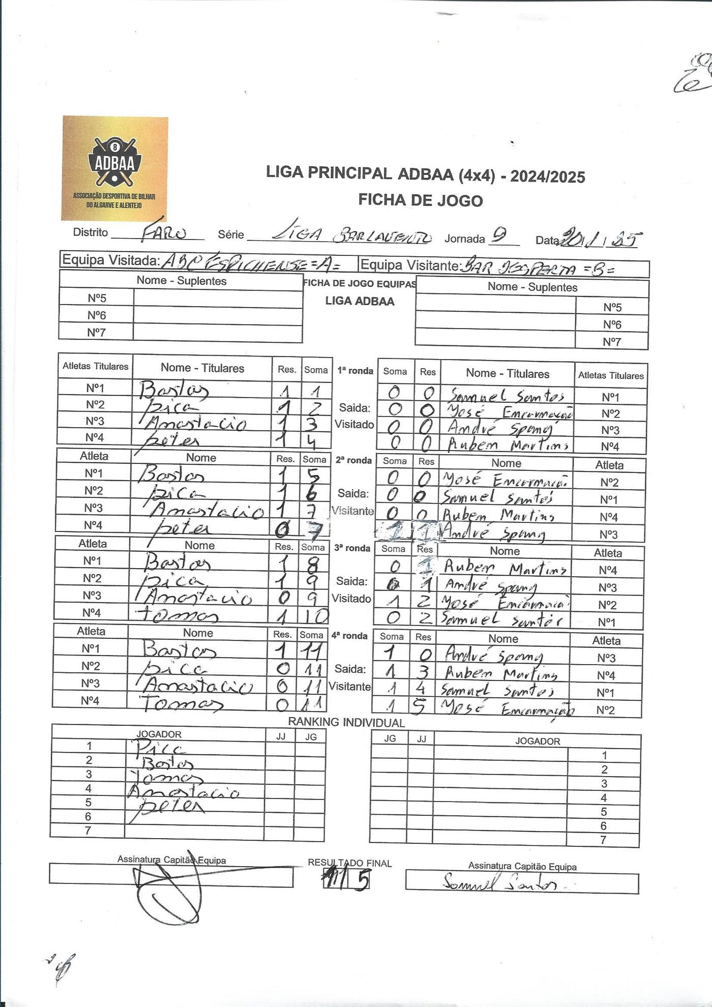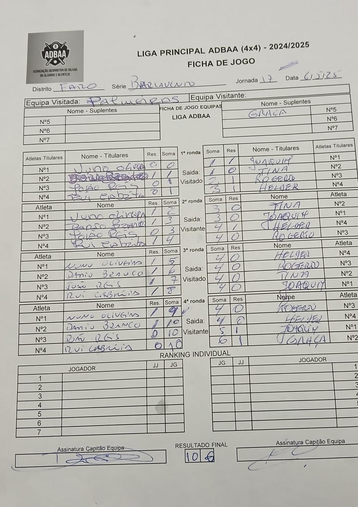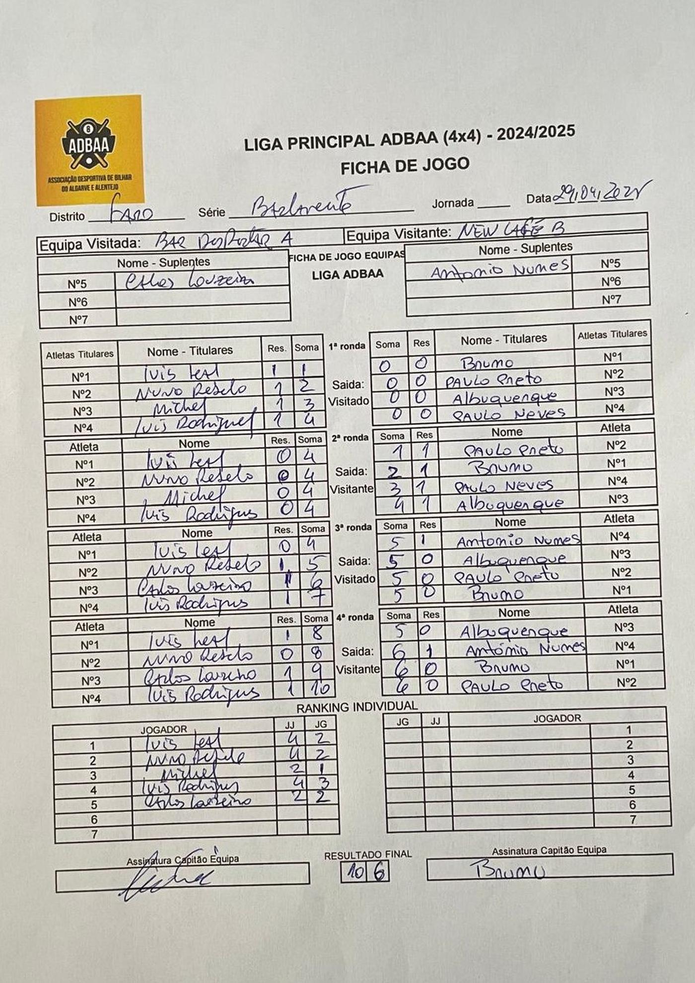 17 | 84 | PALMEIRAS POOL TEAM | 10-6 | ABC ESPICHENSE B | 06/05/2025 | <Sem observações> |
