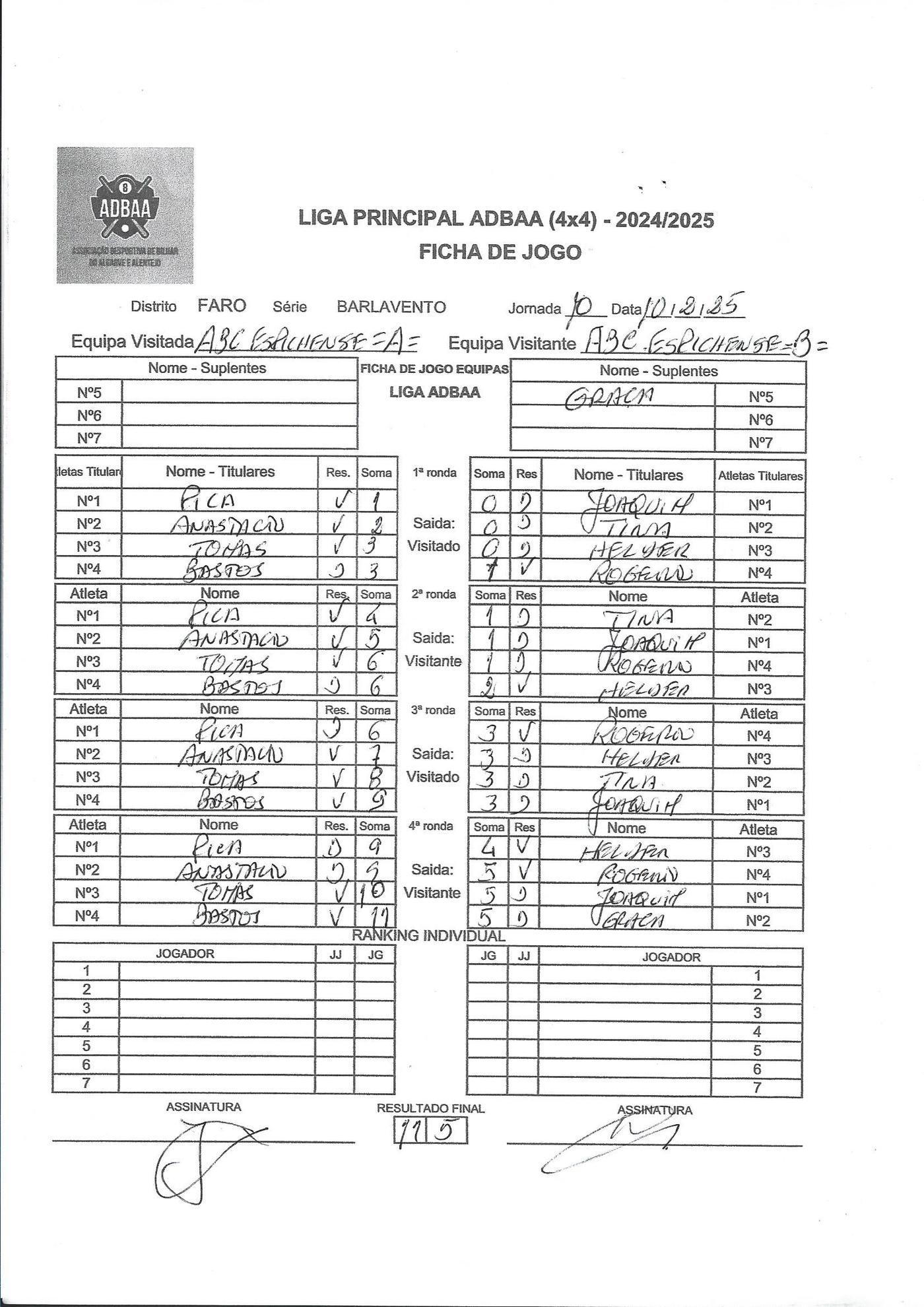 10 | 48 | ABC ESPICHENSE A | 11-5 | ABC ESPICHENSE B | 10/02/2025 | <Sem observações> |