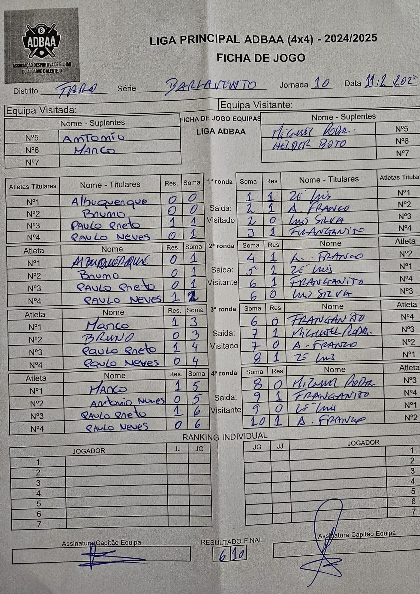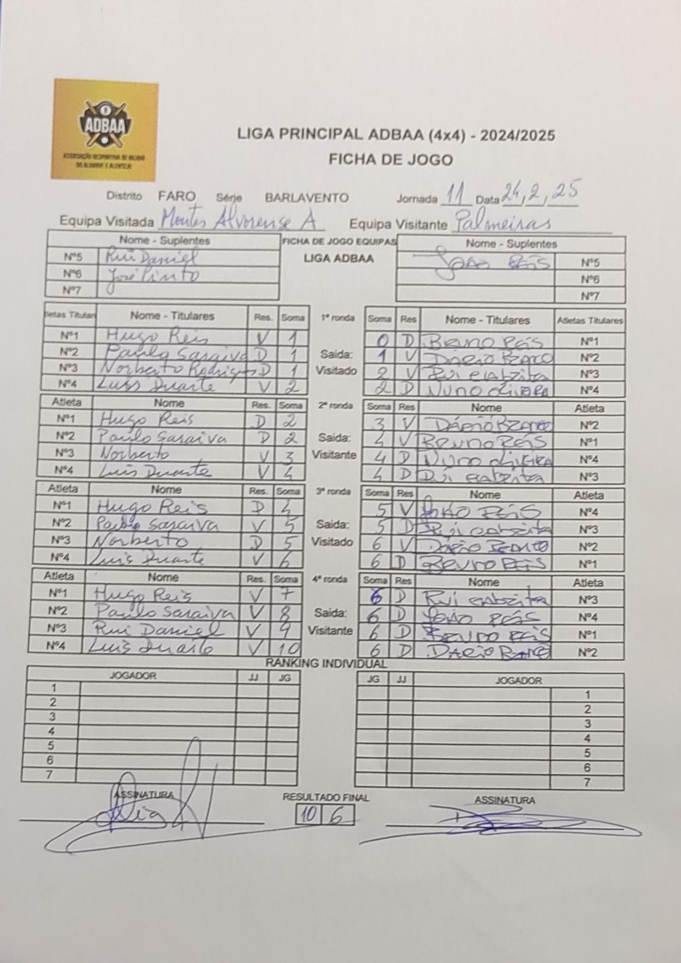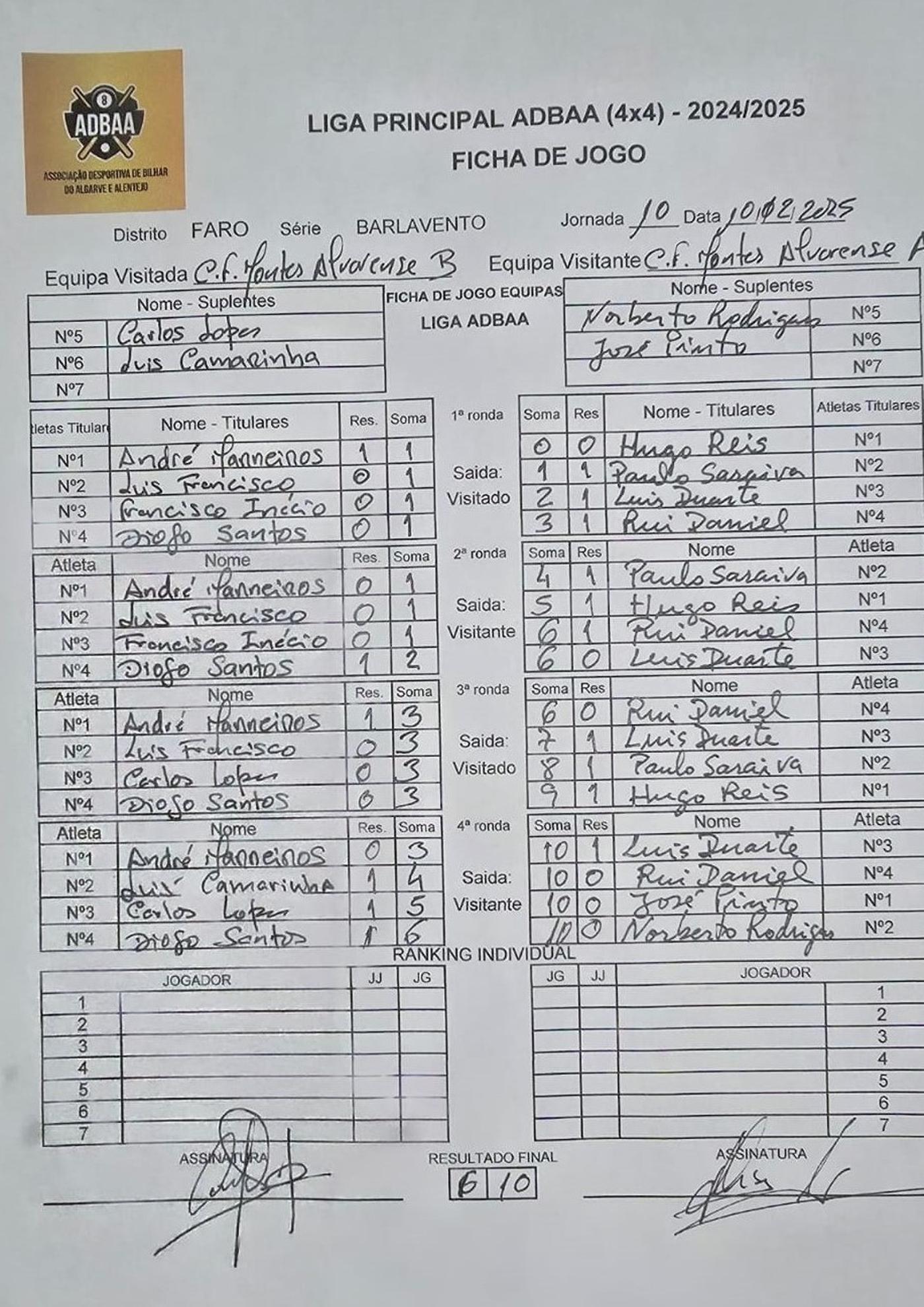 10 | 51 | C.F.MONTES ALVORENSE B | 6-10 | C.F.MONTES ALVORENSE A | 10/02/2025 | <Sem observações> |