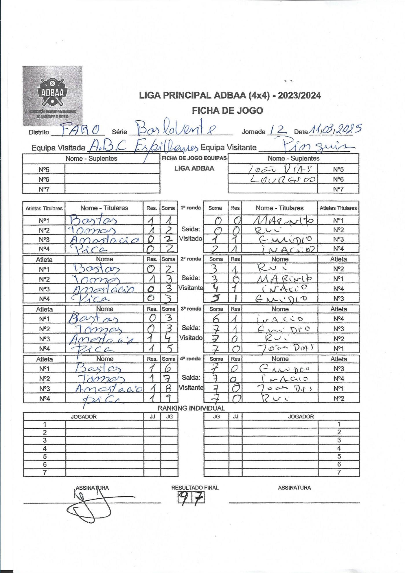 12 | 58 | BAR DESPERTAR B | 9-7 | ABC ESPICHENSE B | 10/03/2025 | <Sem observações> |