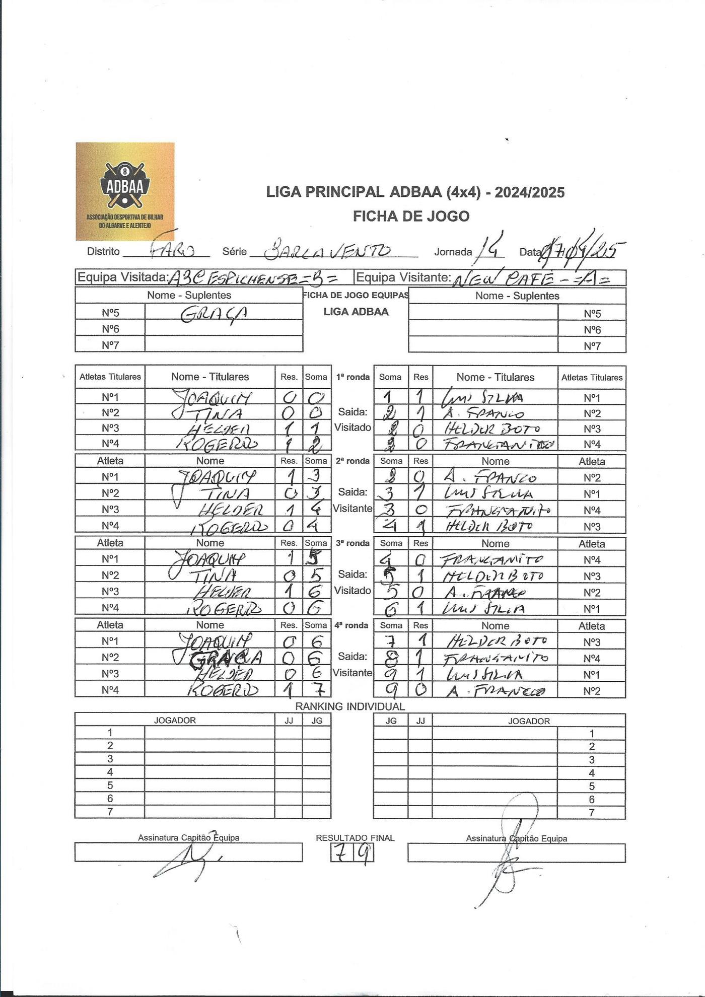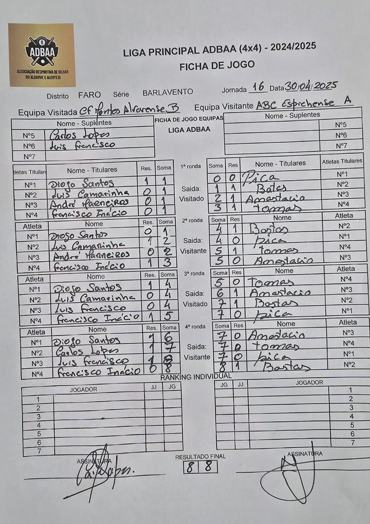 16 | 79 | ABC ESPICHENSE B | 4-12 | C.F.MONTES ALVORENSE A | 28/04/2025 | <Sem observações> |