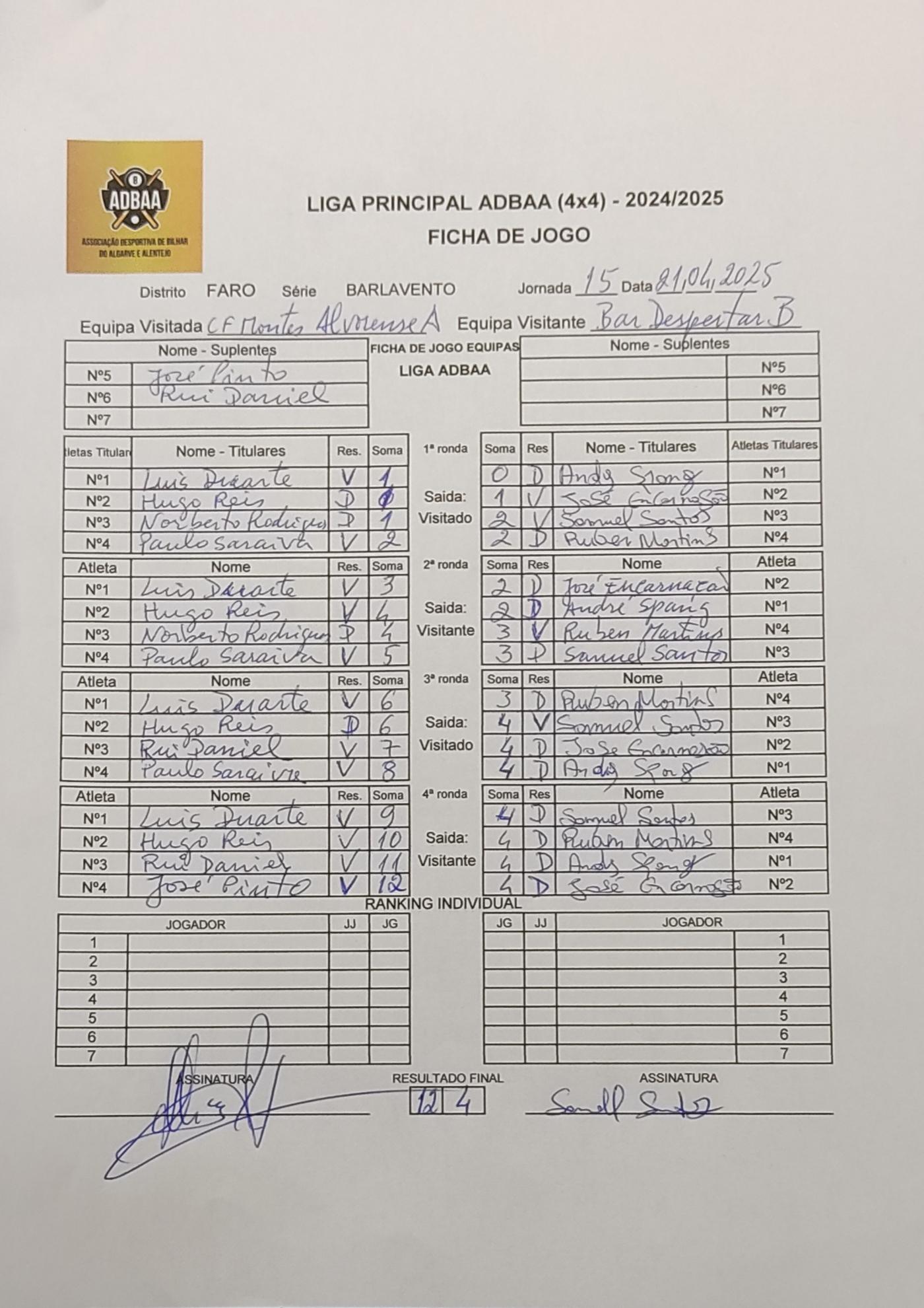 15 | 73 | C.F.MONTES ALVORENSE A | 12-4 | BAR DESPERTAR B | 21/04/2025 | <Sem observações> |