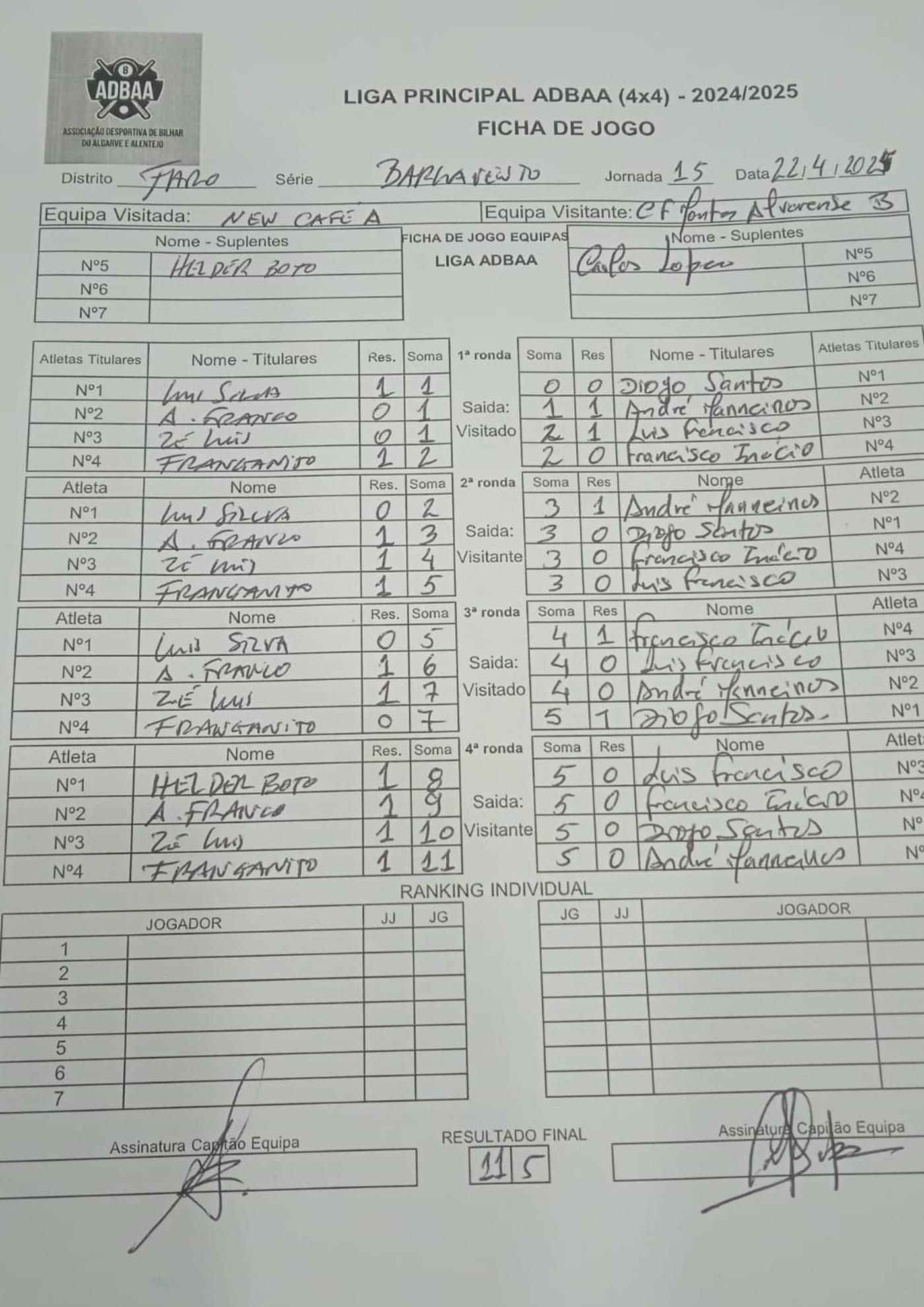 15 | 76 | NEW CAFE A | 11-5 | C.F.MONTES ALVORENSE B | 22/04/2025 | <Sem observações> |