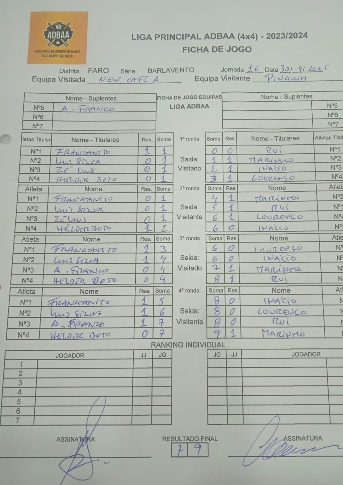 4 | 16 | BAR DESPERTAR A | 9-7 | PINGUIM | 11/11/2024 | <Sem observações> |