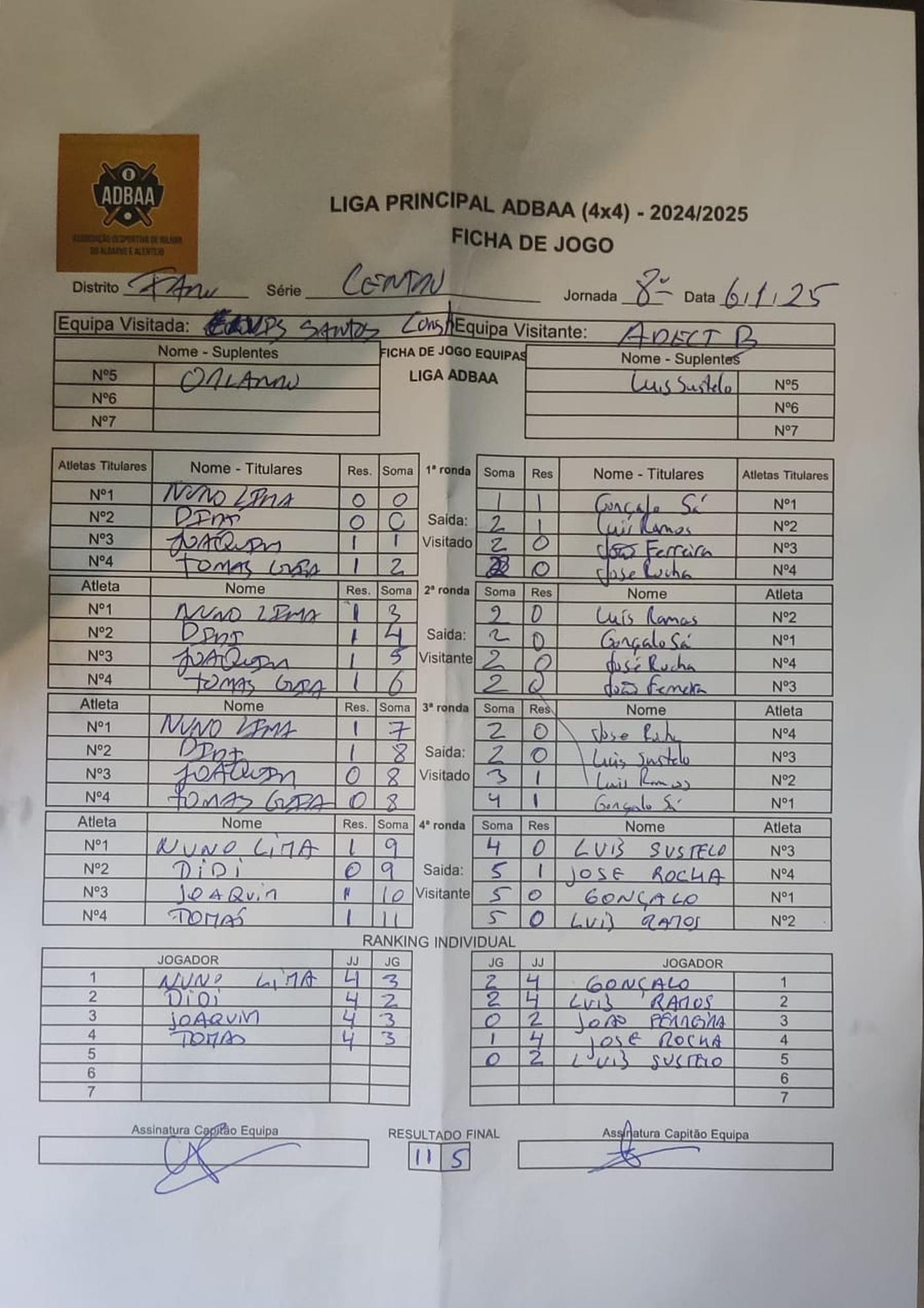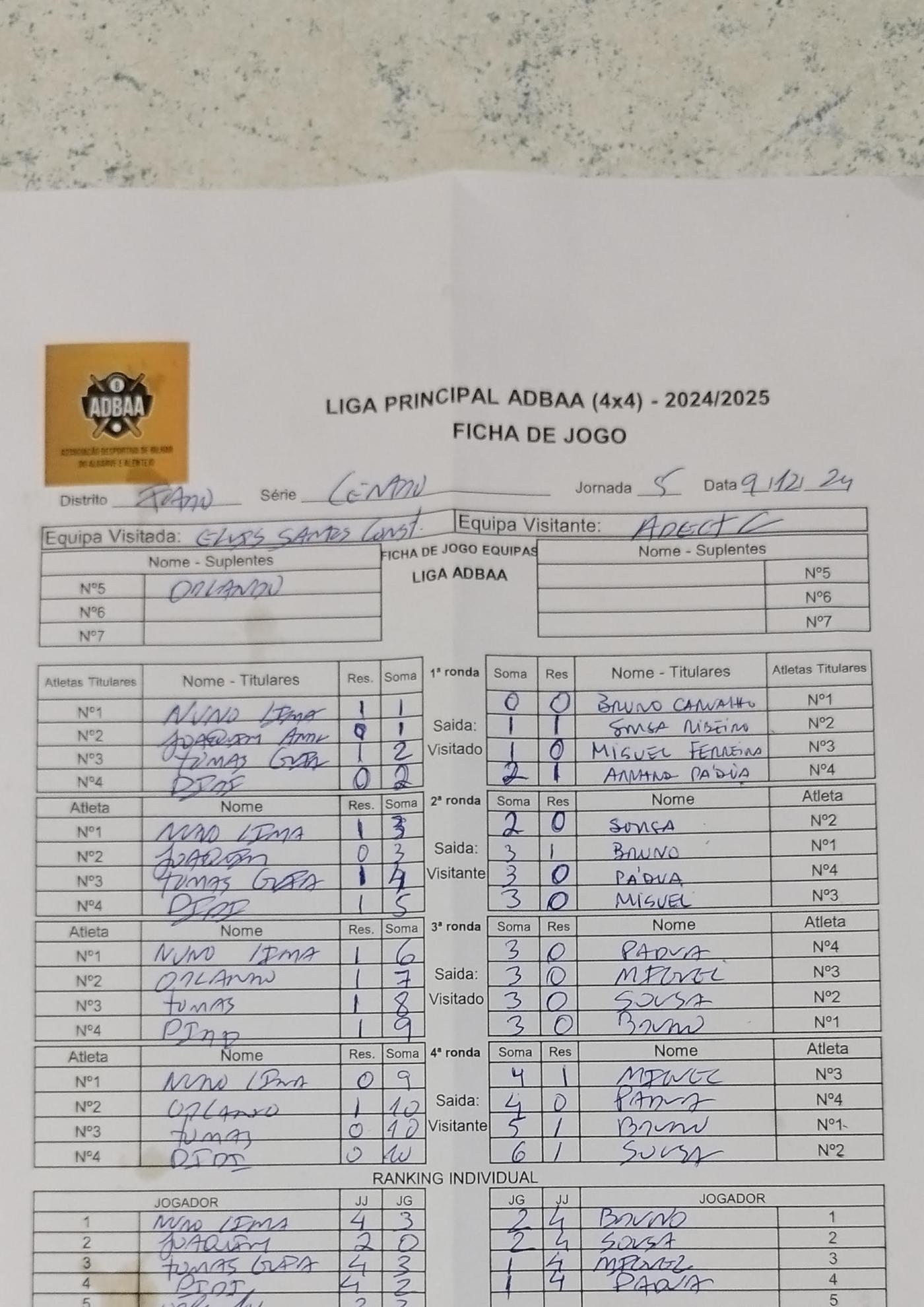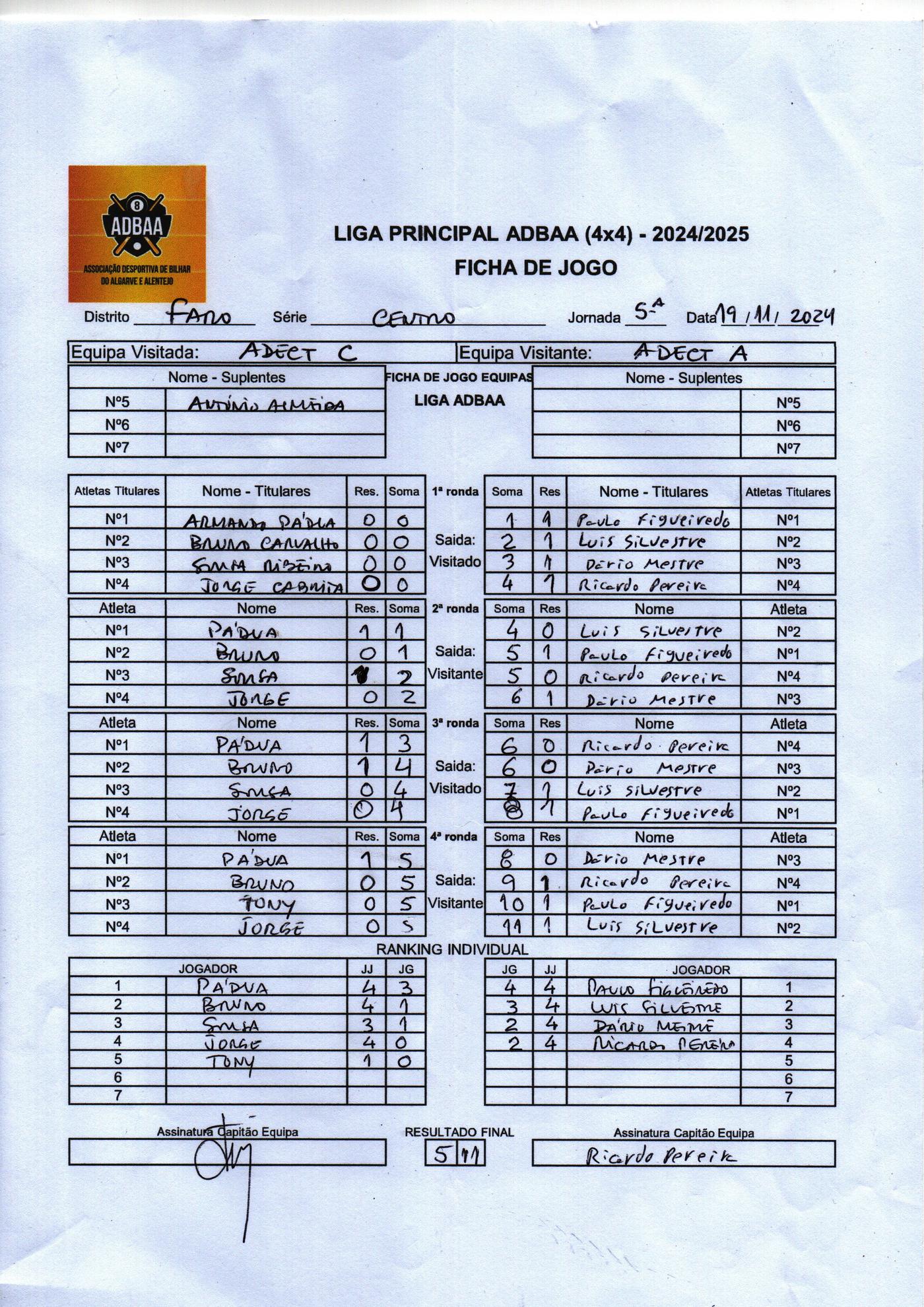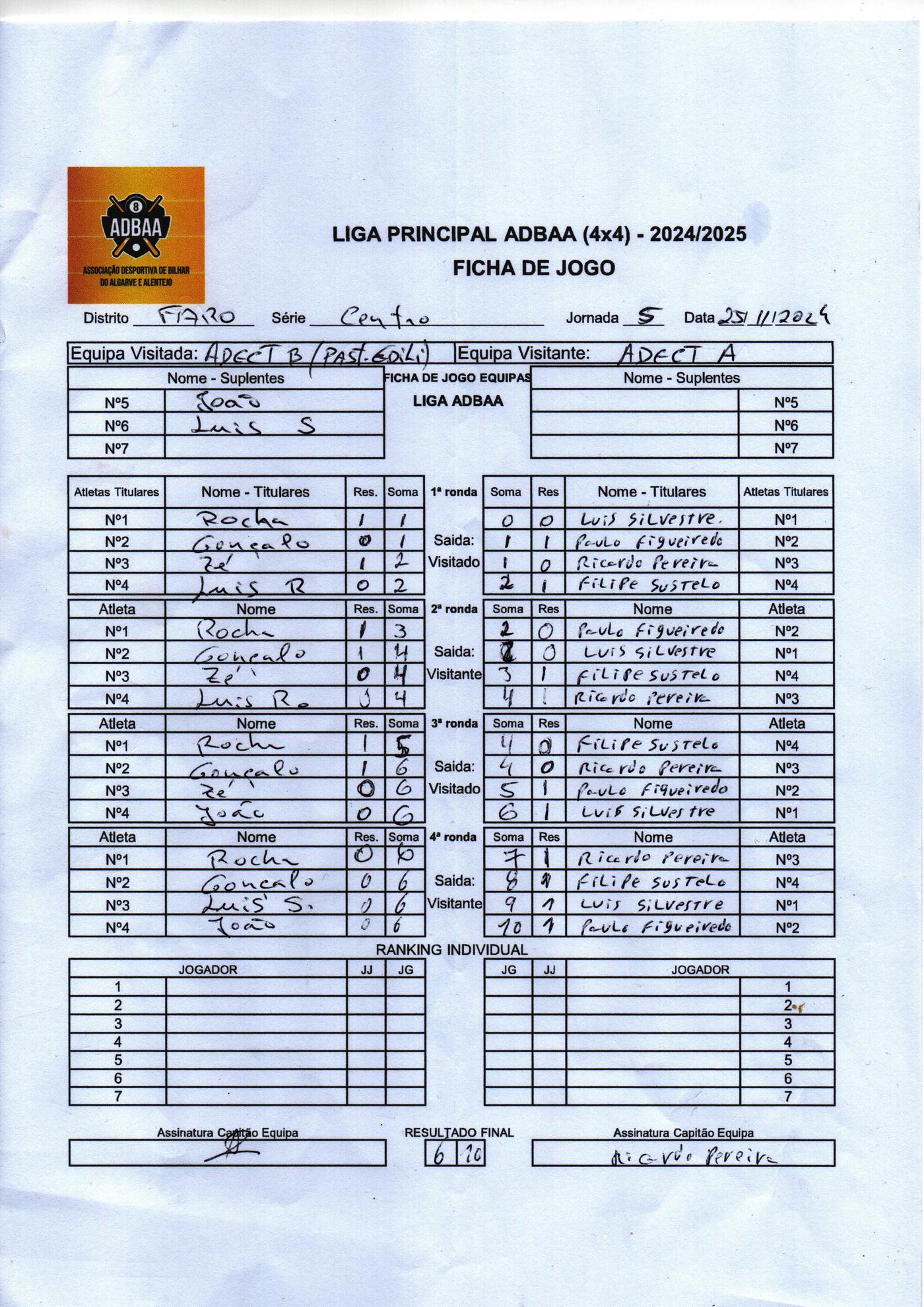 5 | 25 | ADECT B/ PASTELARIA EDILI | 6-10 | ADECT A | 25/11/2024 | <Sem observações>