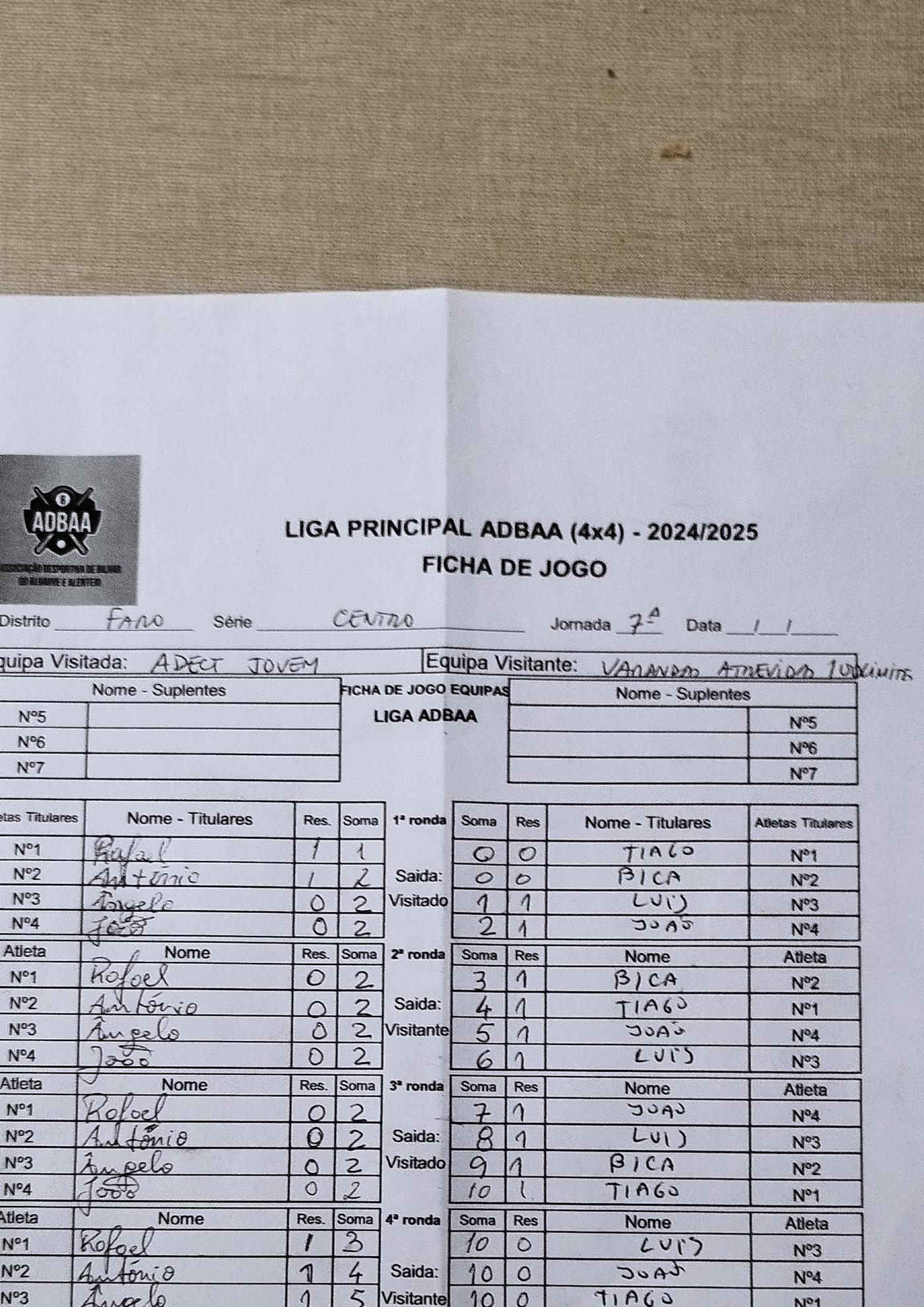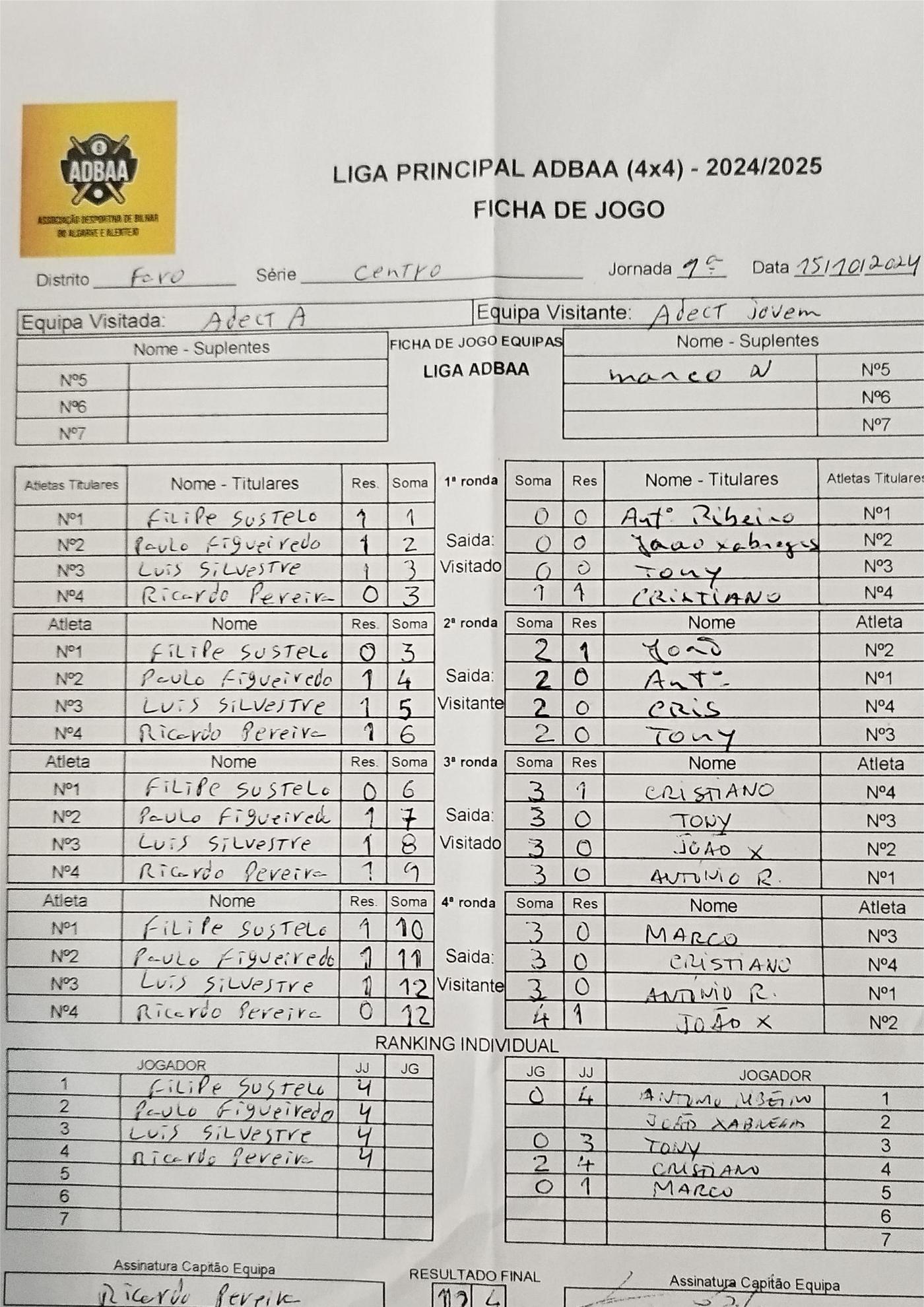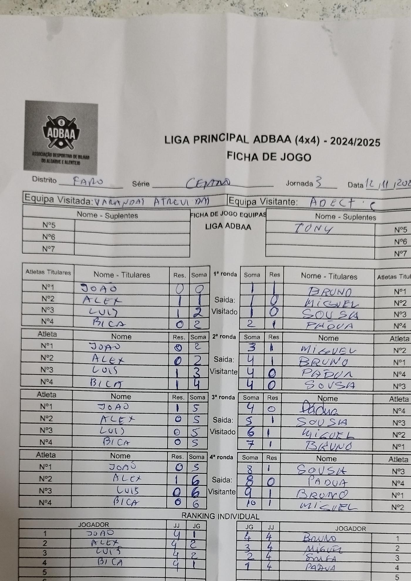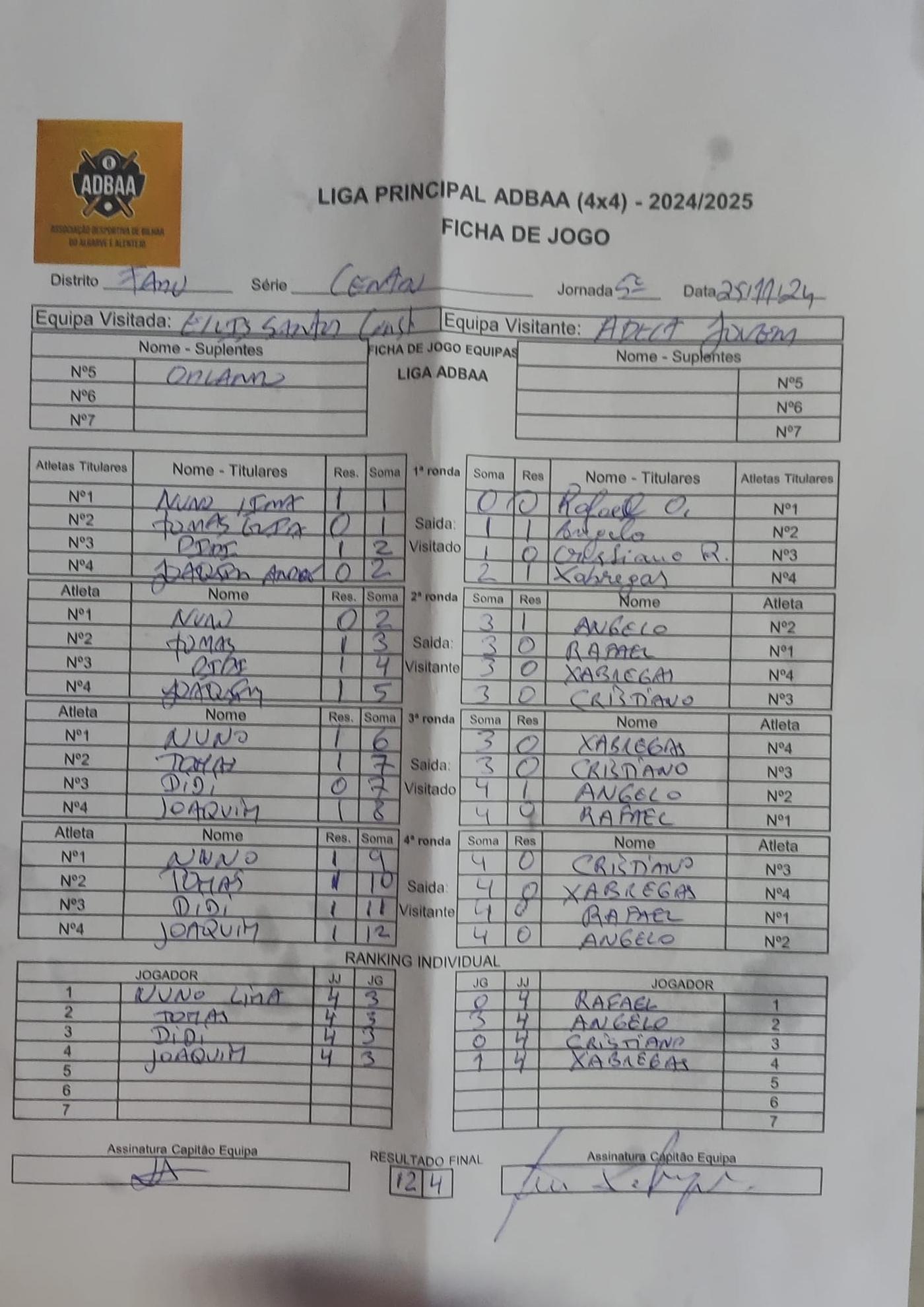 5 | 25 | ADECT B/ PASTELARIA EDILI | 6-10 | ADECT A | 25/11/2024 | <Sem observações>