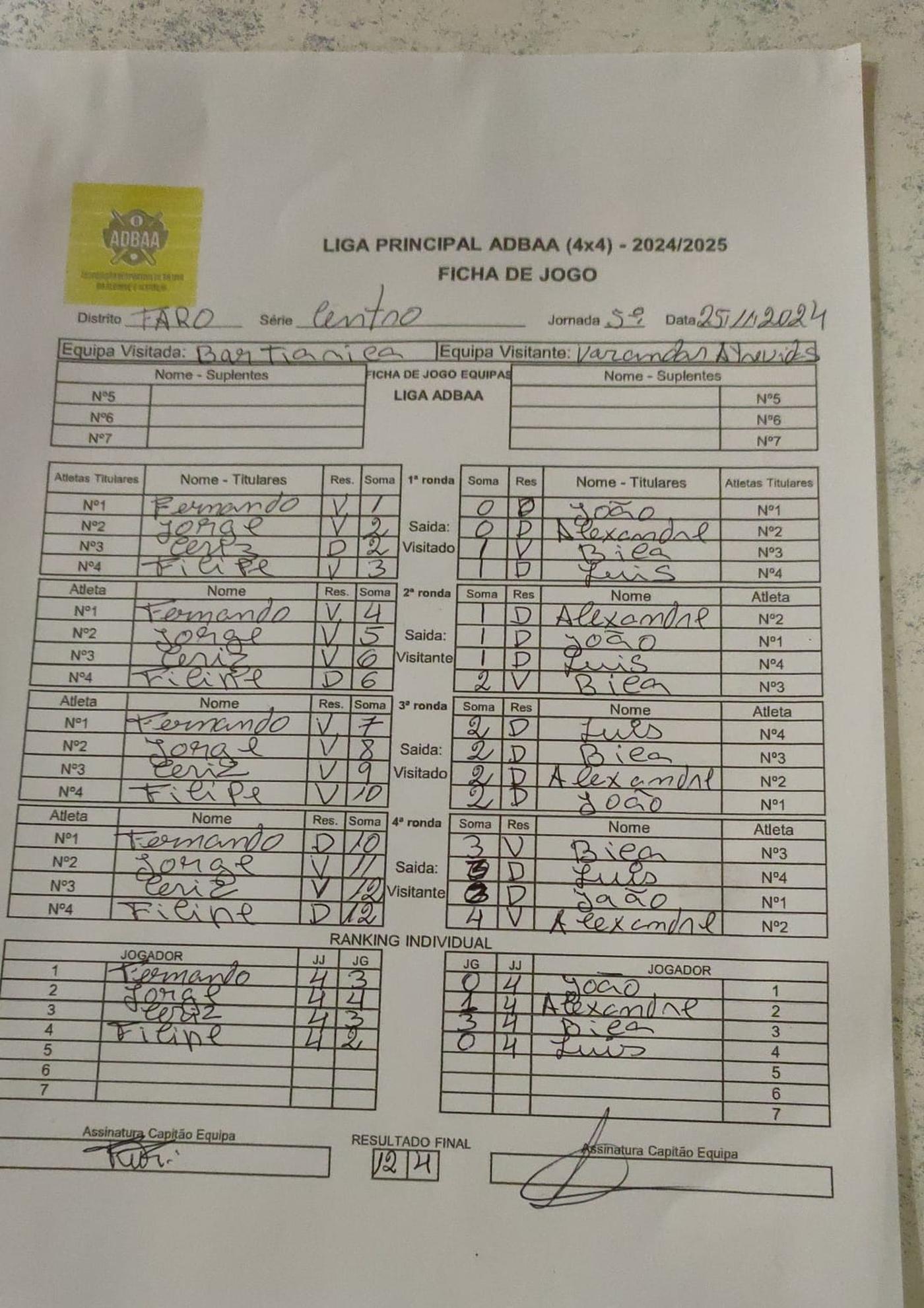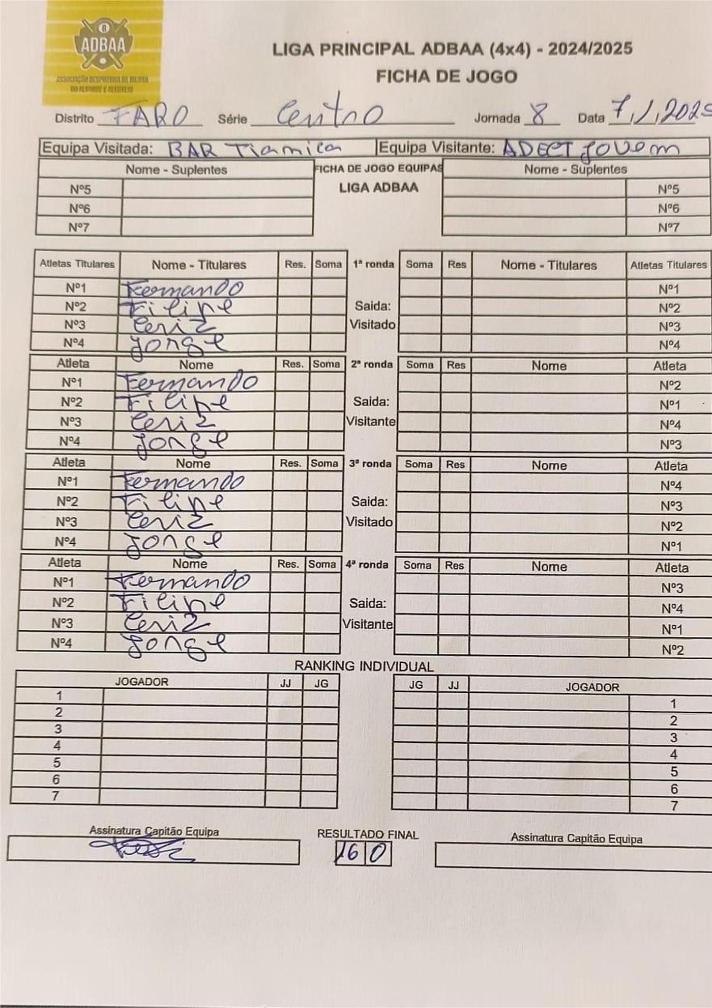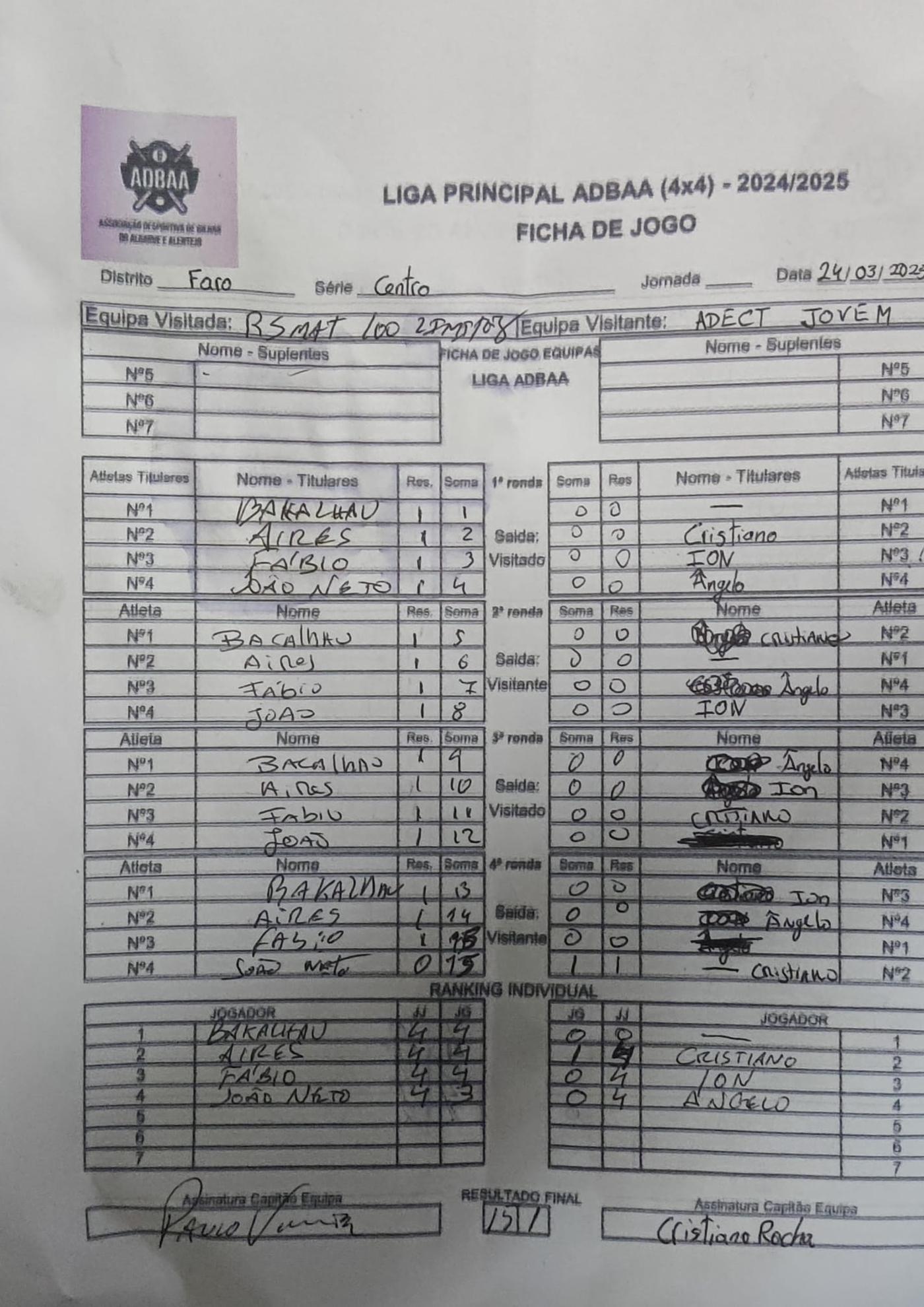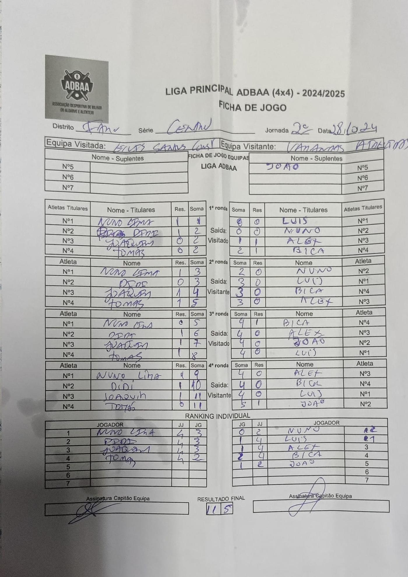 5 | 25 | ADECT B/ PASTELARIA EDILI | 6-10 | ADECT A | 25/11/2024 | <Sem observações>
